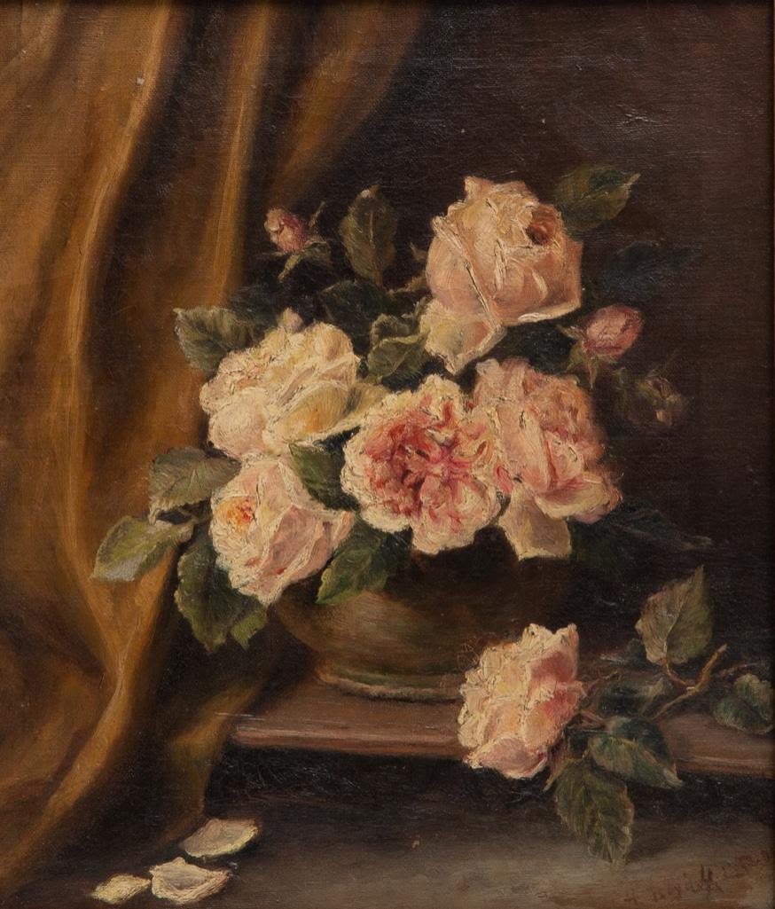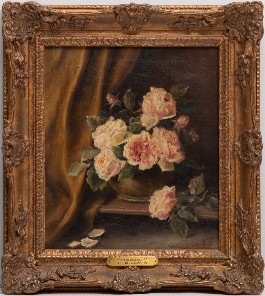 H.B. Llyod Oil on Canvas Painting of Roses. Circa 1900 Signed Lower Right. Painting Measures 11.5" x 13.5". Frame measures 17" x 19".