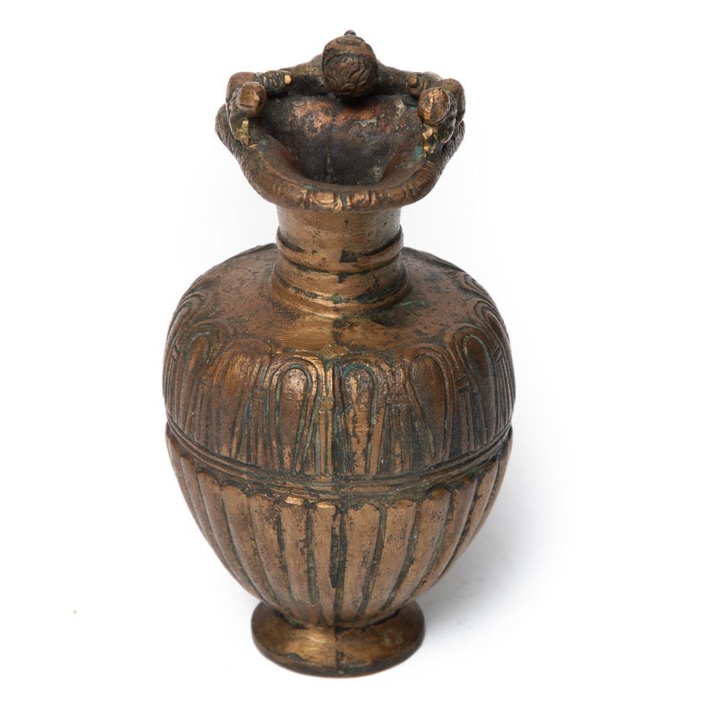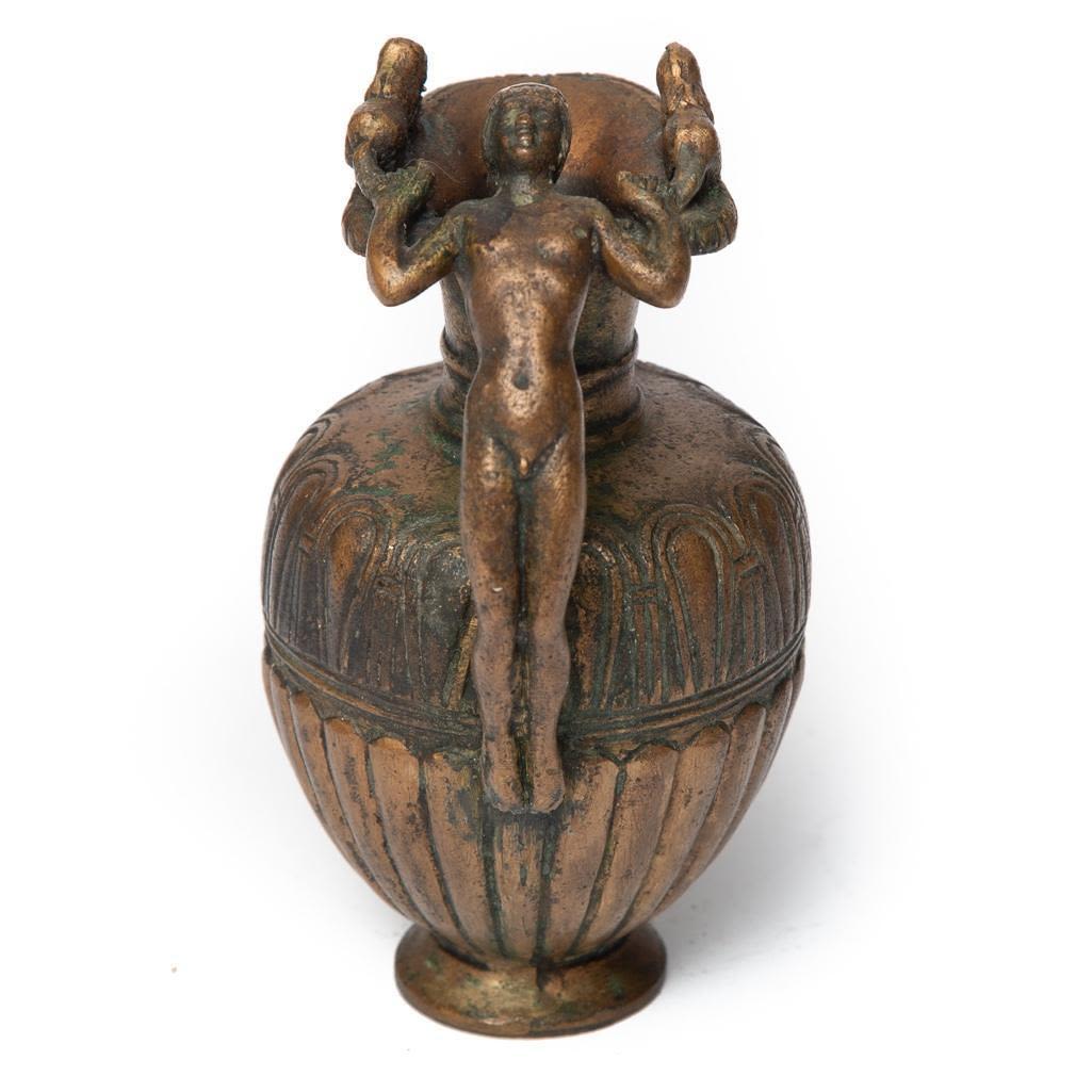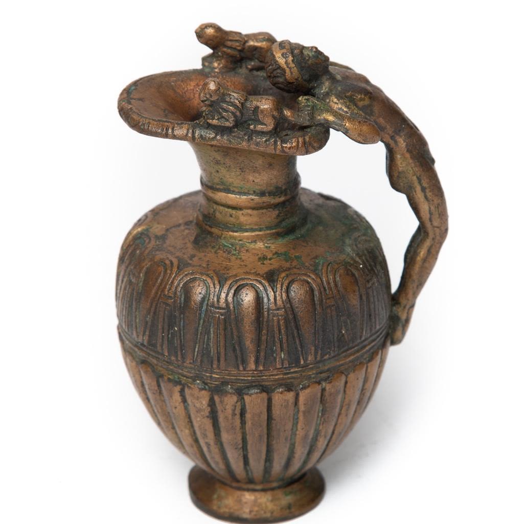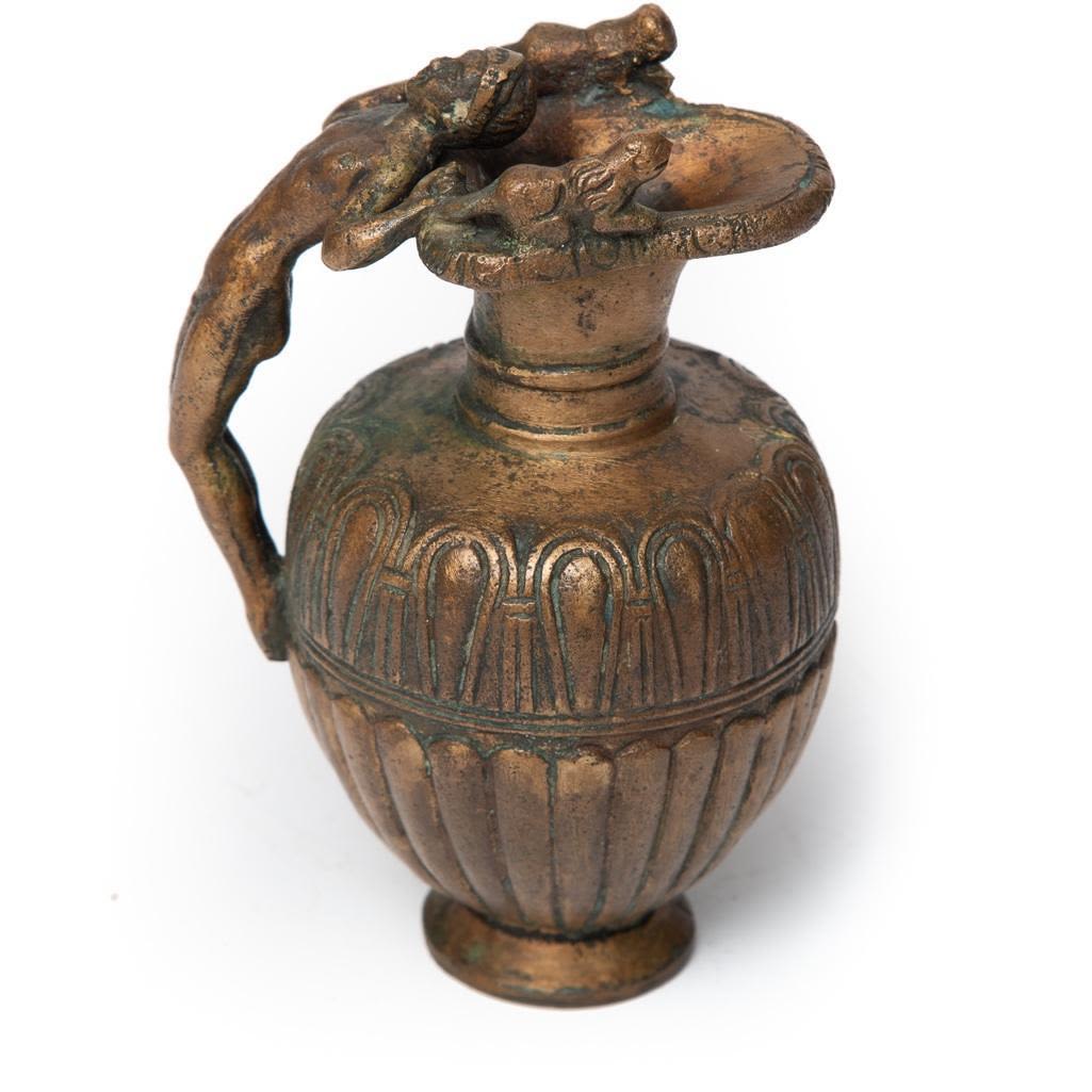 Archaic form Bronze Pitcher with Nude Male Handle 3.0" W x 4.5" H x 2.5" D