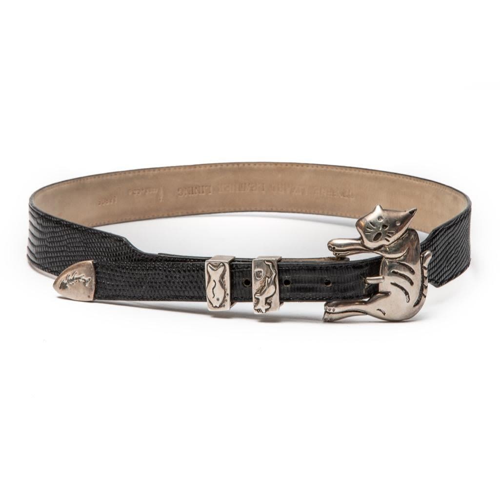 Manni & Co Signed Sterling Silver and Lizard Skin Belt. Marked as a large but will fit a Size Small 26 to 30" waist approx