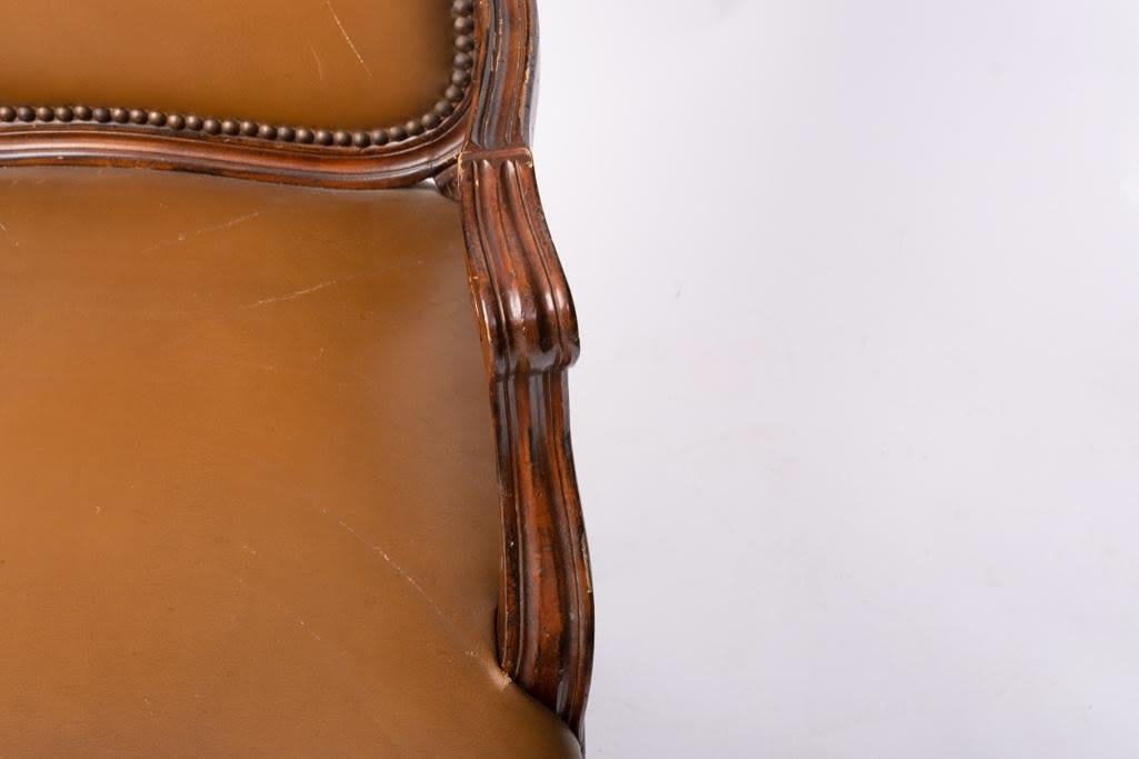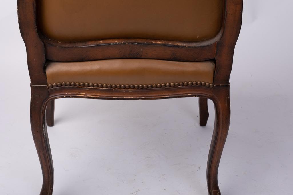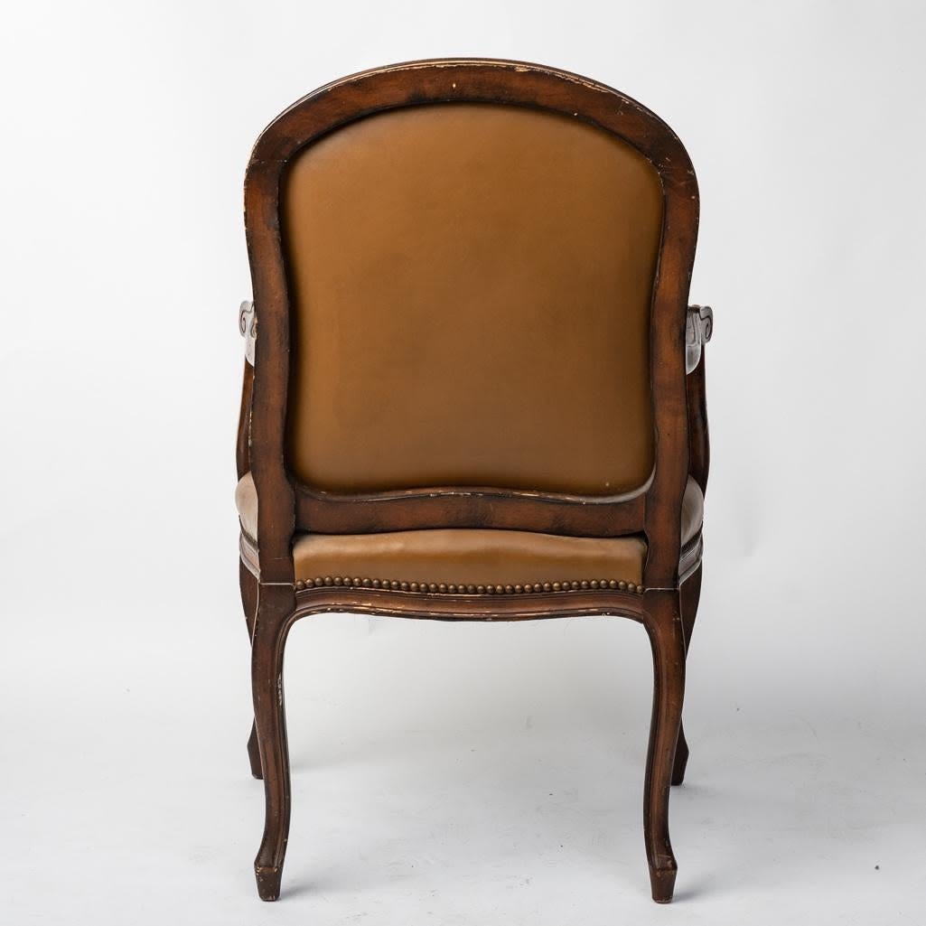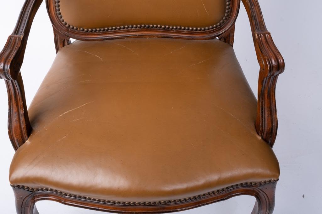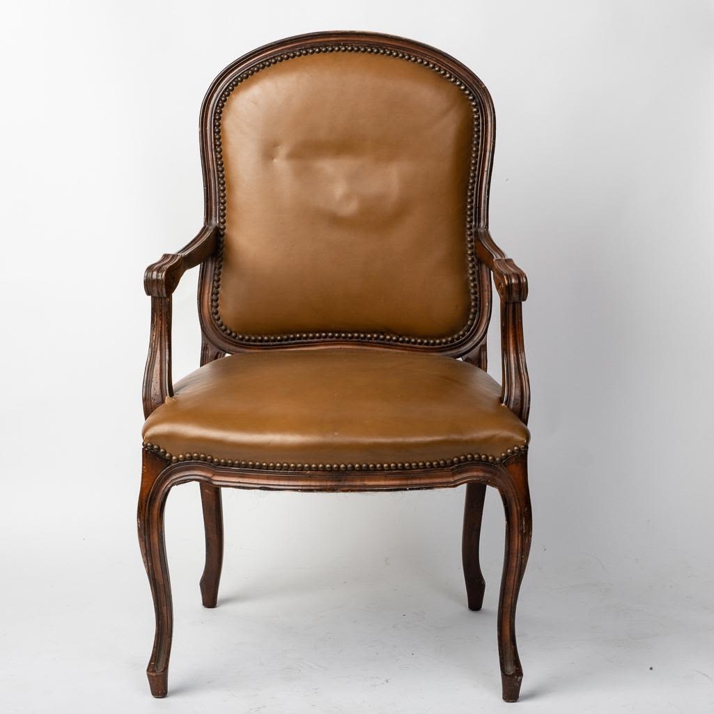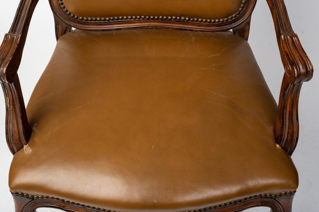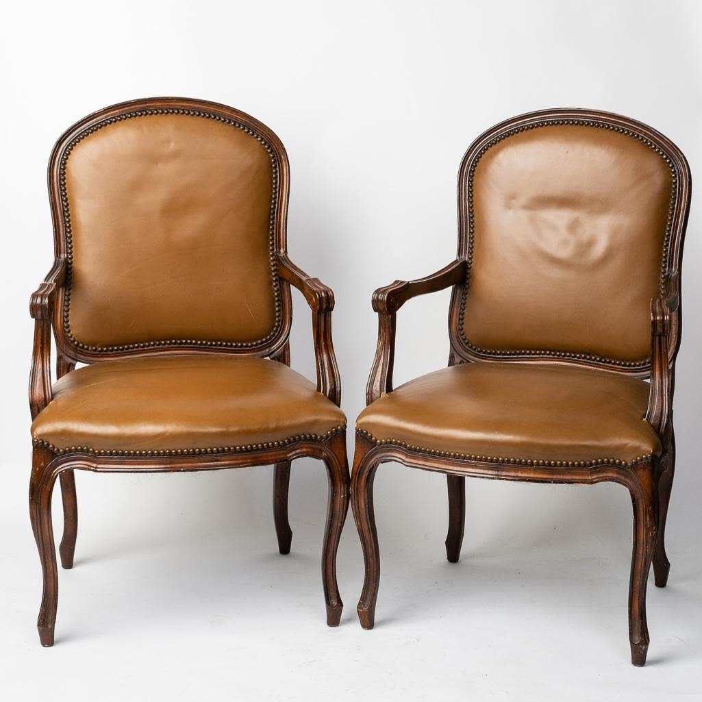 Pair of Louis XV Leather upholstered fruit wood Chairs. 40"H x 19"D x 23.5"W. Seat Height 18"H