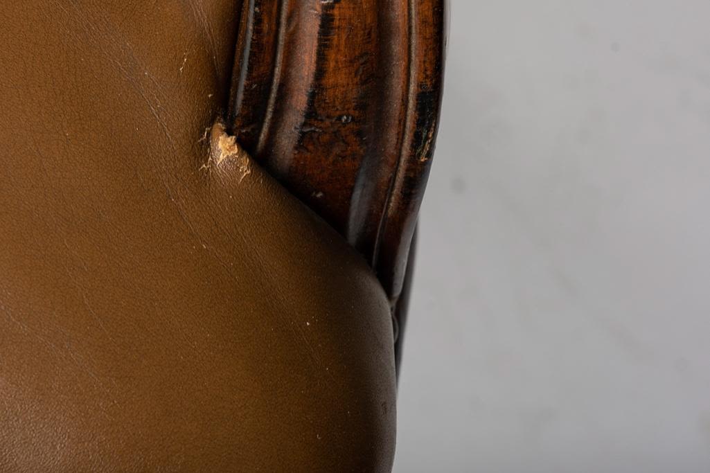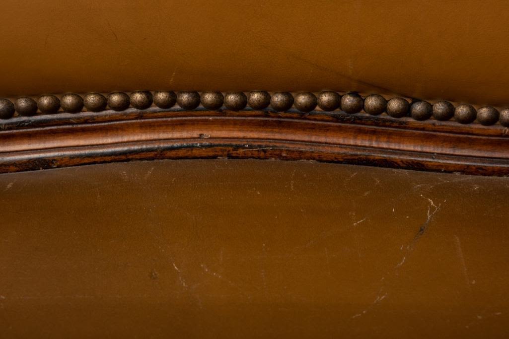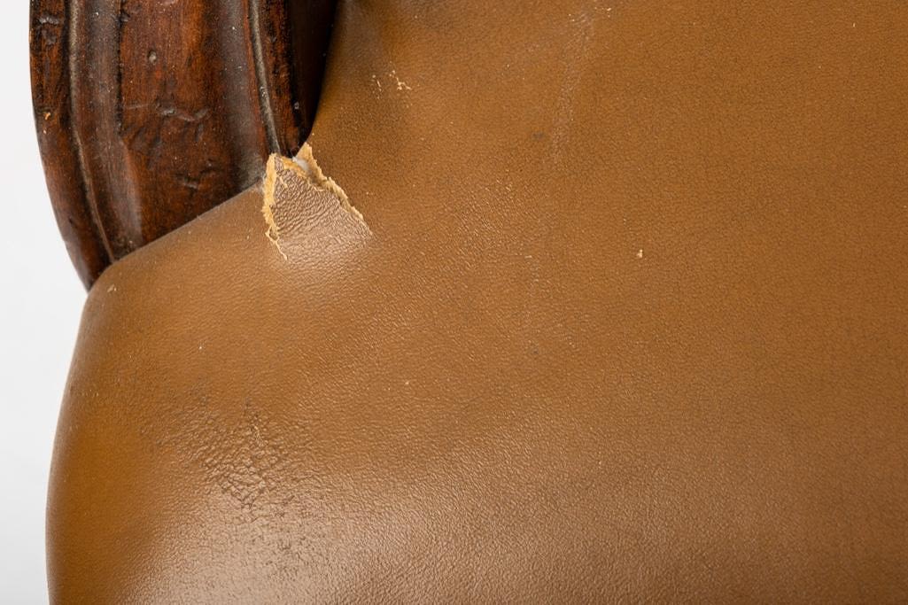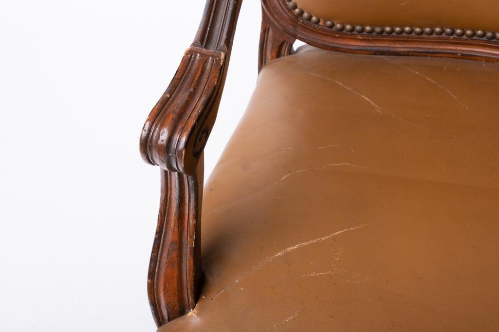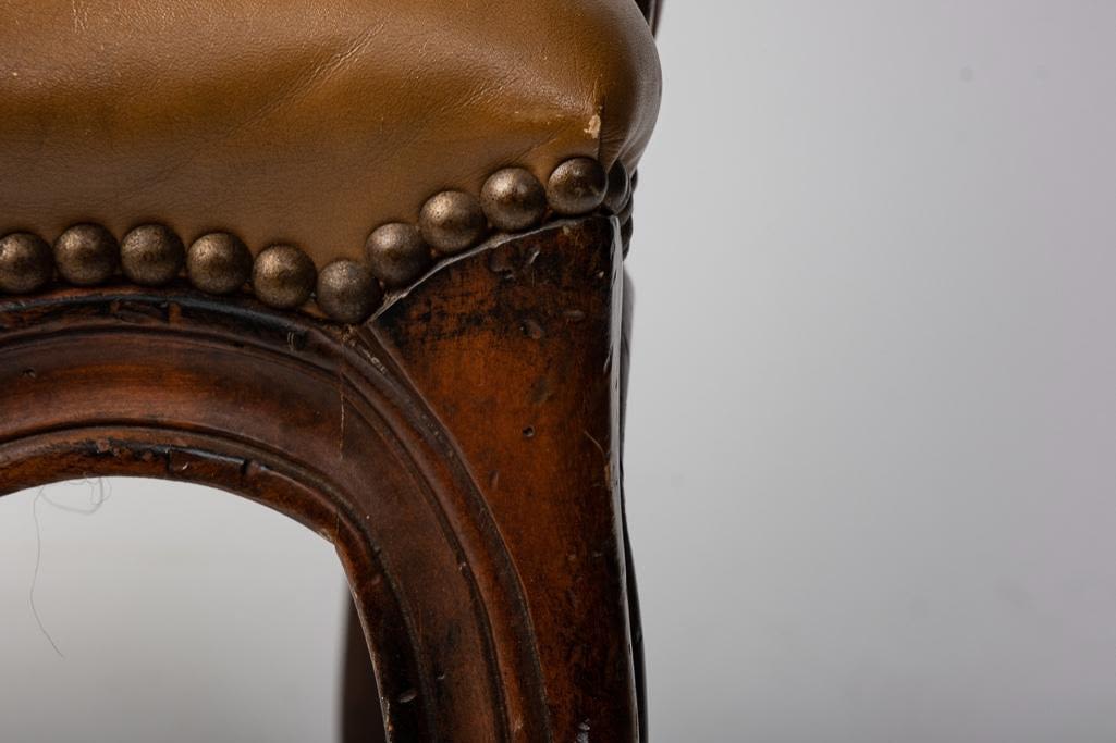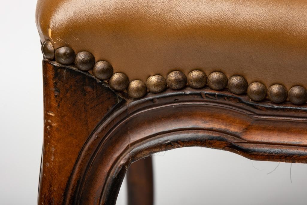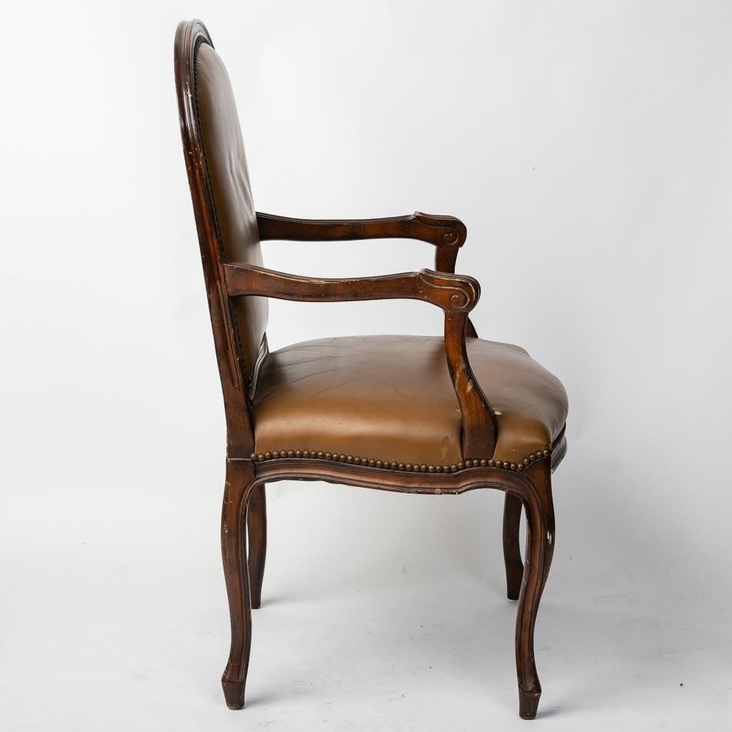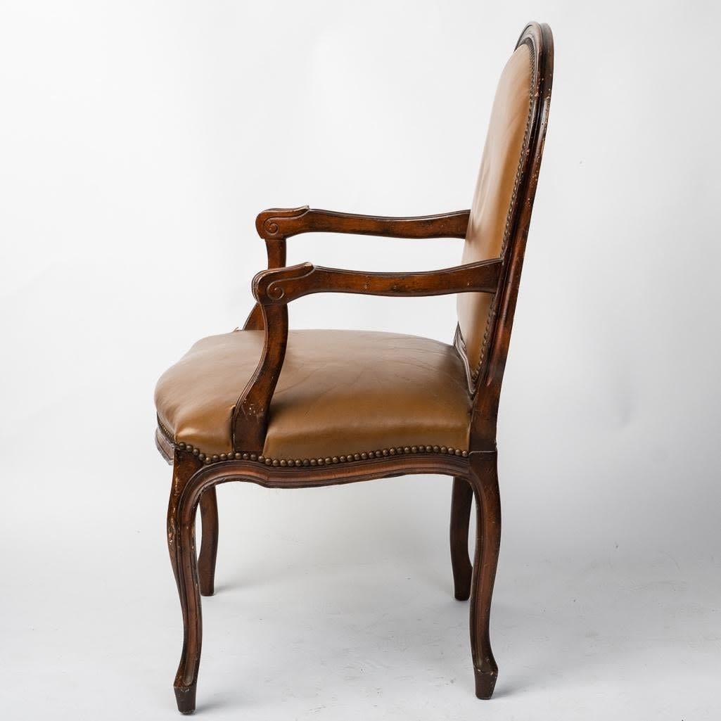 Pair of Louis XV Leather upholstered fruit wood Chairs. 40"H x 19"D x 23.5"W. Seat Height 18"H