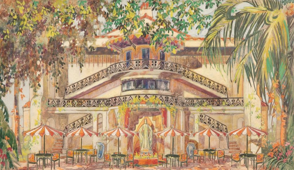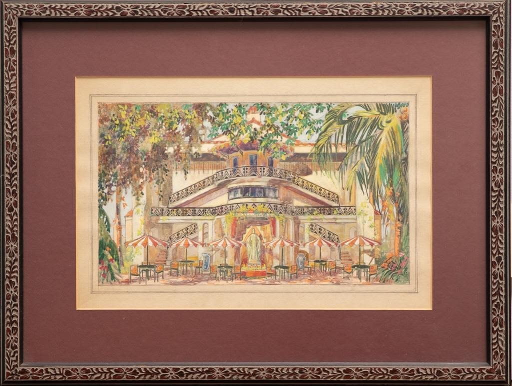 Art Deco Interior Rendering. Measures 20.75"W x 16.25’H Framed. Visible art 15.5"W x 9.5"H