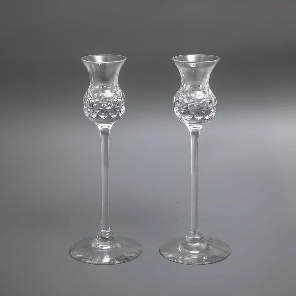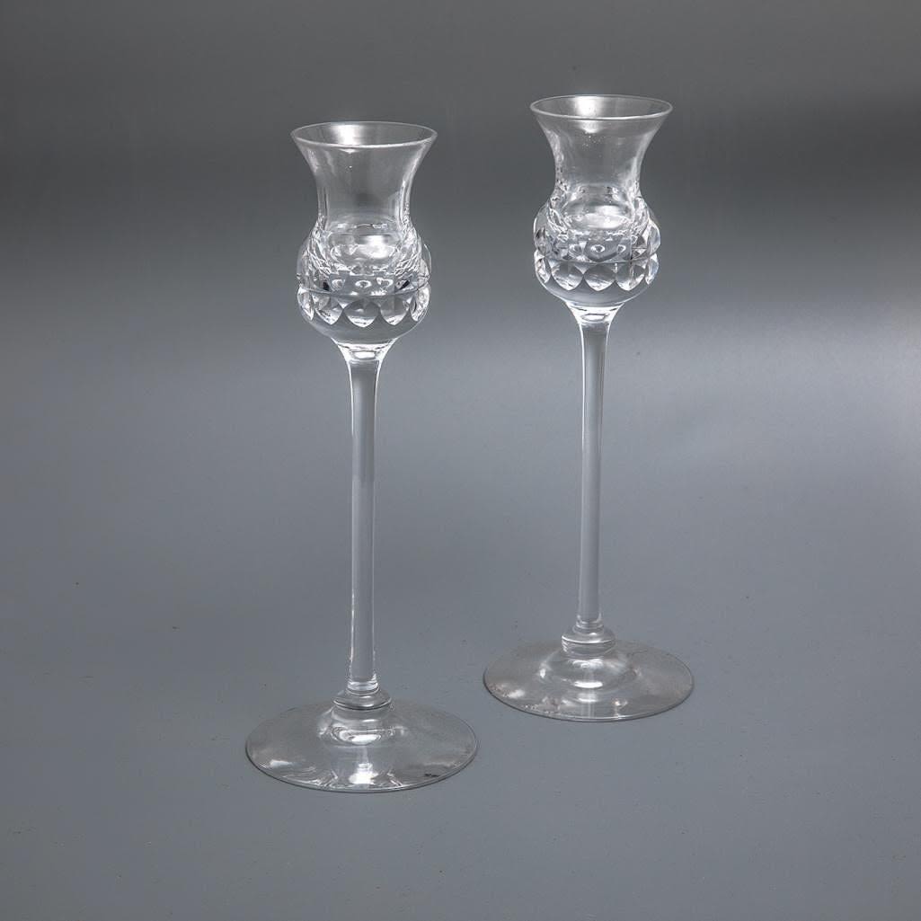 Mid Century modern 20th century Kosta Boda signed cut glass candle stick holders Approx 9"H. Great condition.