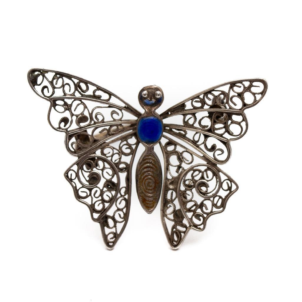 Sterling Silver and Enameled Butterfly Pin 1.5"W x 1.25" weighs 2.6"dwt approx