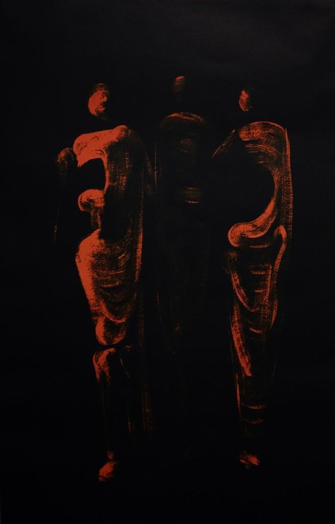 Joachim Berthold 20th Century original Unframed pencil Signed Artist Proof "Three Woman" lithograph 21.5" x 32"
