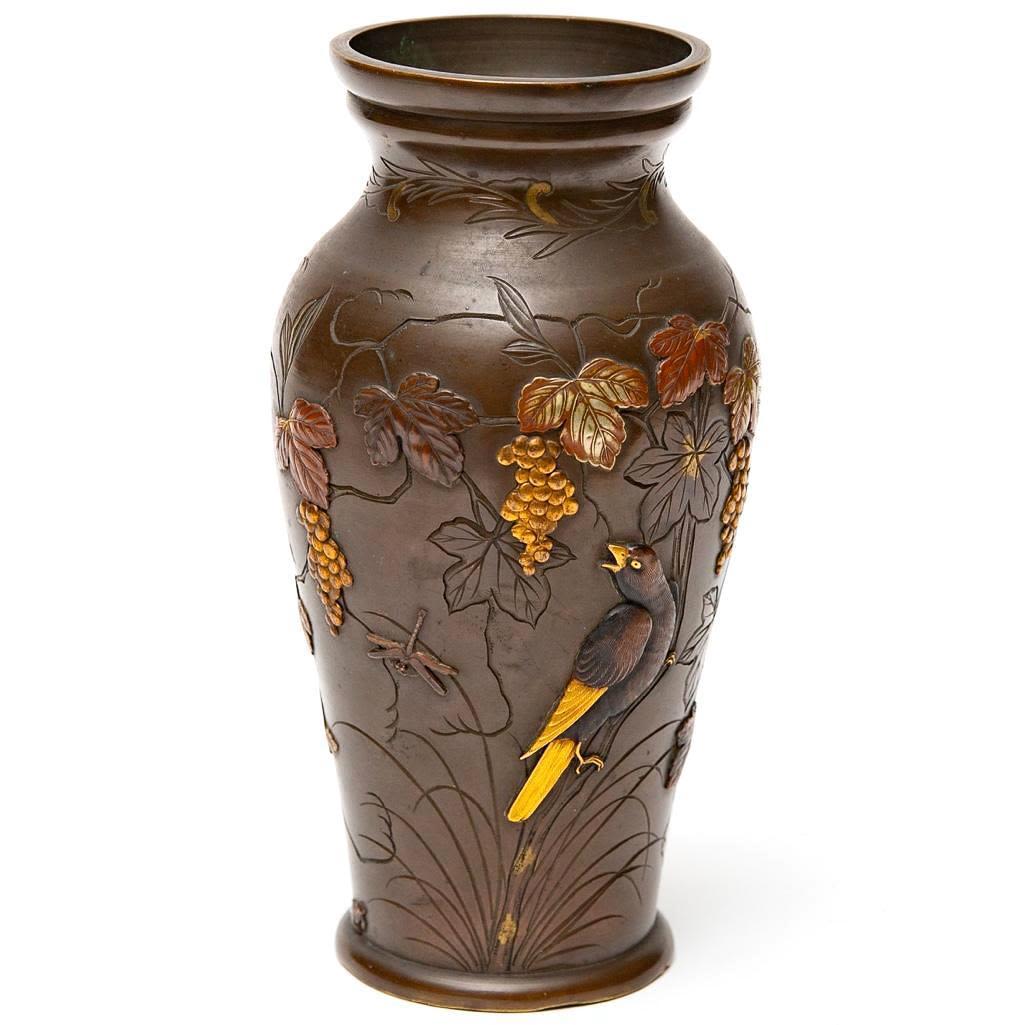 Meiji Asian Japanese multi metal vase. Late 19th century good quality. Measures 4.0" W x 8.5" H x 4.0" D approx. Great condition.