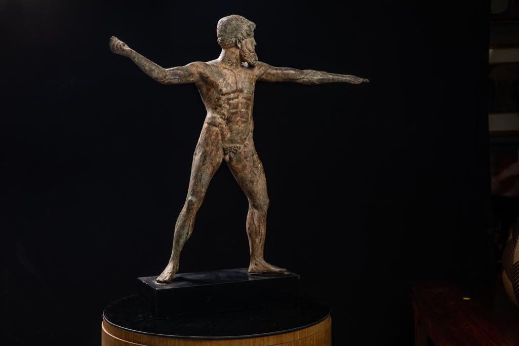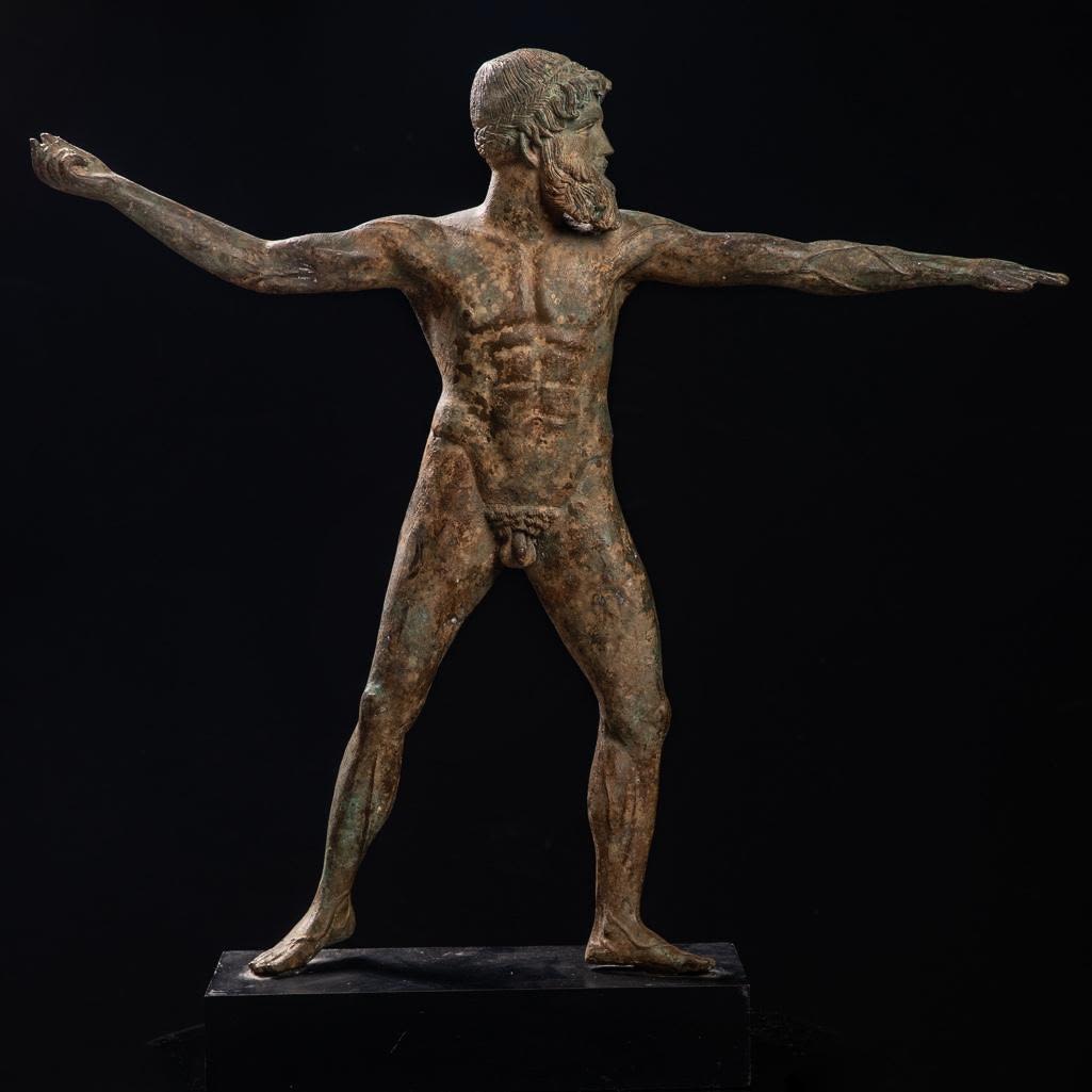 Antique Bronze figure of Zeus. 25 1/2" x 23". Good condition. It is an old item.