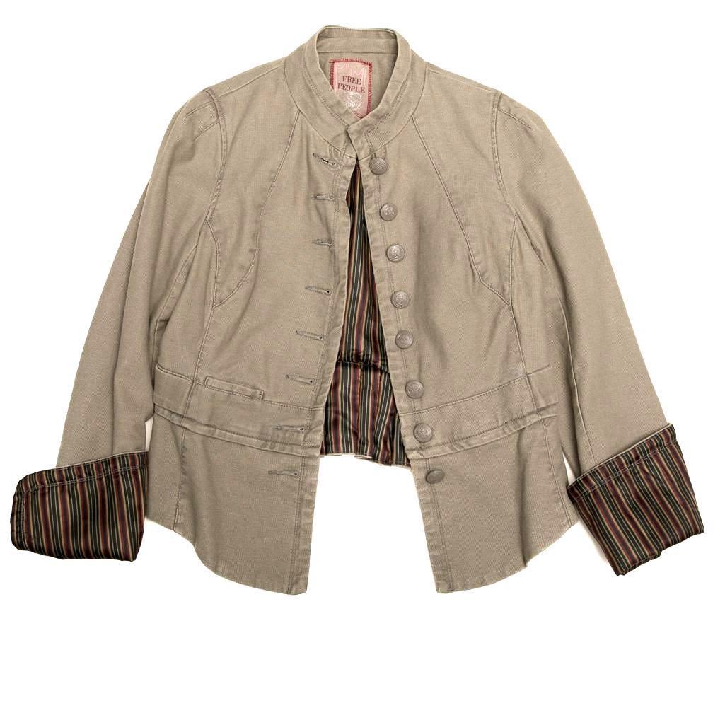Free People canvas jacket 100 percent cotton with pleated tail. Size 4.
