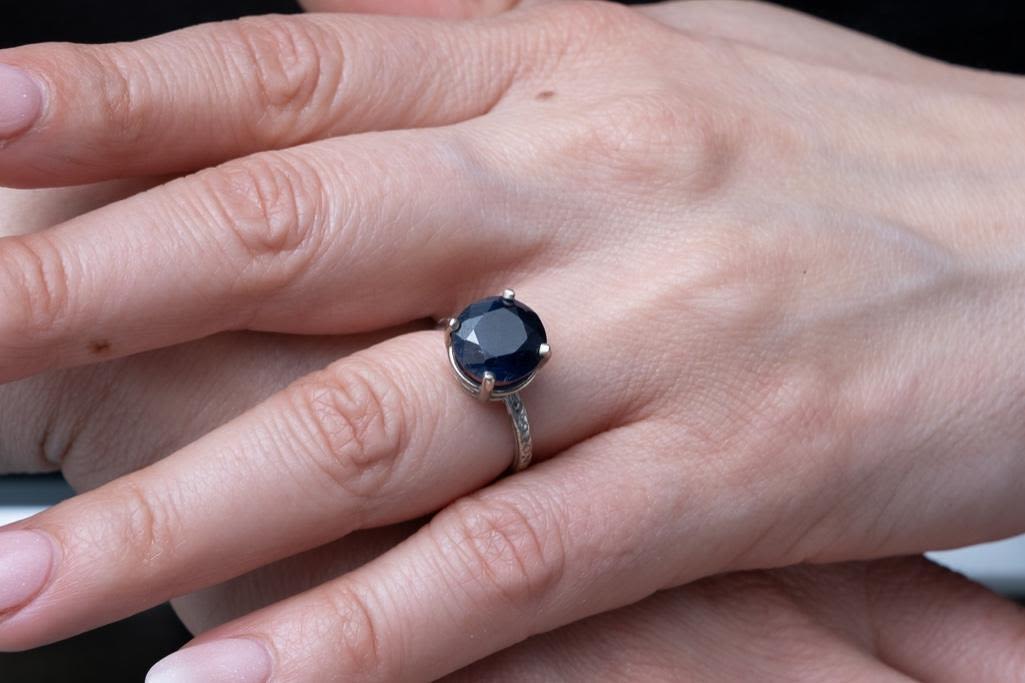 Contemporary 18k white gold ring with 5.74ct sapphire s5.75 2.6 dwt. This lot is accompanied by a GIA appraiser letter from an independent and well respected firm established over 75 years ago.