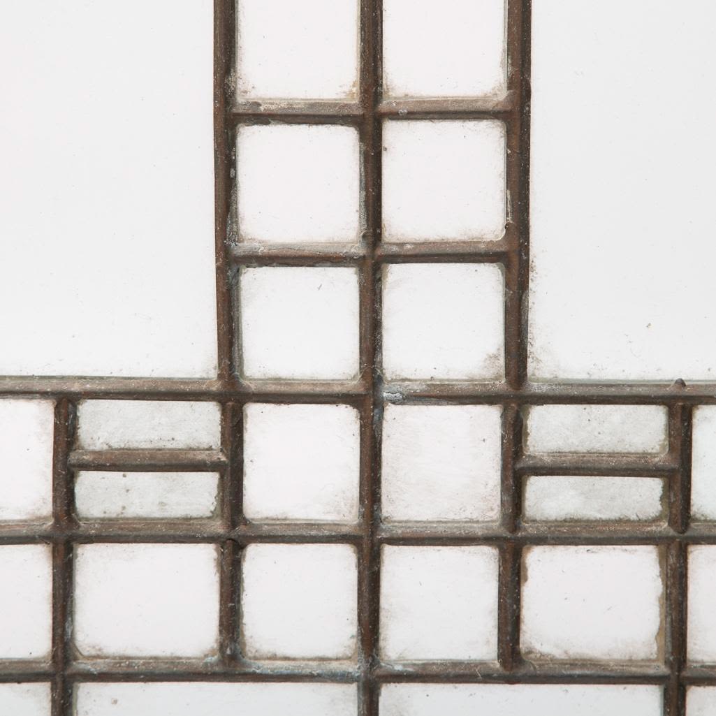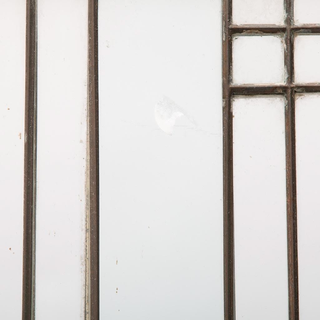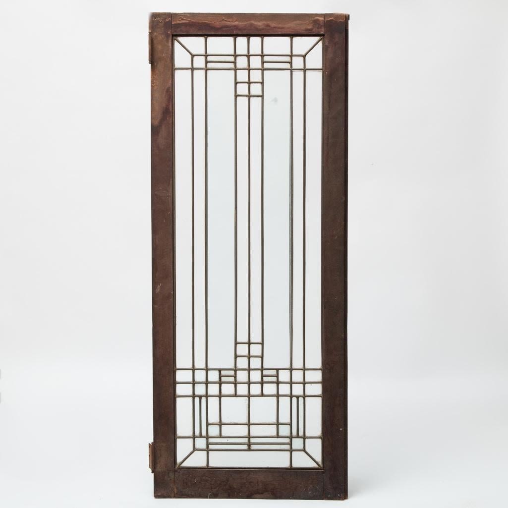 Frank Lloyd Wright style prairie design leaded glass windows. Vintage Early 20th Century Circa 1910 ht. 46, wd. 18 1/2, dp. 3/4 in. Some loose panes. Areas of water stain on frames. Looseness in frames.
