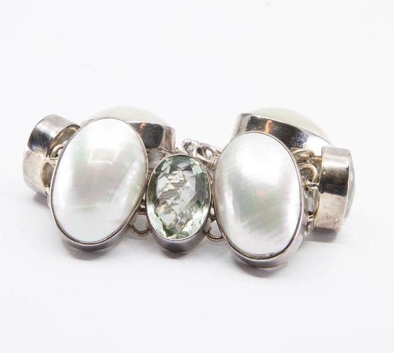 Vintage Sterling silver quartz and pearl bracelet. Weighs 45,5 dwt and measures 7"L approx