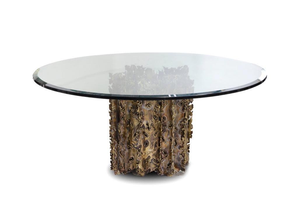 Silas Seandel mid-century modern brutalist dining table, Cathedral series Circa 1970’s 25" height x 55" diameter