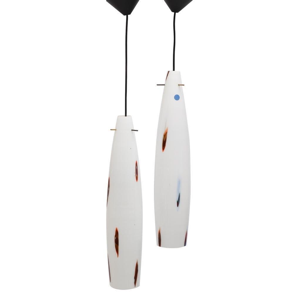 Pair of long and large Venini Murano Glass Hanging Pendant Lamps shades measure 22.5"x5"Diameter