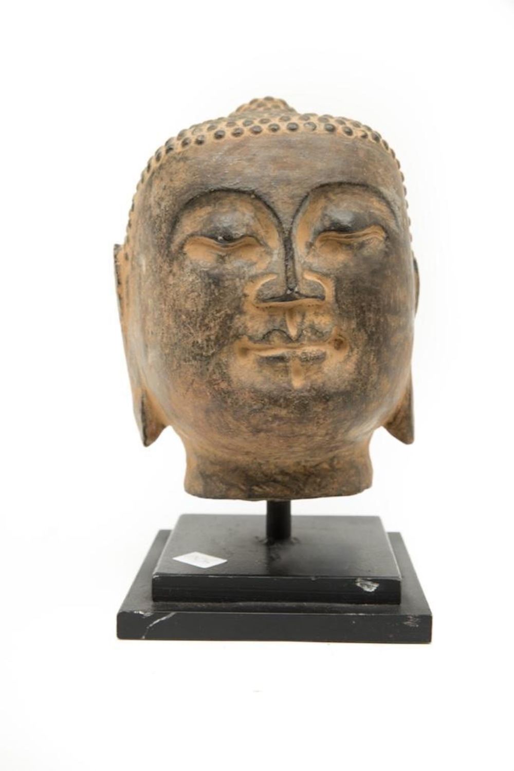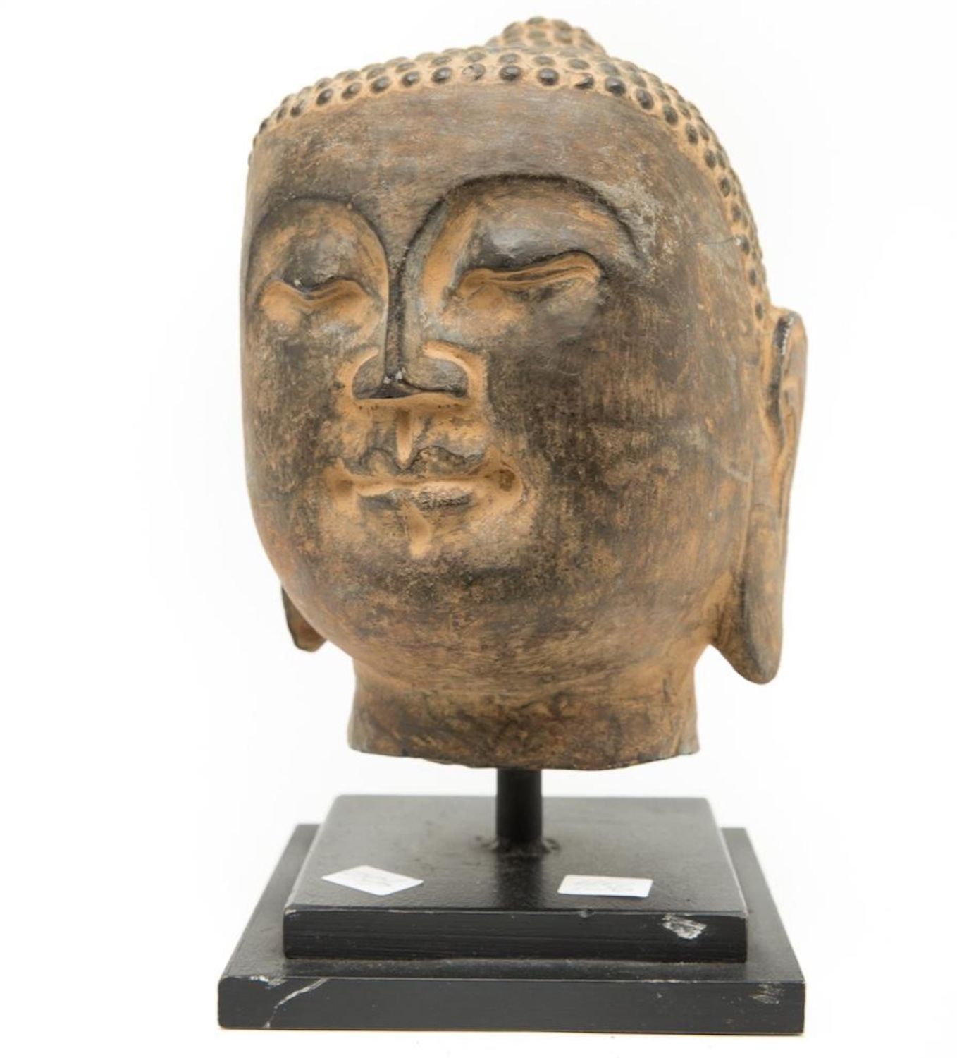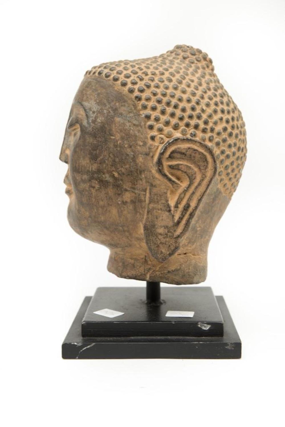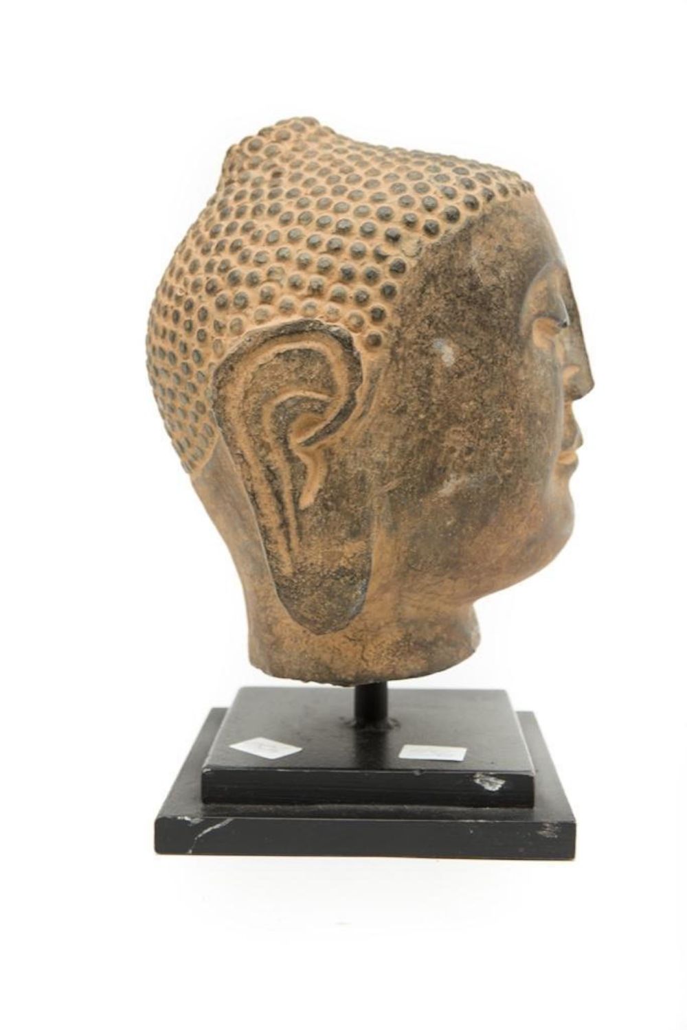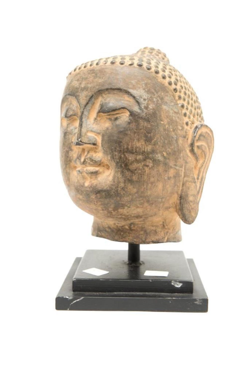 Antique southeast Asia stone carving of Buddha head 9"H. This is an Old piece. Condition commensurate with age.