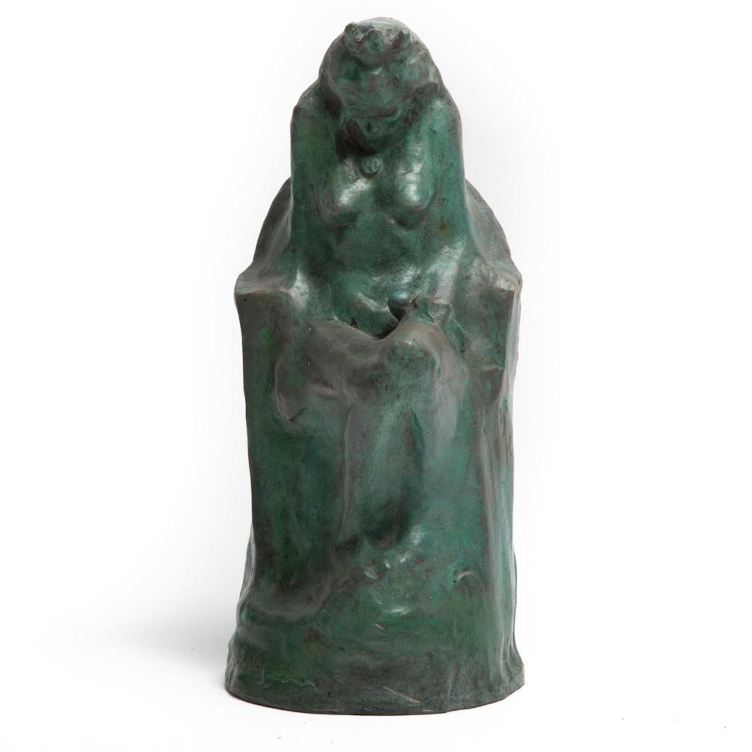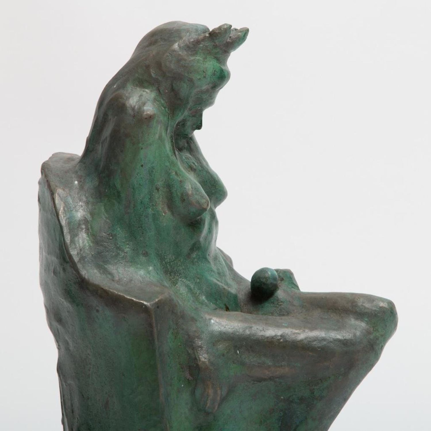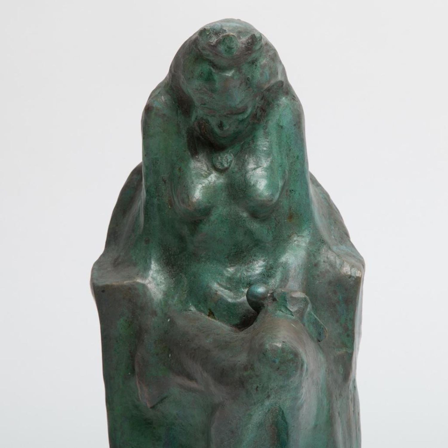 Dorothy Rice Peirce bronze figure title "Deity" Gorham Founders, Circa 1925. Measures 16.5"H. Dorothy Rice Sims (Peirce) (Wiki): Dorothy Rice Sims (Peirce)(June 24, 1889-March 24, 1960) was an , aviator, artist, and journalist. Born in Asbury Park, New Jersey, on June 24, 1889, one of six children of Julia (nee Barnett) and Isaac Rice, a businessman (or corporation lawyer) who founded the Electric Boat Company (producer of submarines for the US Navy and others). Her younger sister Marion (1891-1990, Marion Rice Hart) also became famous as an aviator and sportswoman. captained a 72-foot ketch around the world, most of the way alone.") Their mother Julia B. Rice founded the Society for the Suppression of Unnecessary Noises in New York City. overall good condition