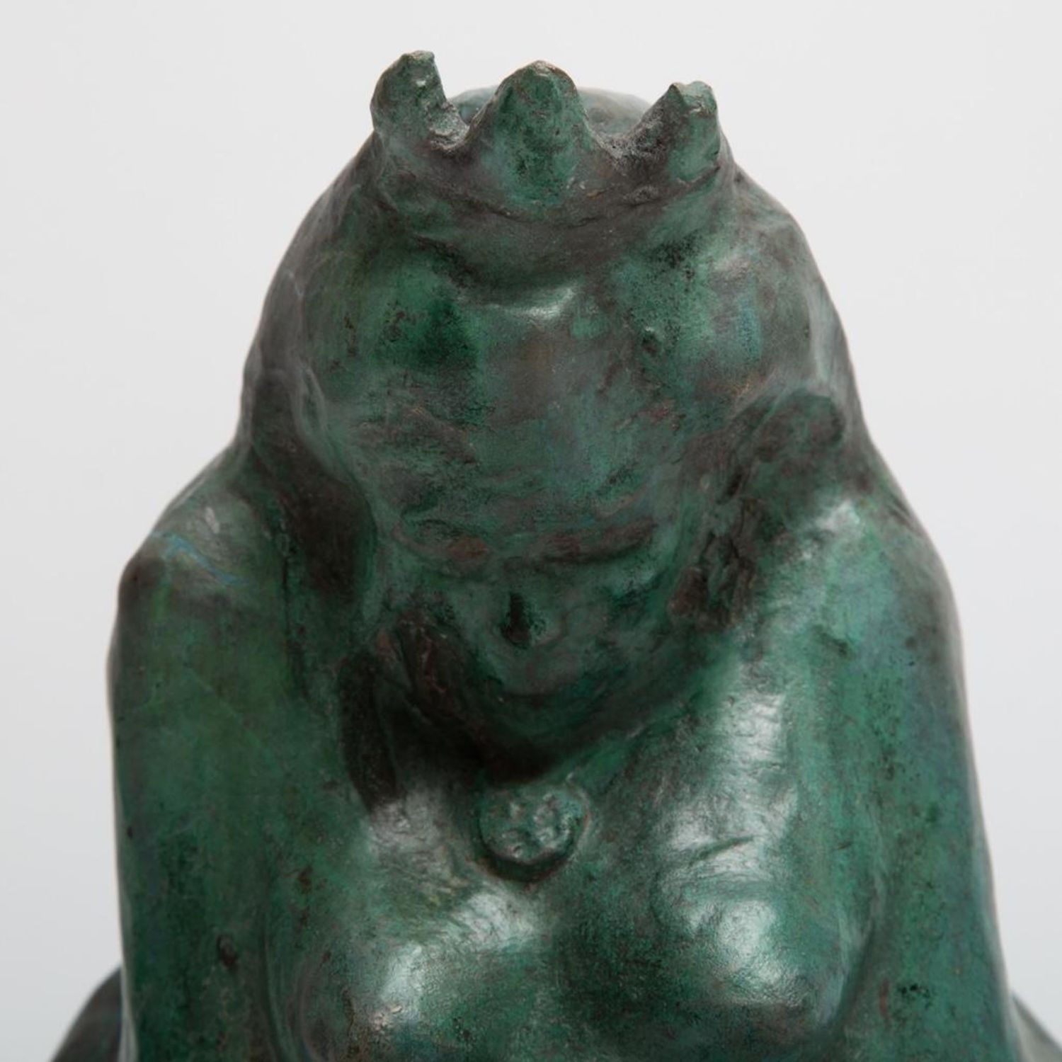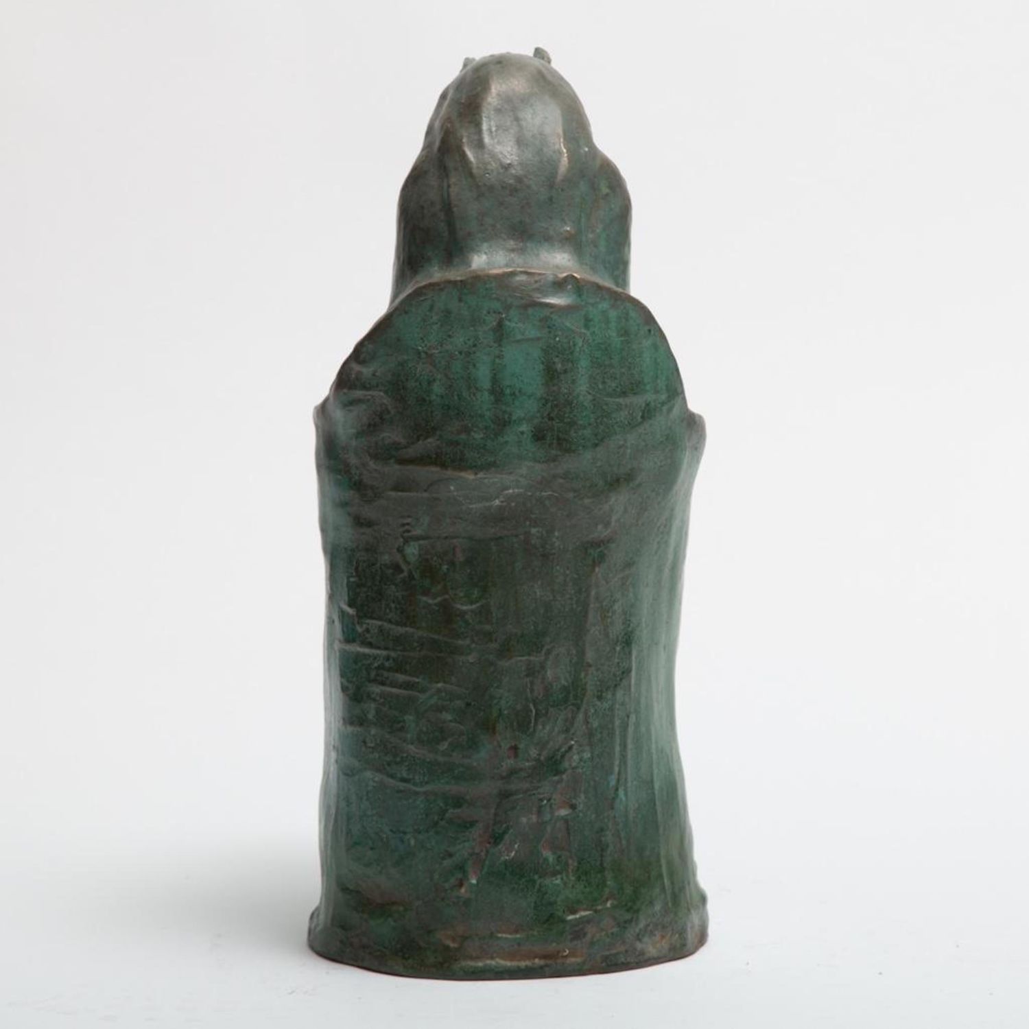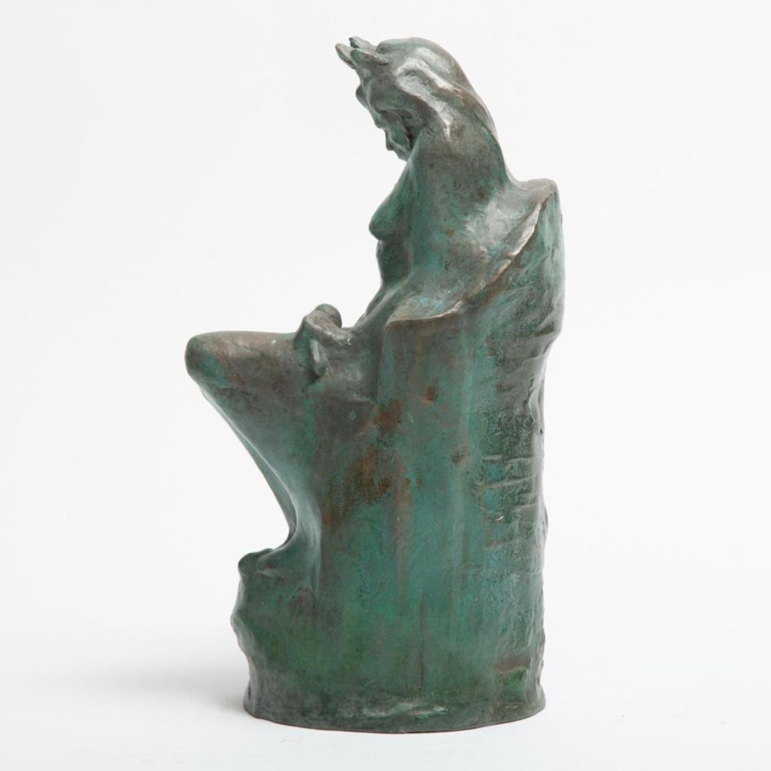 Dorothy Rice Peirce bronze figure title "Deity" Gorham Founders, Circa 1925. Measures 16.5"H. Dorothy Rice Sims (Peirce) (Wiki): Dorothy Rice Sims (Peirce)(June 24, 1889-March 24, 1960) was an , aviator, artist, and journalist. Born in Asbury Park, New Jersey, on June 24, 1889, one of six children of Julia (nee Barnett) and Isaac Rice, a businessman (or corporation lawyer) who founded the Electric Boat Company (producer of submarines for the US Navy and others). Her younger sister Marion (1891-1990, Marion Rice Hart) also became famous as an aviator and sportswoman. captained a 72-foot ketch around the world, most of the way alone.") Their mother Julia B. Rice founded the Society for the Suppression of Unnecessary Noises in New York City. overall good condition