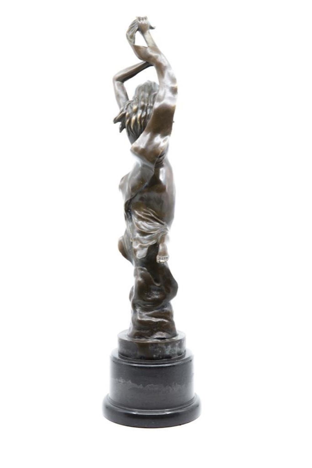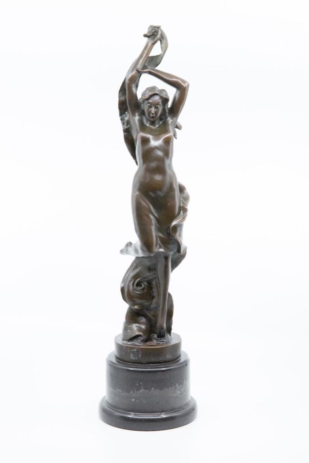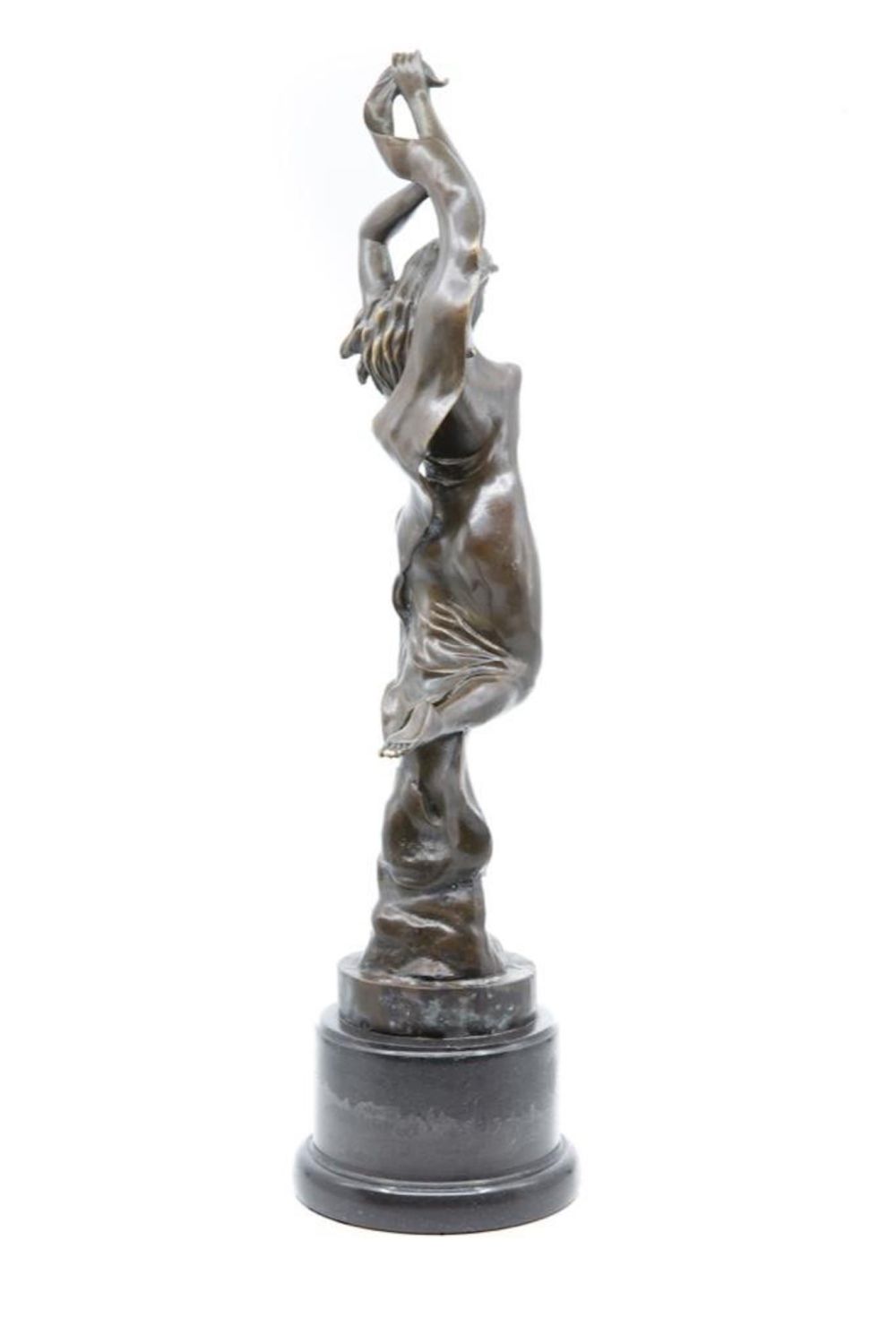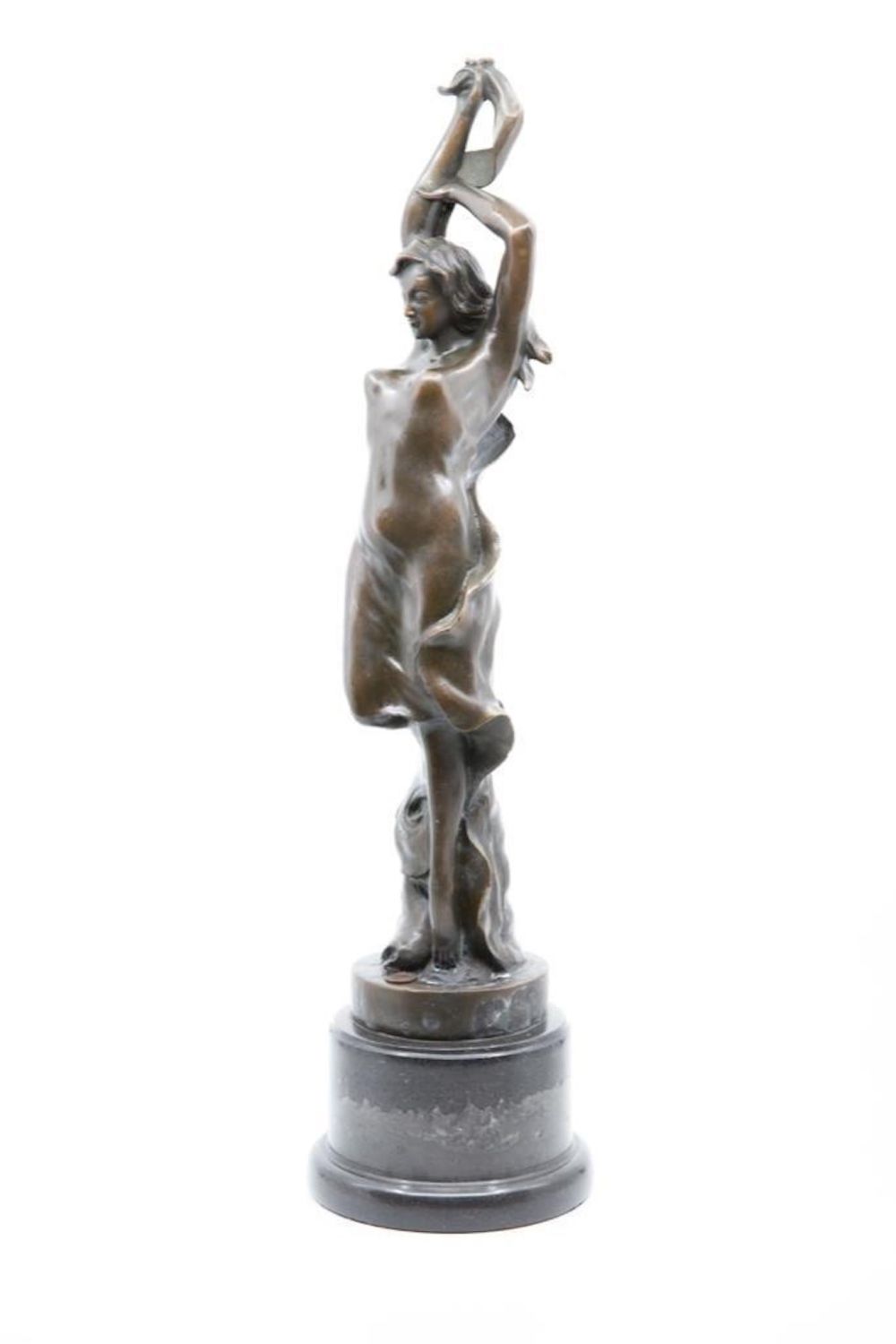 vintage art nouveau art deco 20th century bronze figure of a female dancer in chemise with long scarf on marble plinth. signature Mark on Base. 21" ht approx. Good condition. Great Bronze. overall good condition