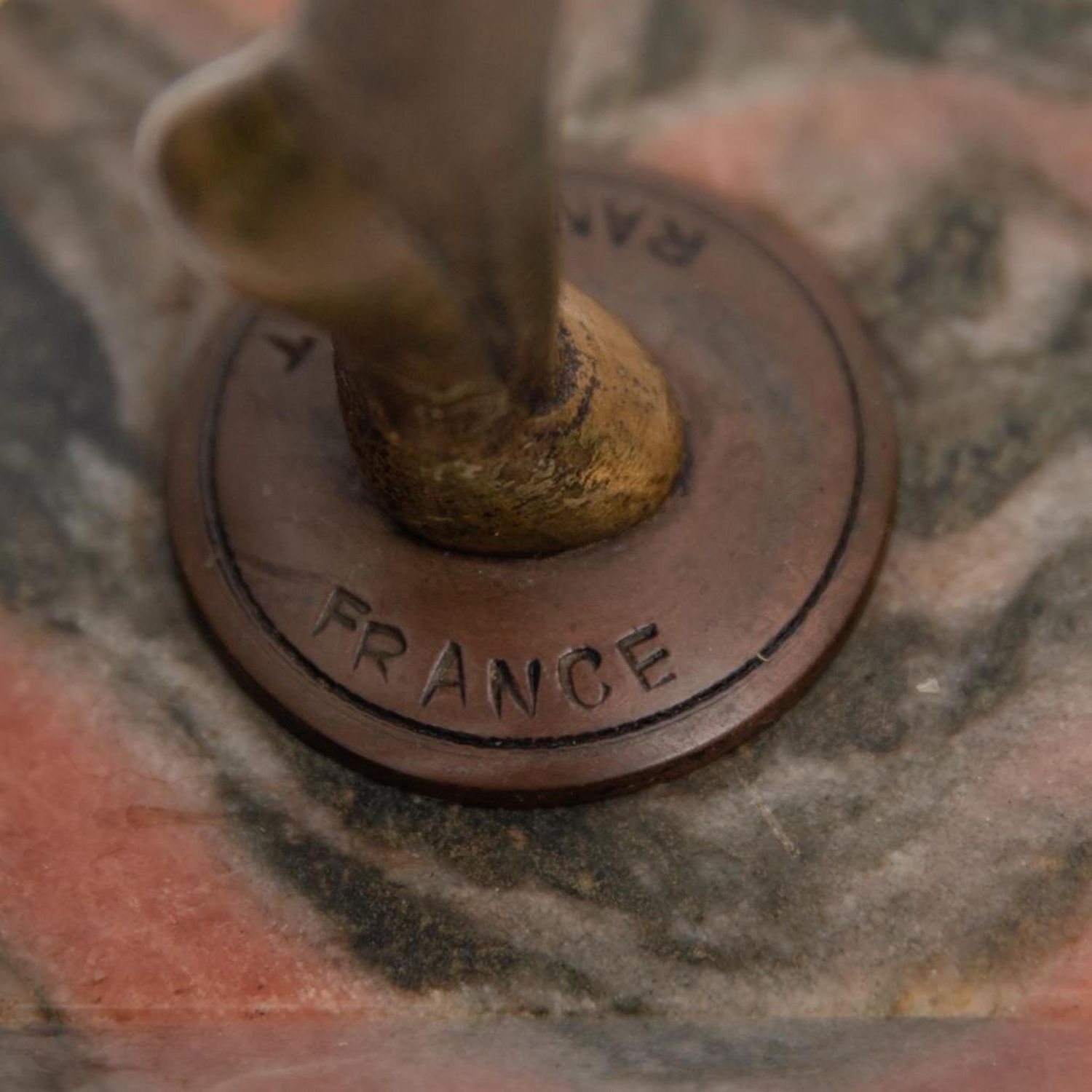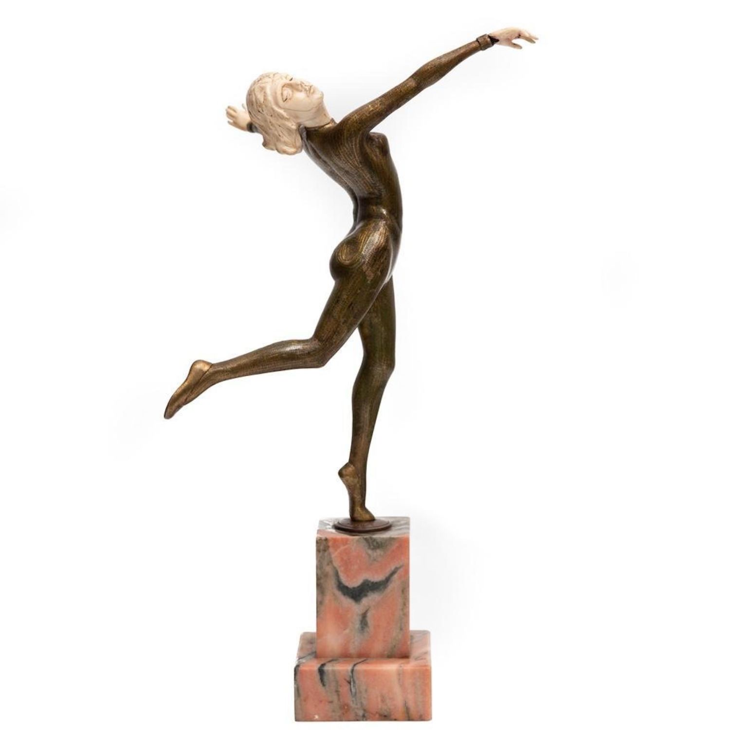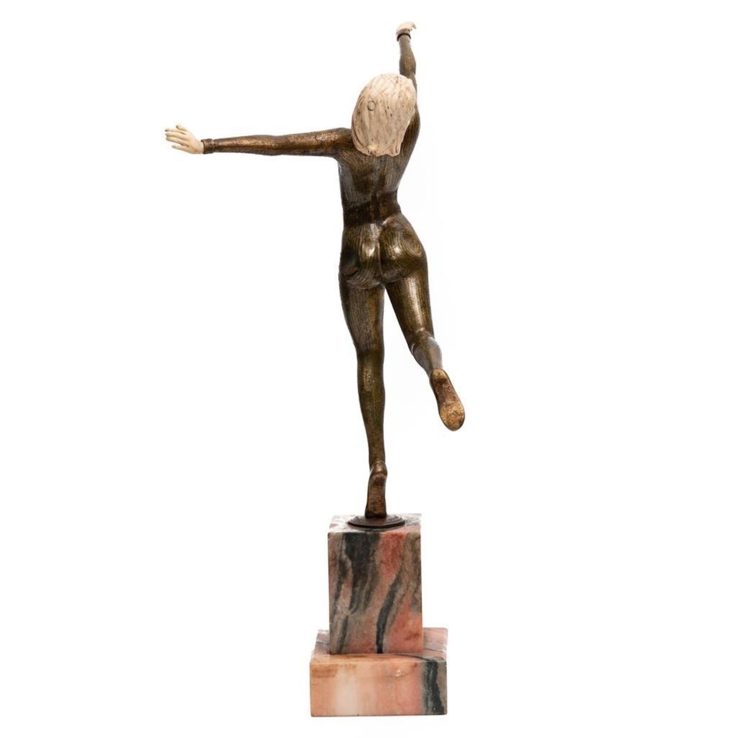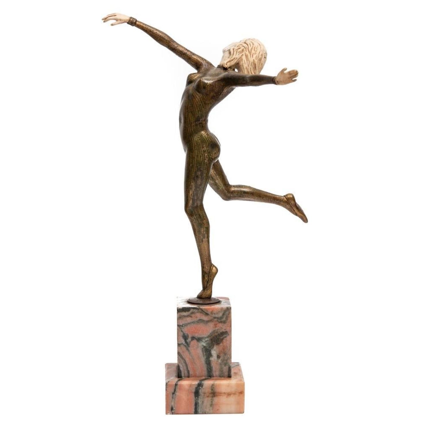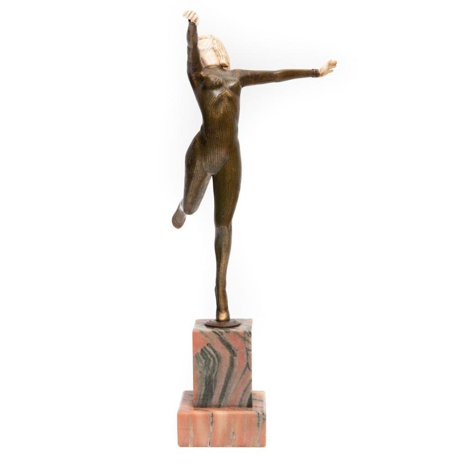Ernest Rancoulet cold painted art deco art nouveau Bronze signed Sculpture with carved head and hands mounted on marble base "Deco Dancer". Measures 16 3/8"H x 10"W.