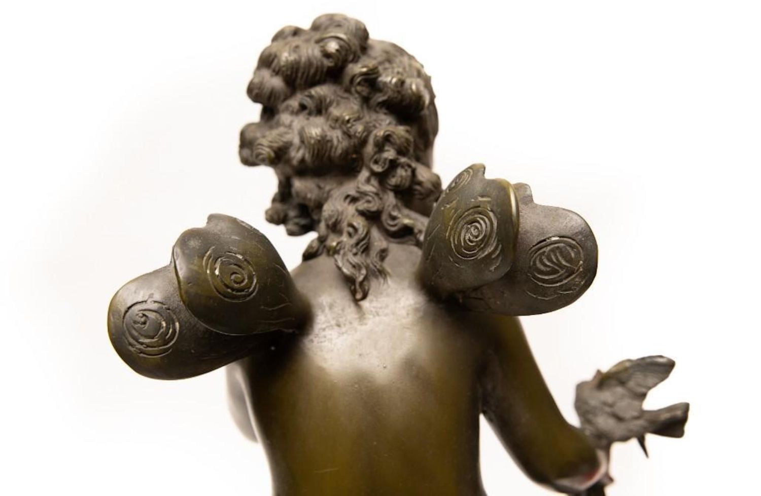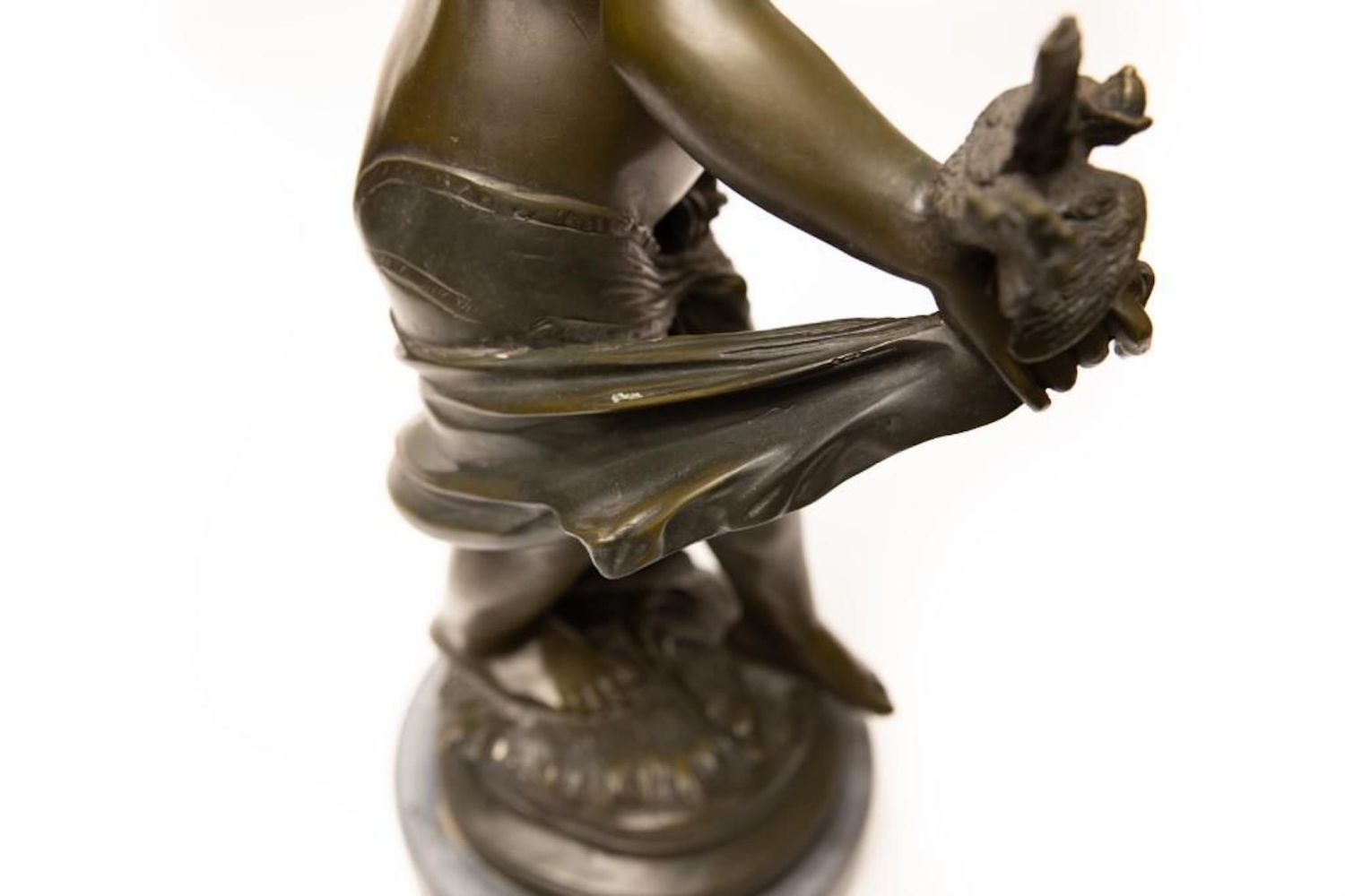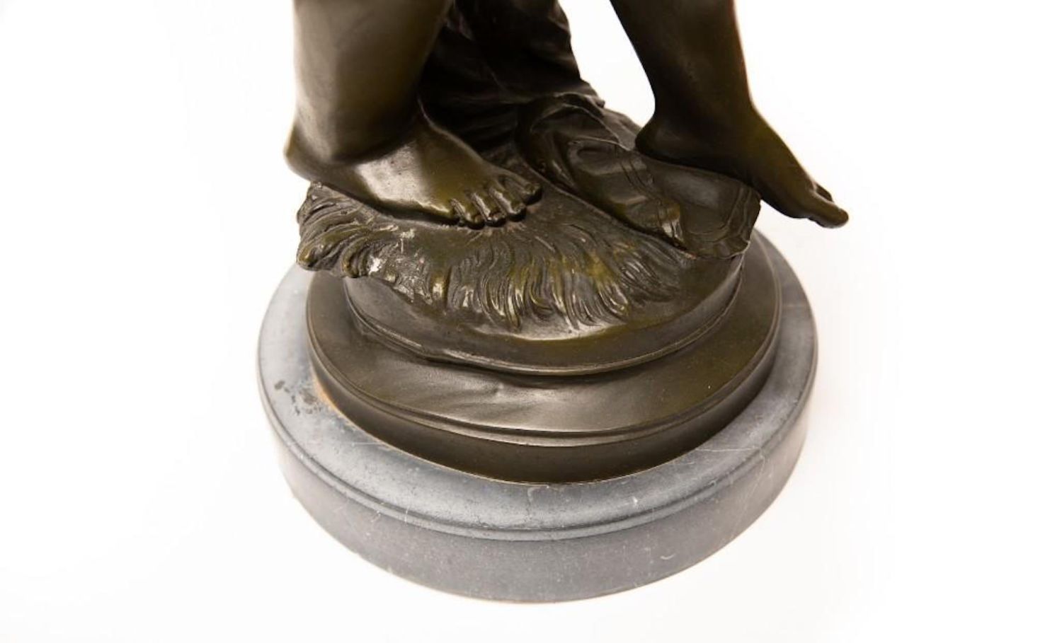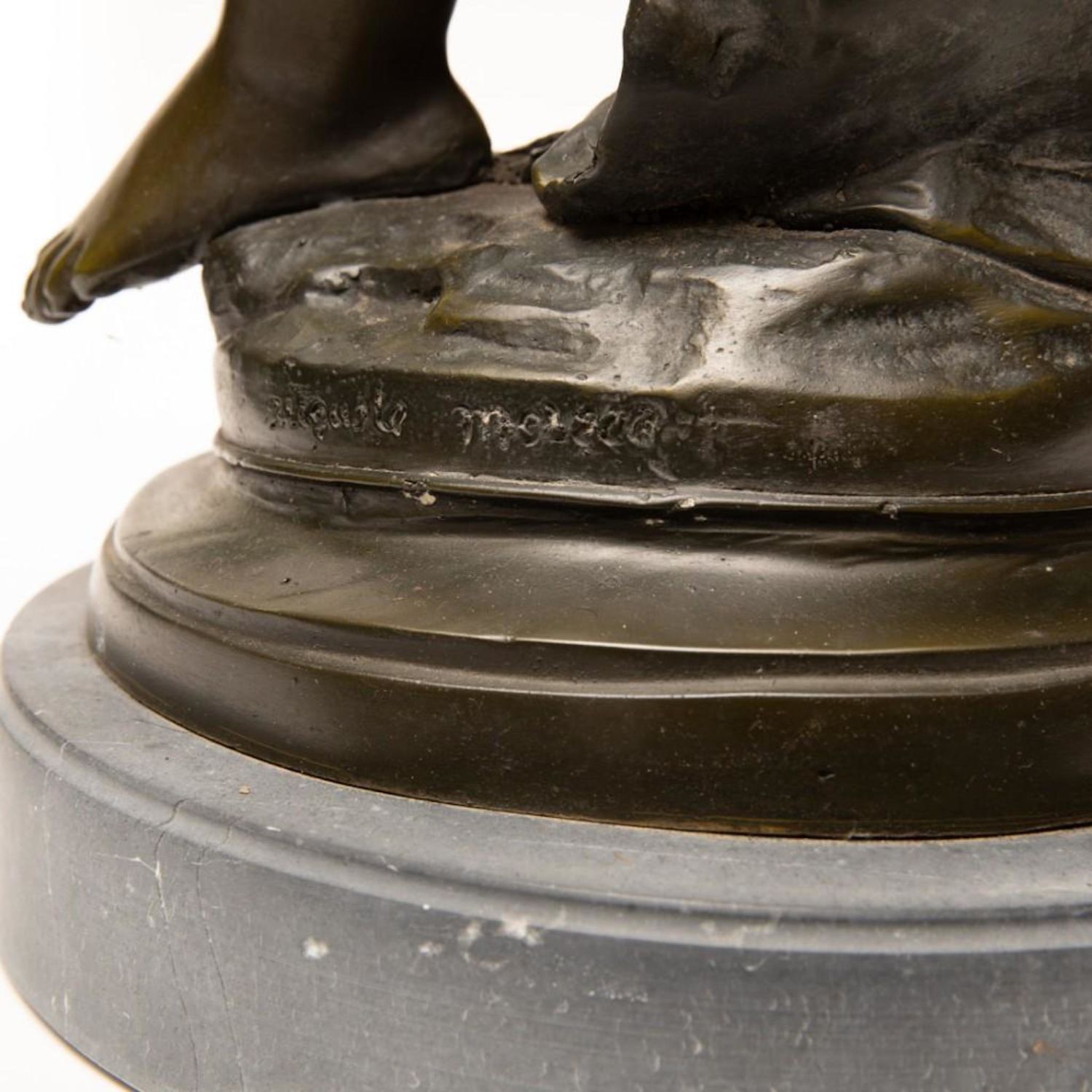 Tall Auguste Moreau Bronze Sculpture of a Young Psyche signed Auguste Moreau, green patination, inscribed signature, mounted atop a gray marble plinth, ht. 28 1/4" x 11"W x 11"D approx. overall good condition