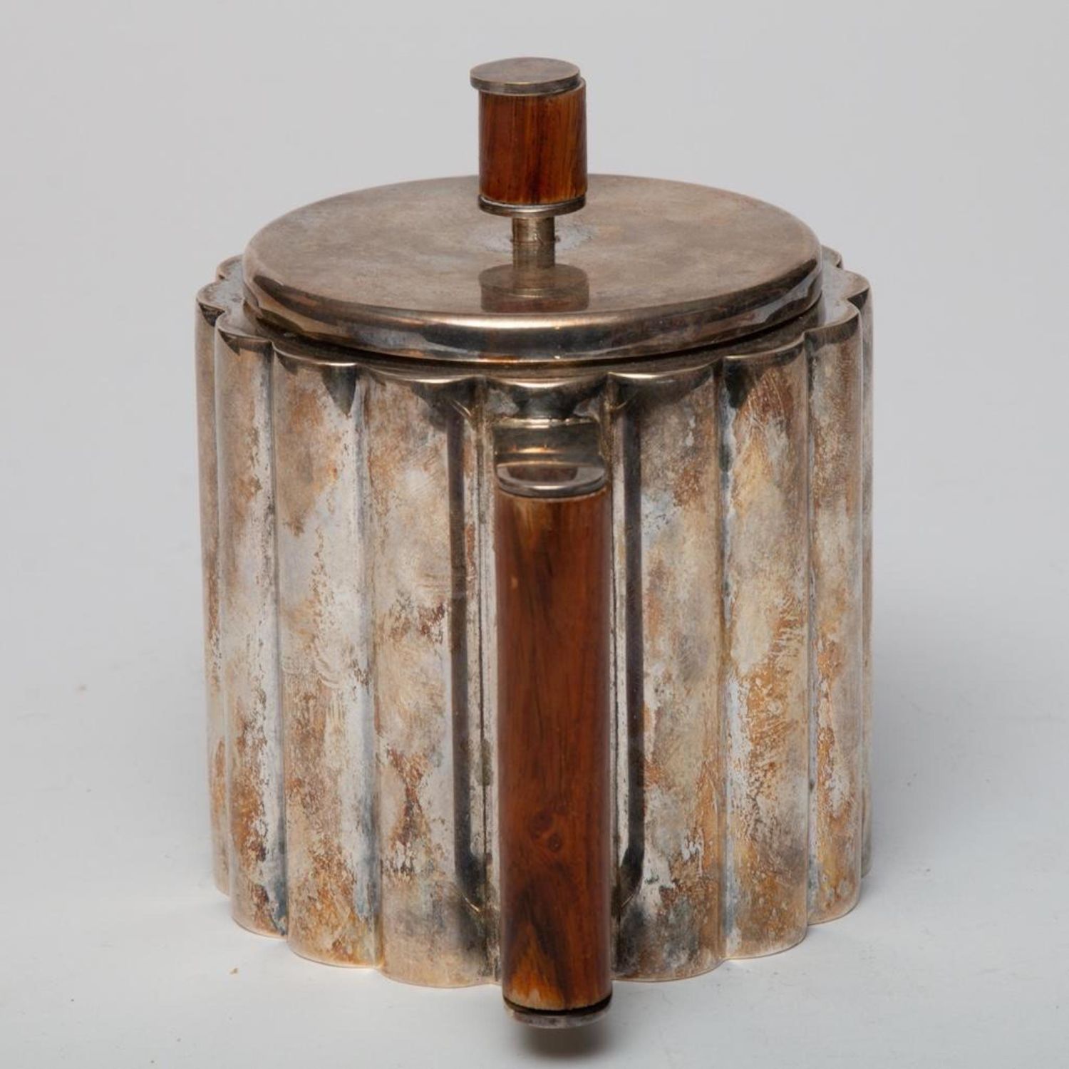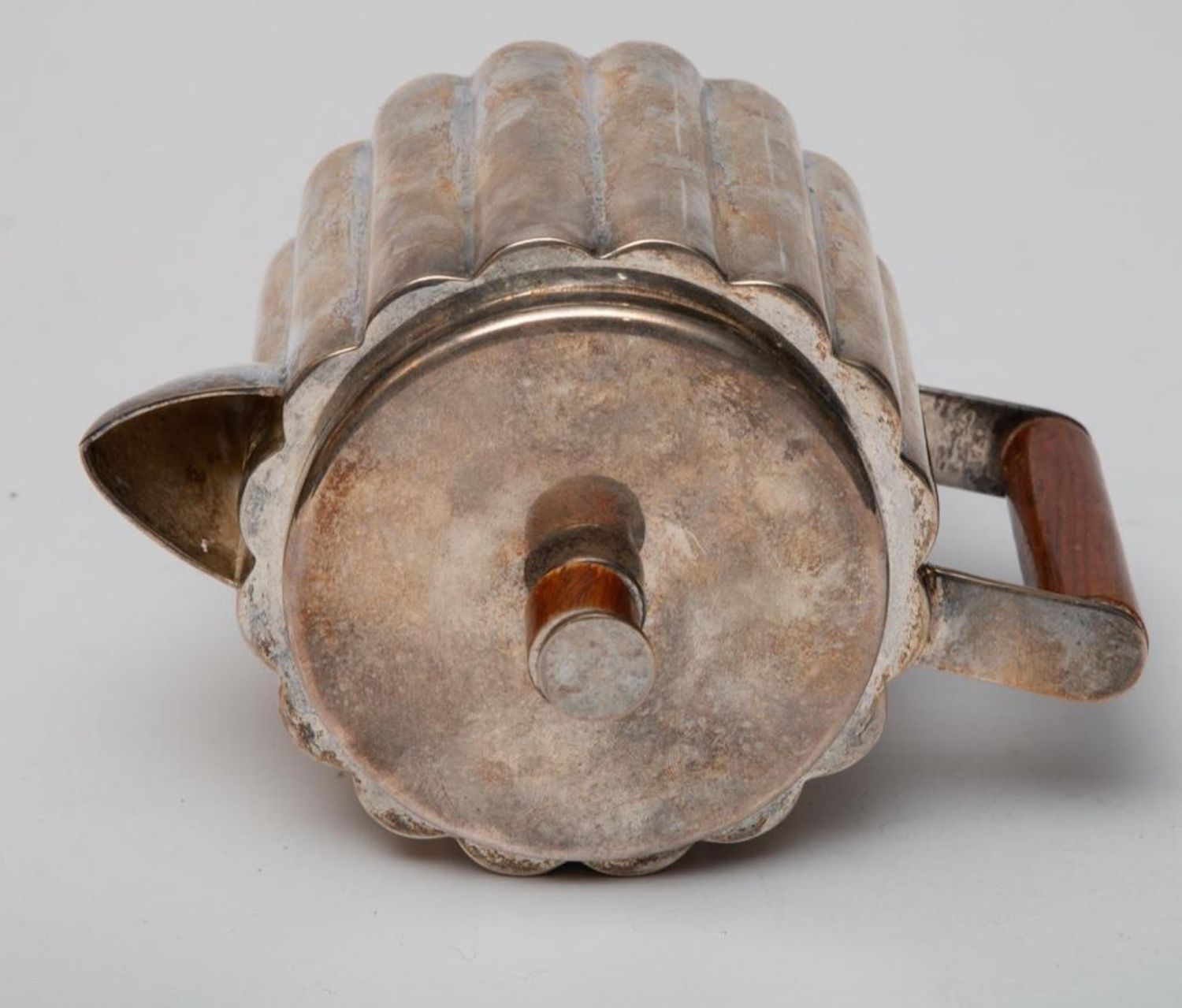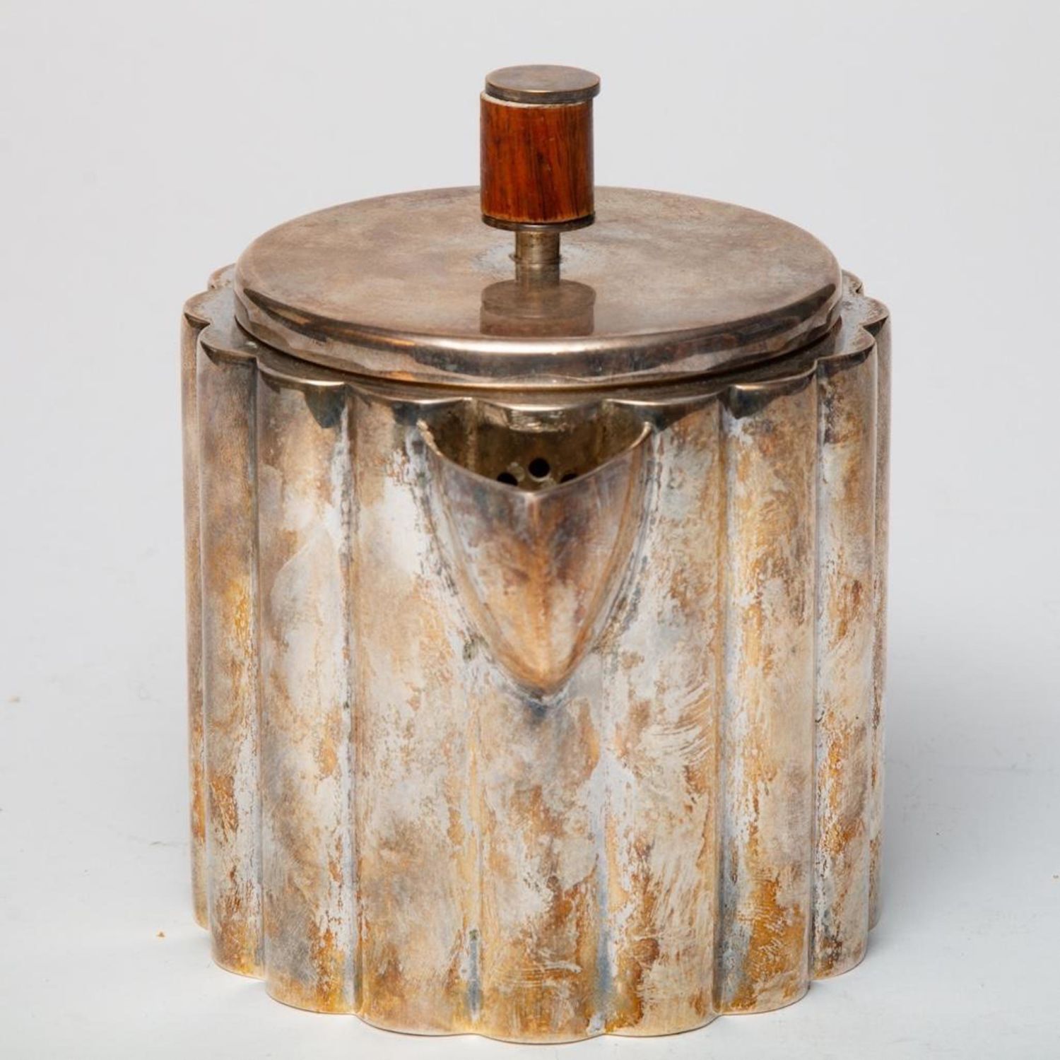 Silver Plated art deco tea pot by Ilonka Karasz 1928 for Payne Baker 5"H x 4"W x 6"D. needs a good polishing otherwise good condition