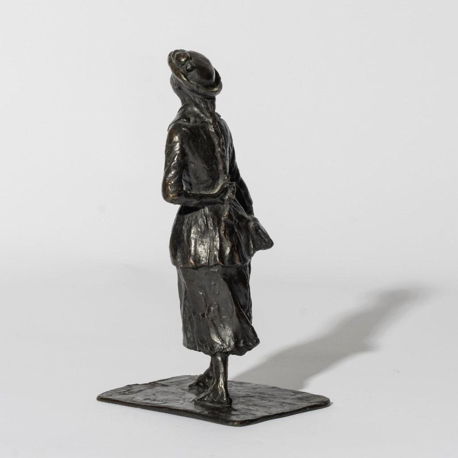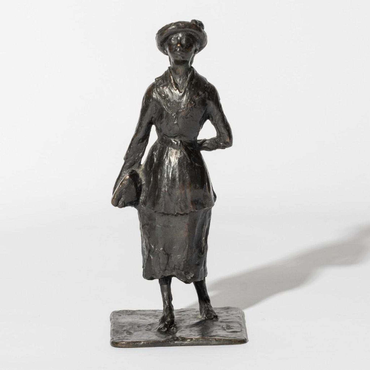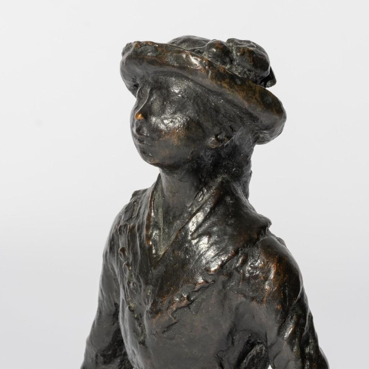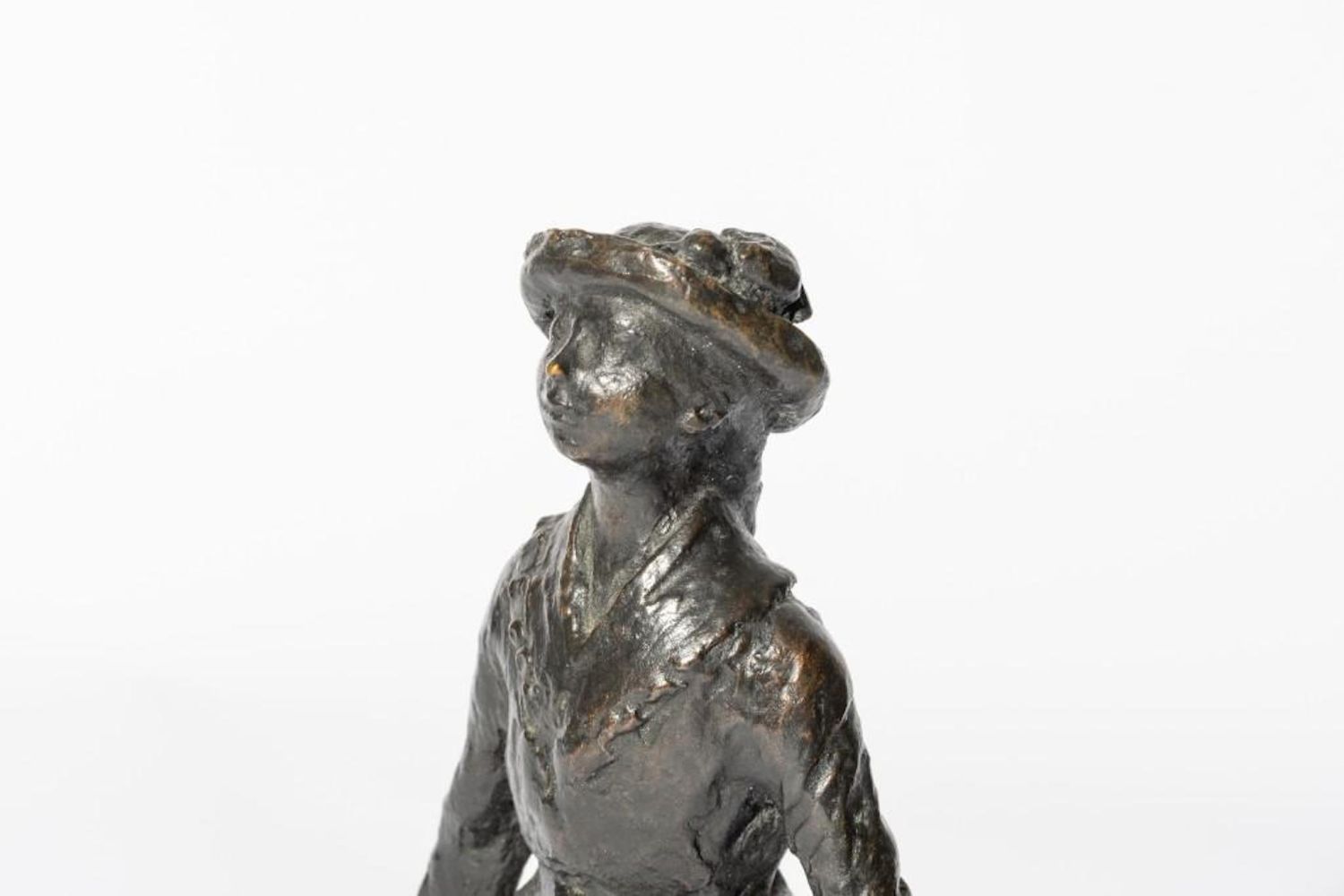 Bronze schoolgirl after Edgar Degas, from Nelson Rockefeller collection. Measures 10.25"H. The 1978 article by Sarah Booth Conroy of the Washington Post basically sums it up: ‘After a lifetime of buying art, former vice president Nelson Rockfeller is now selling it-with all the money, energy and enthusiasm he once put into building his collection. His latest enterprises include: "The Nelson Rockefeller Collection, "a select group of reproductions of art objects he plans to have reproduced on a yearly editioned basis from the originals he owns. Hugh Morrow, his spokesman, said by telephone from New York, "He could …lose a lot of money on this venture.". Rockefeller would die of a heart attack a year later in 1979 and the project was cancelled. this piece overall good condition
