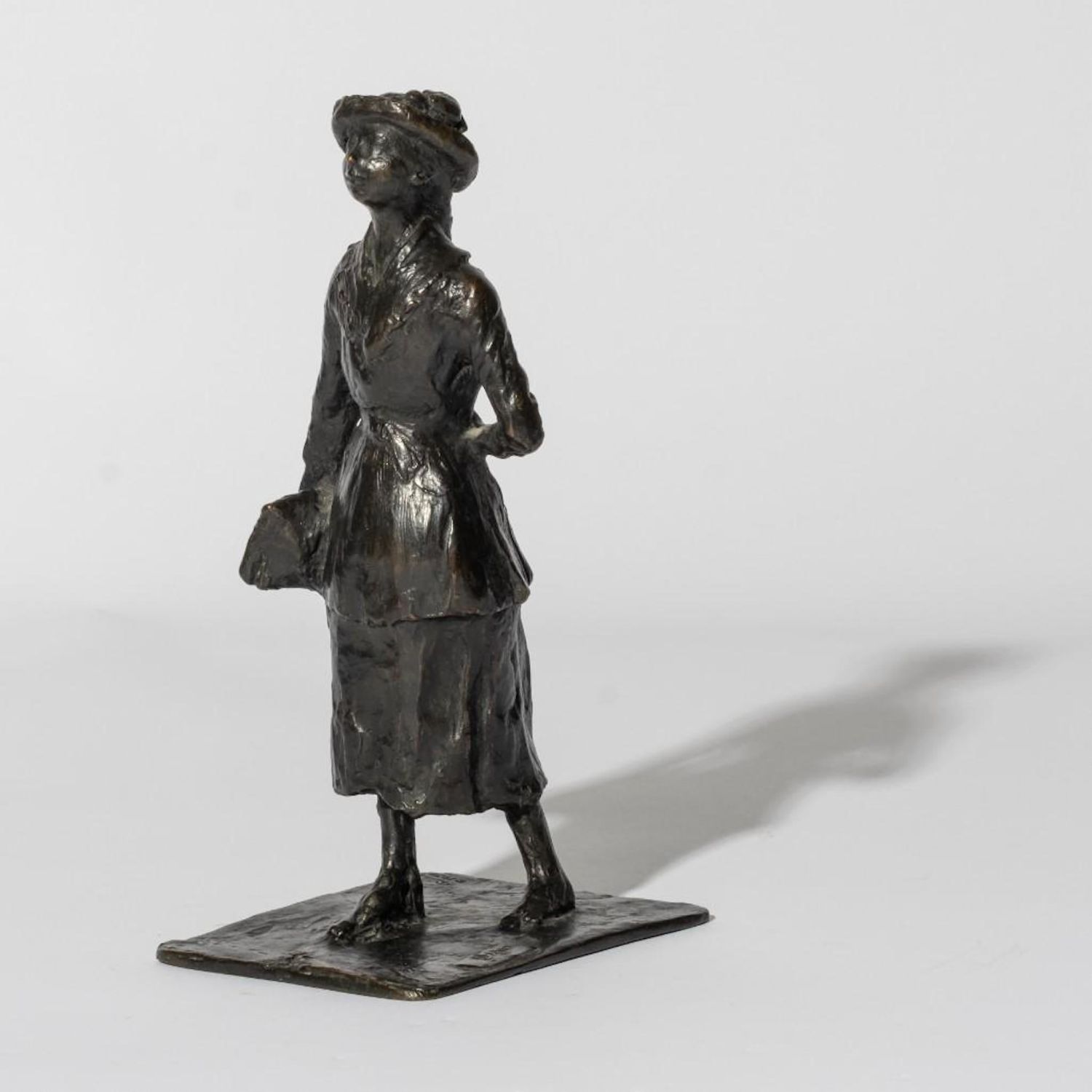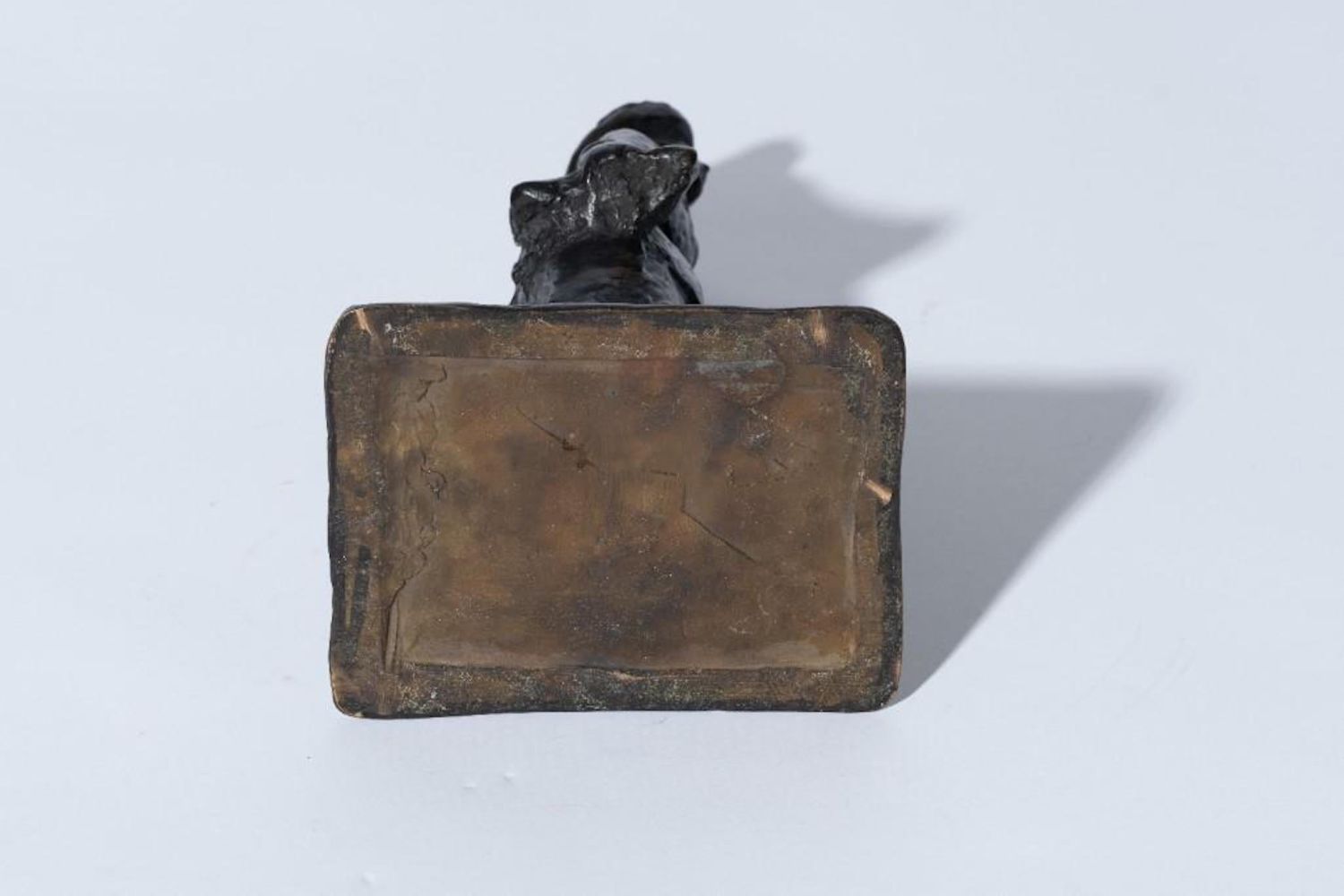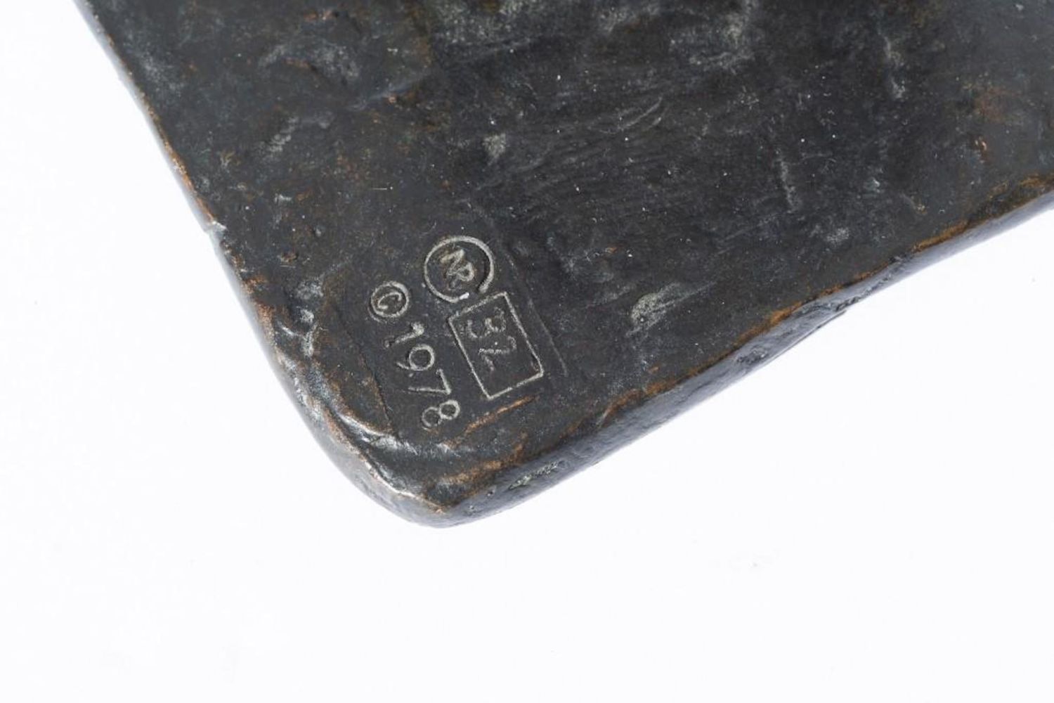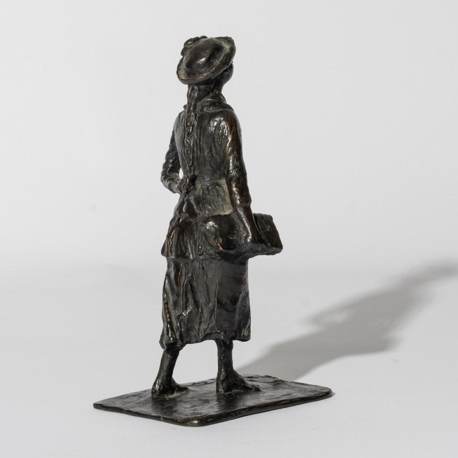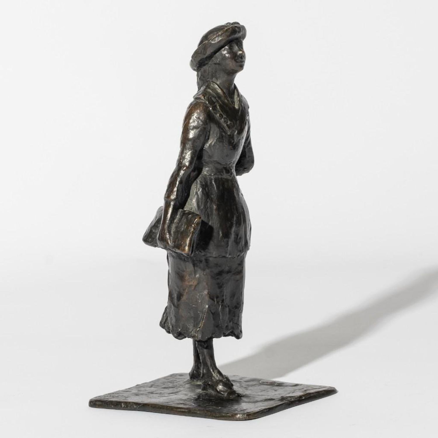 Bronze schoolgirl after Edgar Degas, from Nelson Rockefeller collection. Measures 10.25"H. The 1978 article by Sarah Booth Conroy of the Washington Post basically sums it up: ‘After a lifetime of buying art, former vice president Nelson Rockfeller is now selling it-with all the money, energy and enthusiasm he once put into building his collection. His latest enterprises include: "The Nelson Rockefeller Collection, "a select group of reproductions of art objects he plans to have reproduced on a yearly editioned basis from the originals he owns. Hugh Morrow, his spokesman, said by telephone from New York, "He could …lose a lot of money on this venture.". Rockefeller would die of a heart attack a year later in 1979 and the project was cancelled. this piece overall good condition