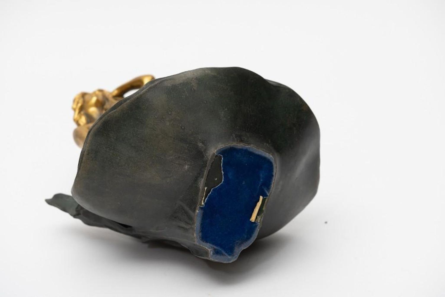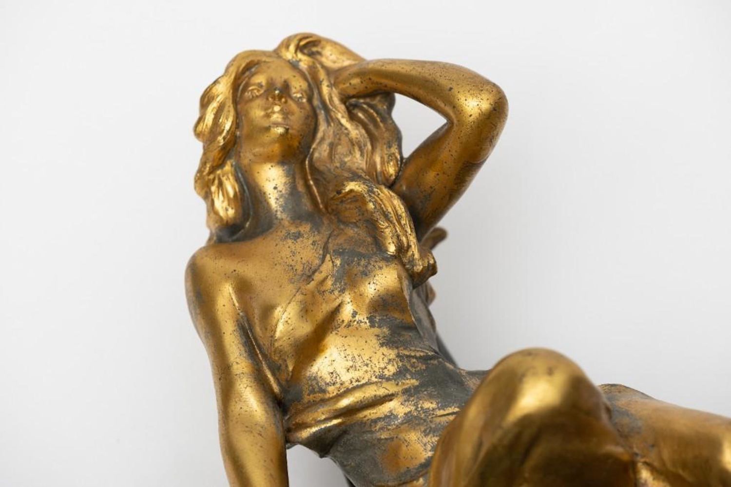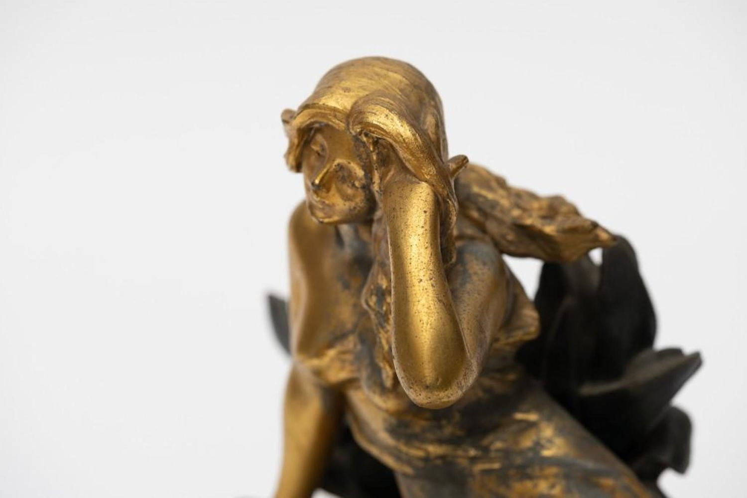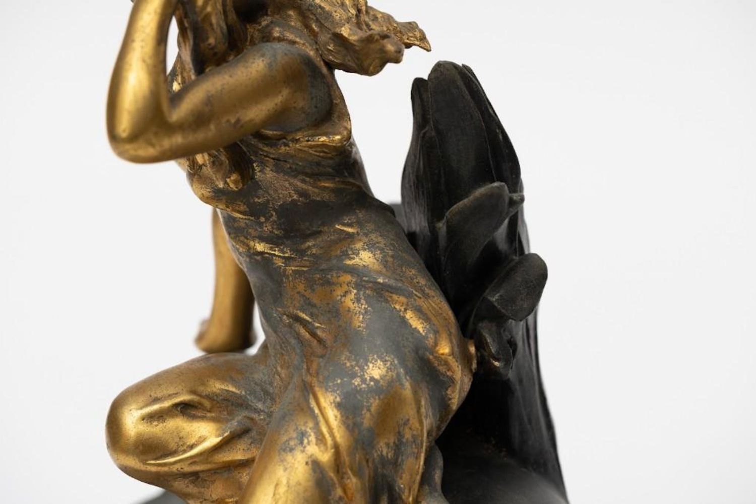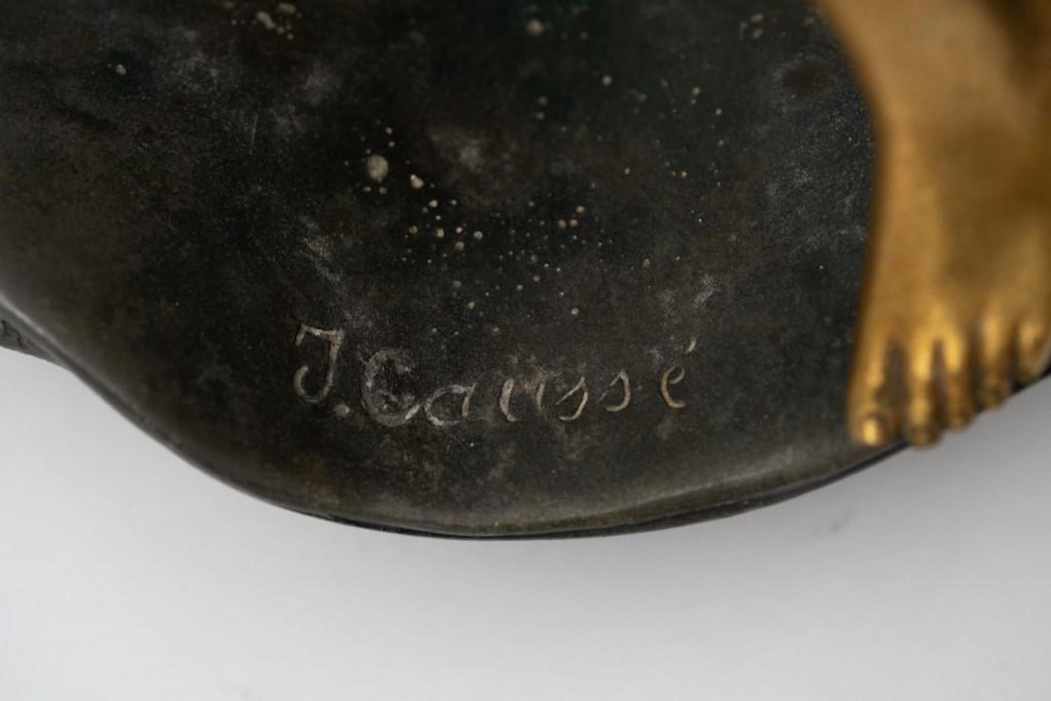 Julian Causse Signed Sculpture late 19th century, gilded nymph on a dark green finish shell with aquatic plants, marked "J. Causse" on shell, Measures 12"h x 10"W overall good condition