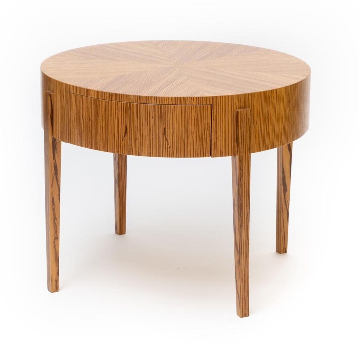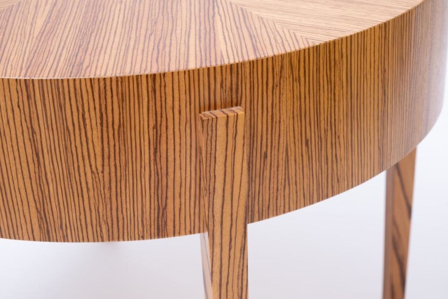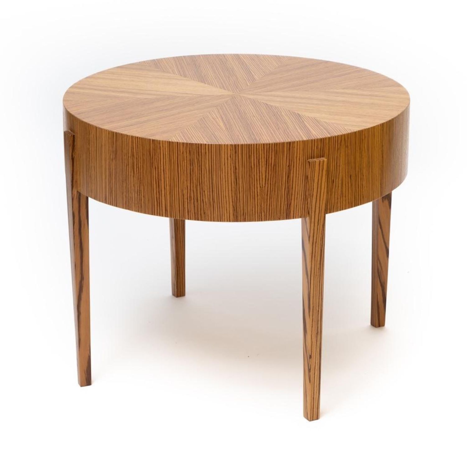 Round Zebrawood-veneer Art deco modernist design Occasional Table measures 22.5"H x 22.5"D. overall good condition
