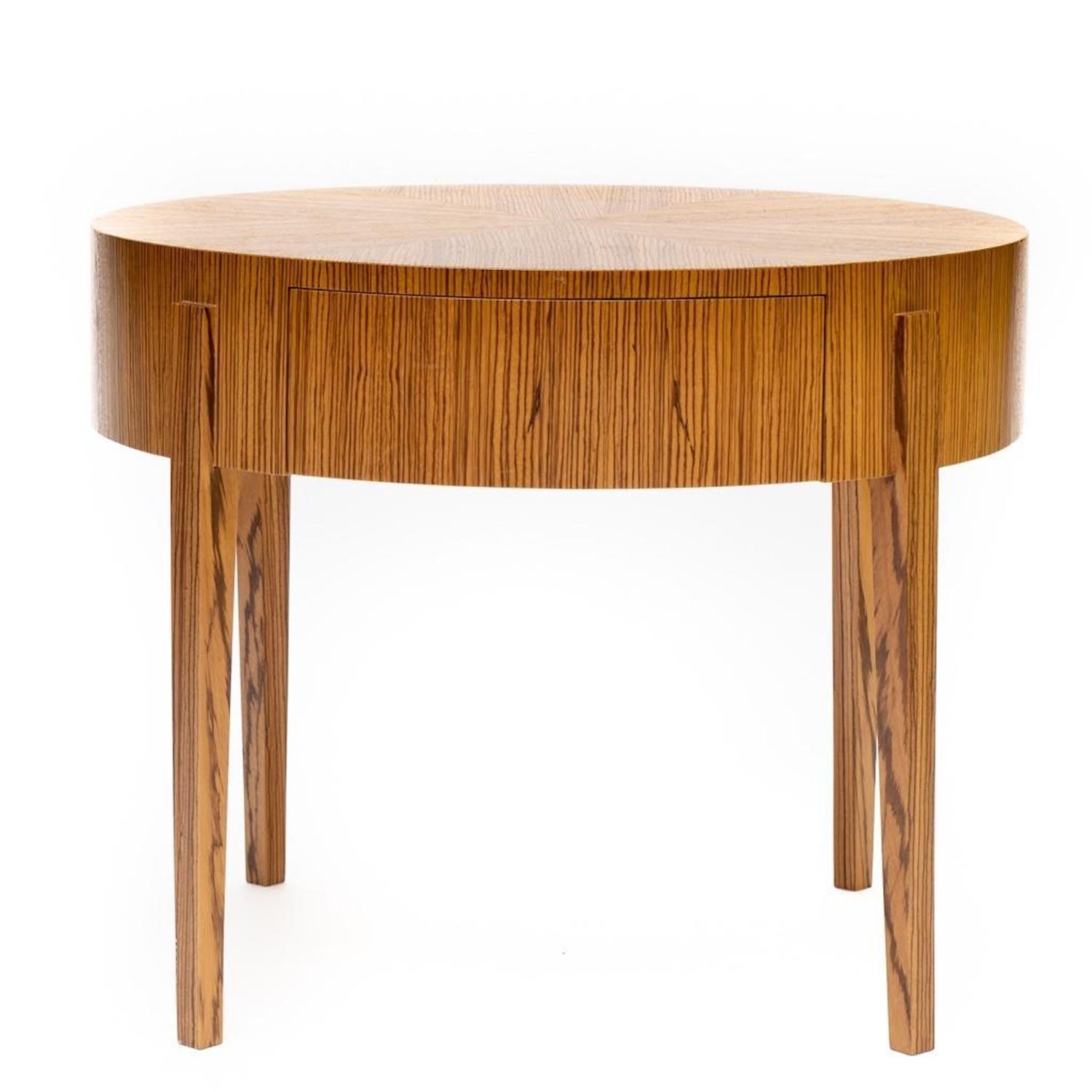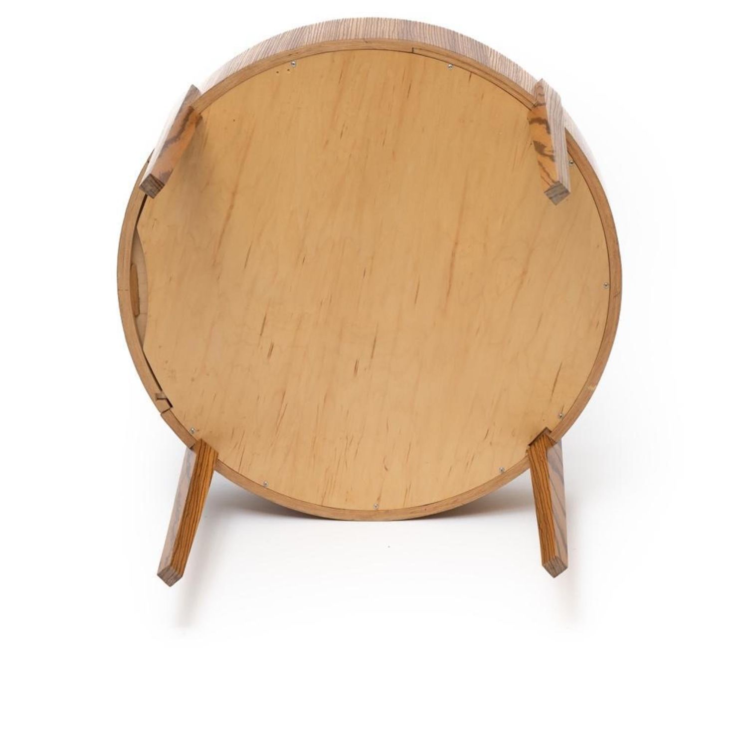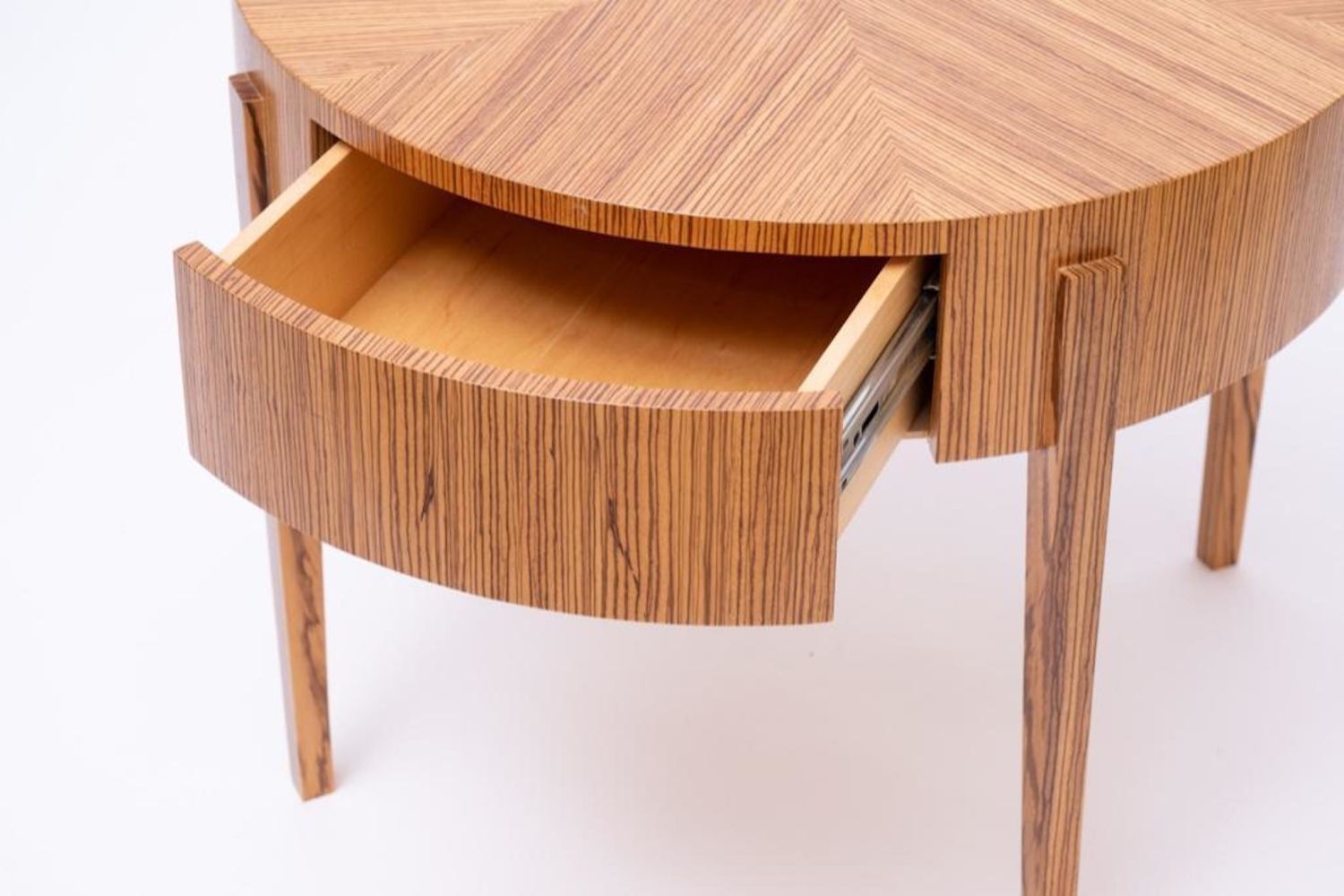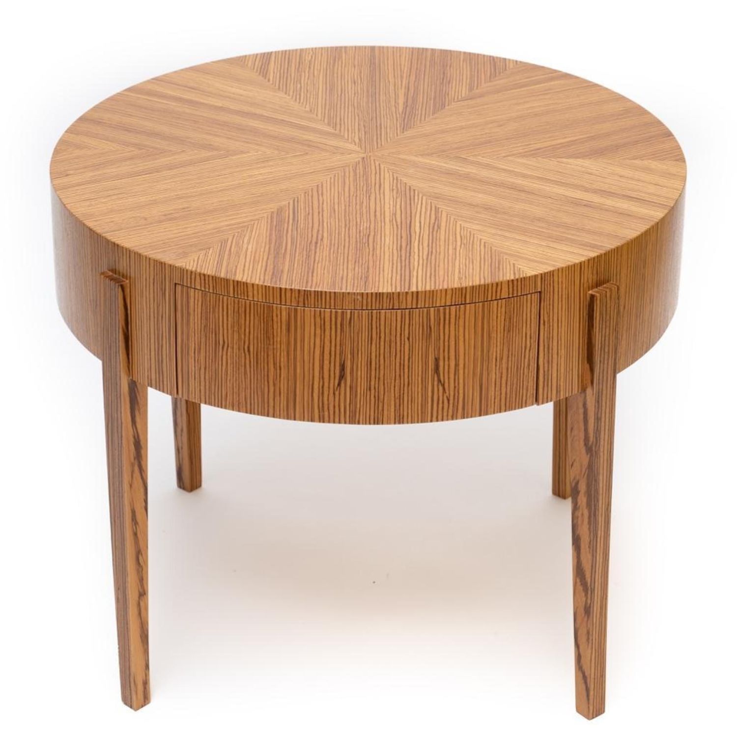 Round Zebrawood-veneer Art deco modernist design Occasional Table measures 22.5"H x 22.5"D. overall good condition