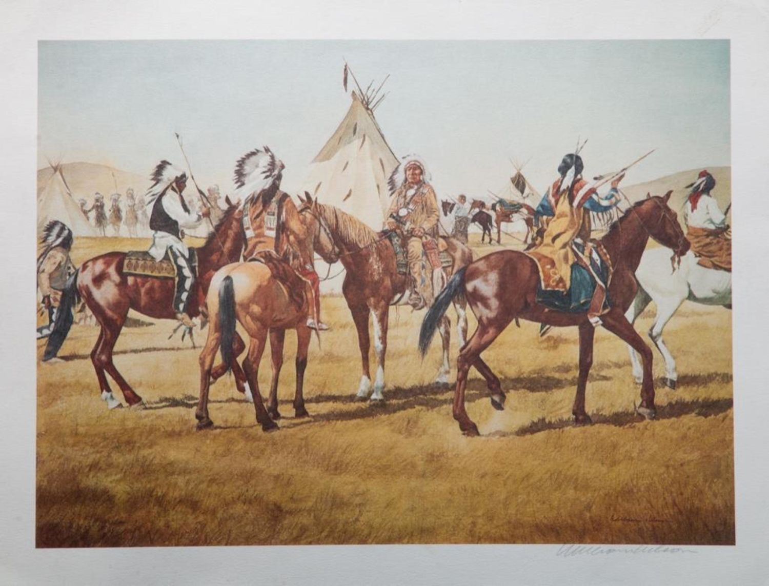 William Nelsen Pencil Signed Western Print. Measures 17" x 24". Original signed prints from the Custer Series by renowned artist William Nelson, The Battle of Little Bighorn.