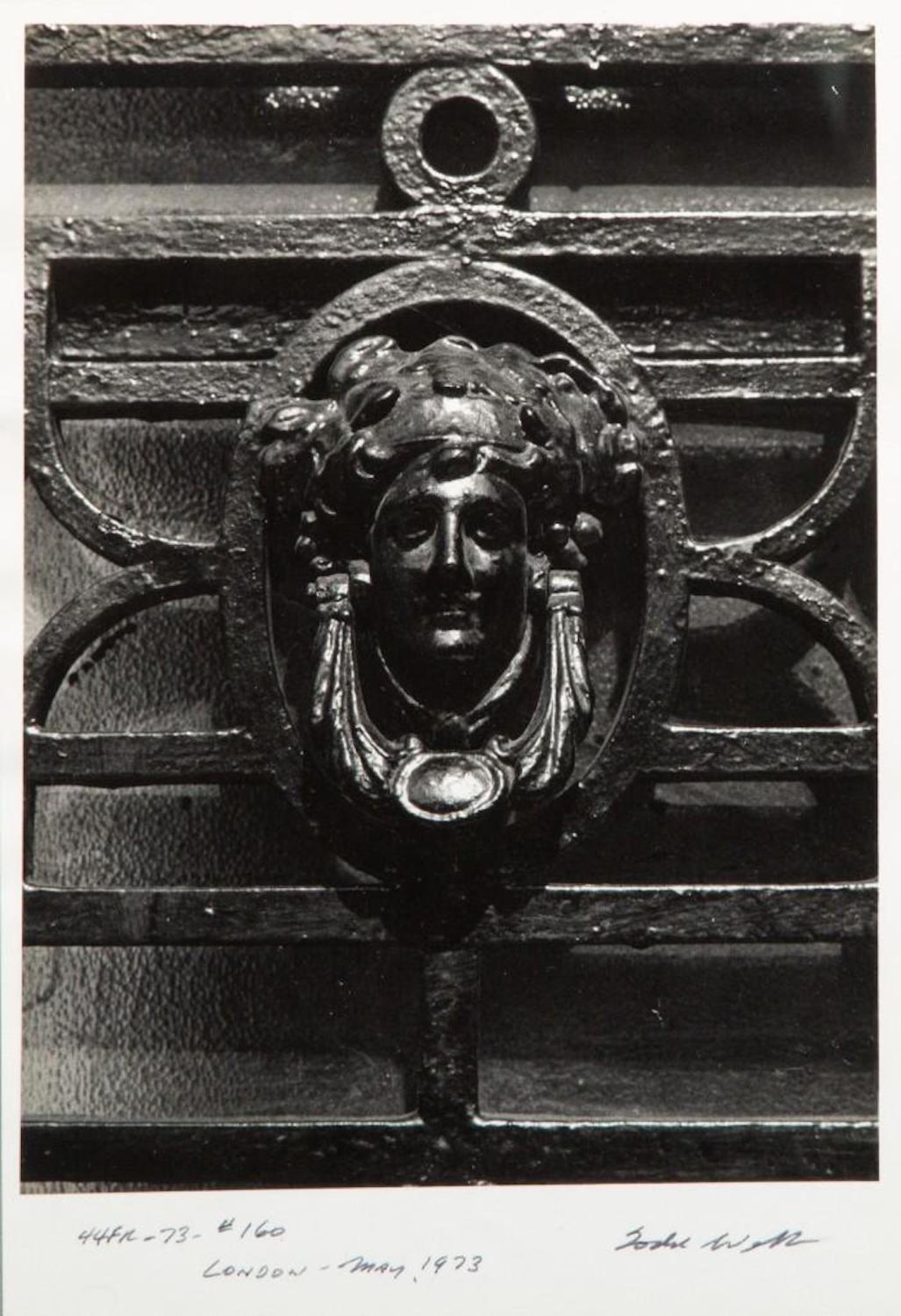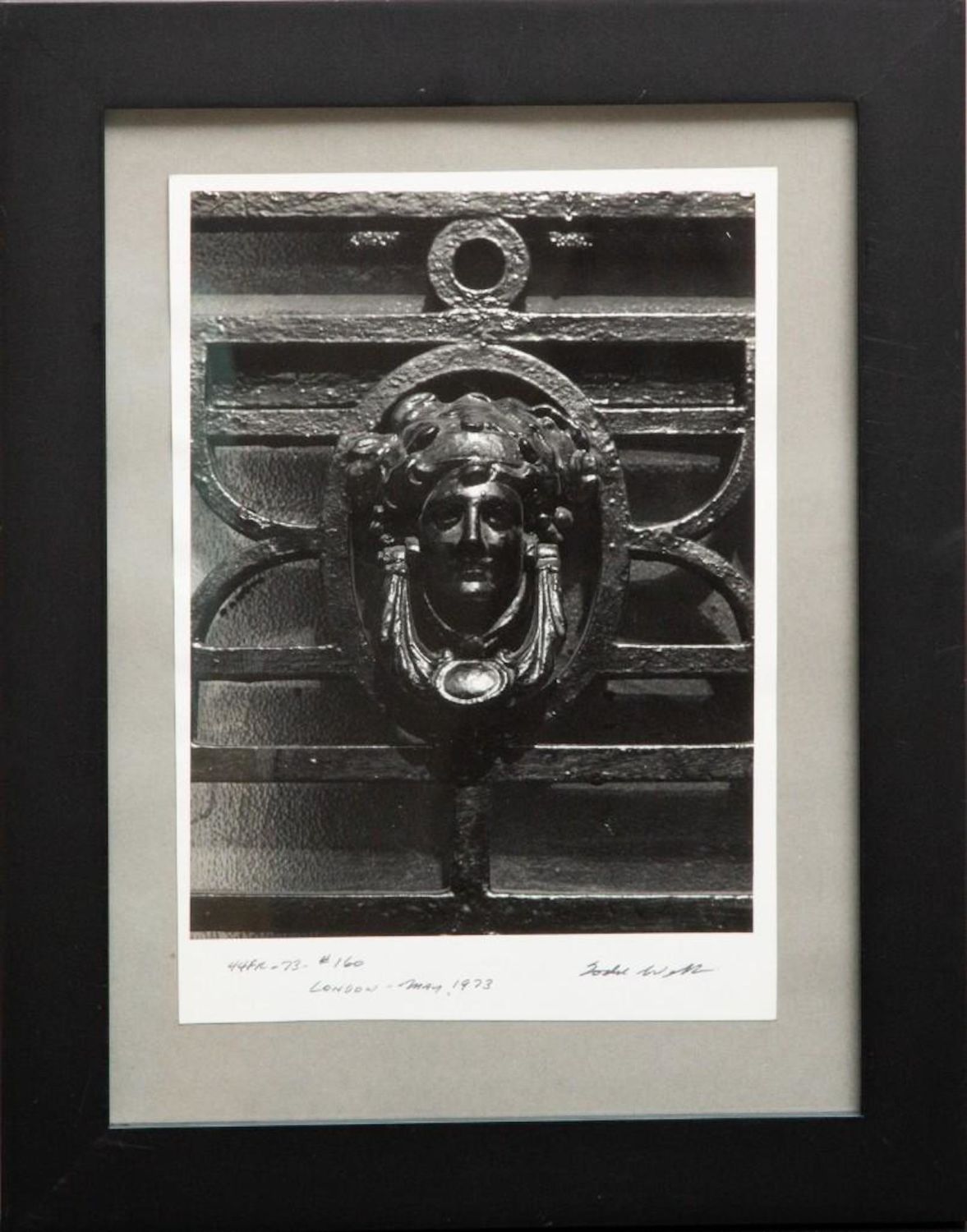 Todd Webb Photographic Gelatin Silver Print of door knocker by Todd Webb, dated 1973 7"W x 9 5/8"H Approx. Todd Webb’s photographs have been displayed in 25 major museum collections including the MOMA in New York, and the National Gallery of Art in Washington, D.C.[1] Webb’s photographic archive is located in Portland, Maine, where reproduction rights and sales of his prints are managed.In 2006, the Hallmark Greeting Cards Corporation acquired at least 161 of Webb’s photographs, and in 2006 decided to give them away in a generous donation to the Nelson-Atkins Museum in Kansas City.[19]In 2017, the Todd Webb Archive refurbished its website with biographical data, collection information, and a column regarding news events. In April 2017, an exhibition titled "A City Seen" opened at the Museum of the City of New York. Curated by Sean Corcoran, the exhibit was a comprehensive survey of Webb’s work in New York during the 1940s. In conjunction with the show, the book I See a City: Todd Webb’s New York, Thames & Hudson, 2017His estate is managed by Betsy Evans Hunt who serves as the Executive Director of the Todd Webb Archive.