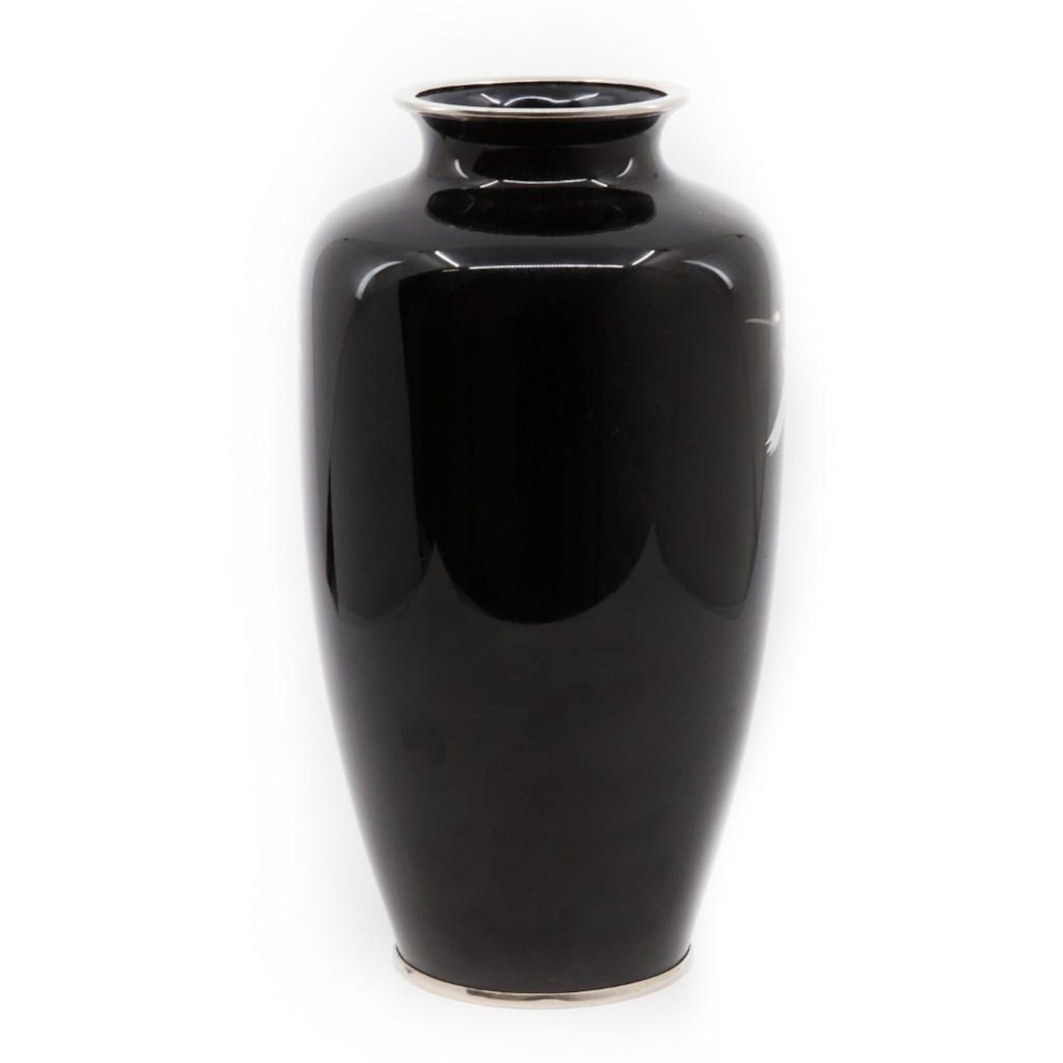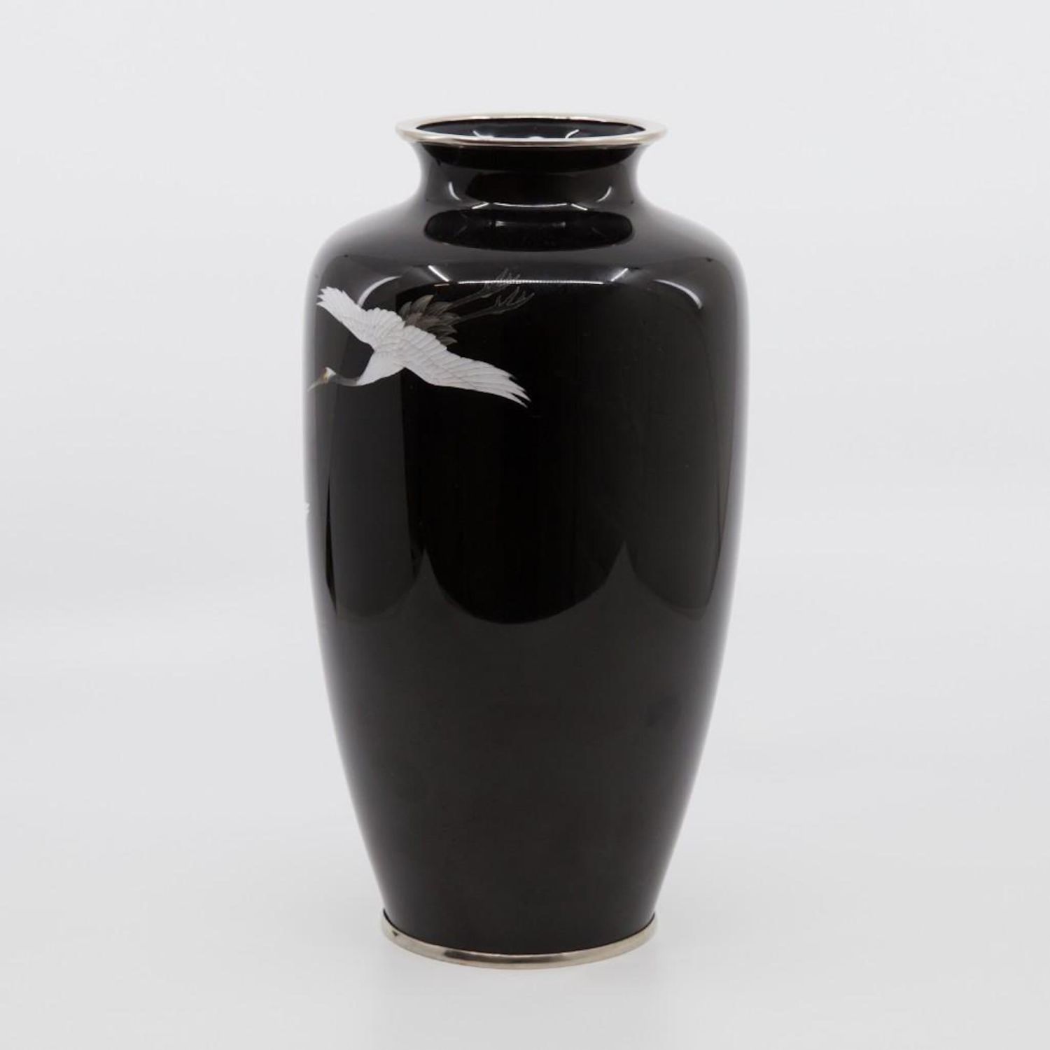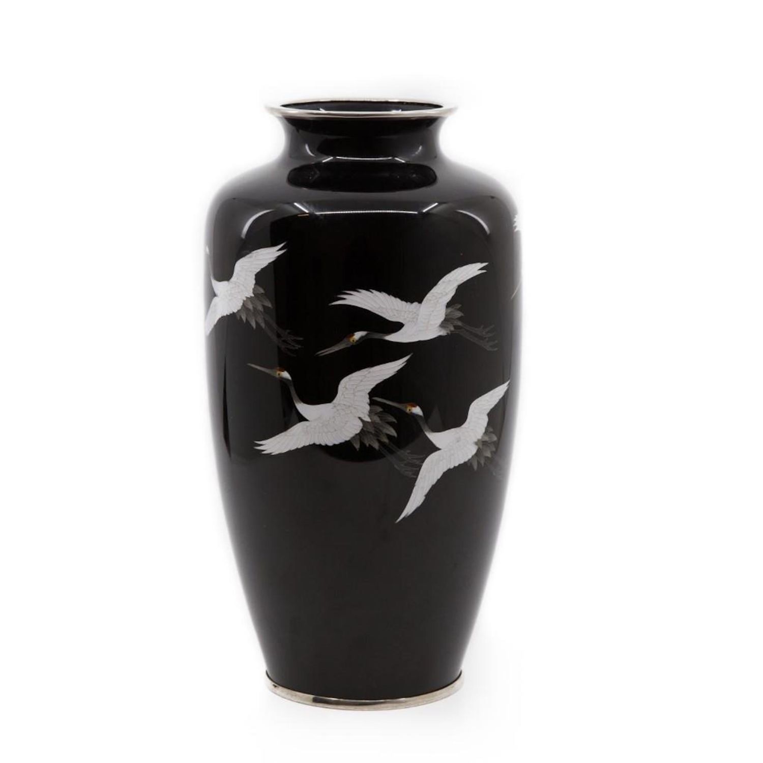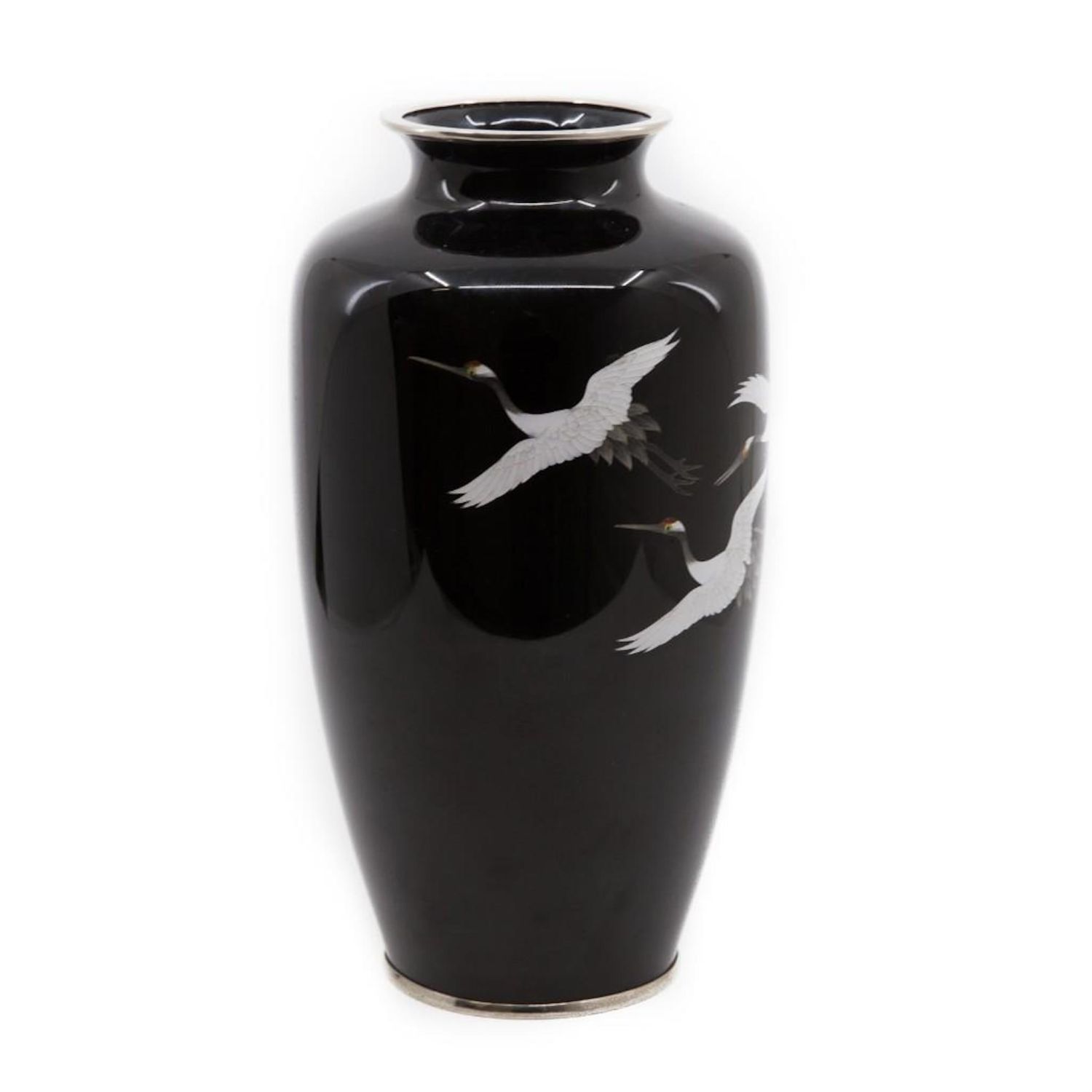 Circa 1900 Japanese Meiji period cloisonne vase with flying cranes 10" approx. Excellent condition.