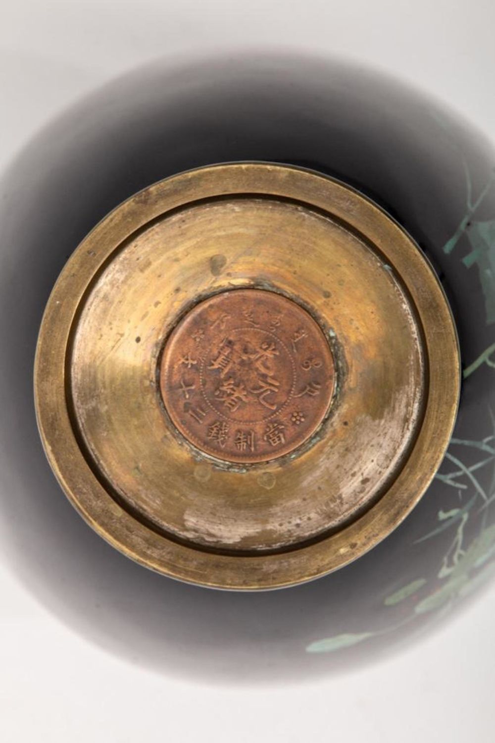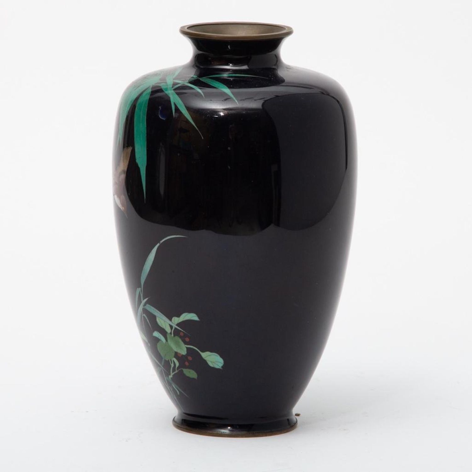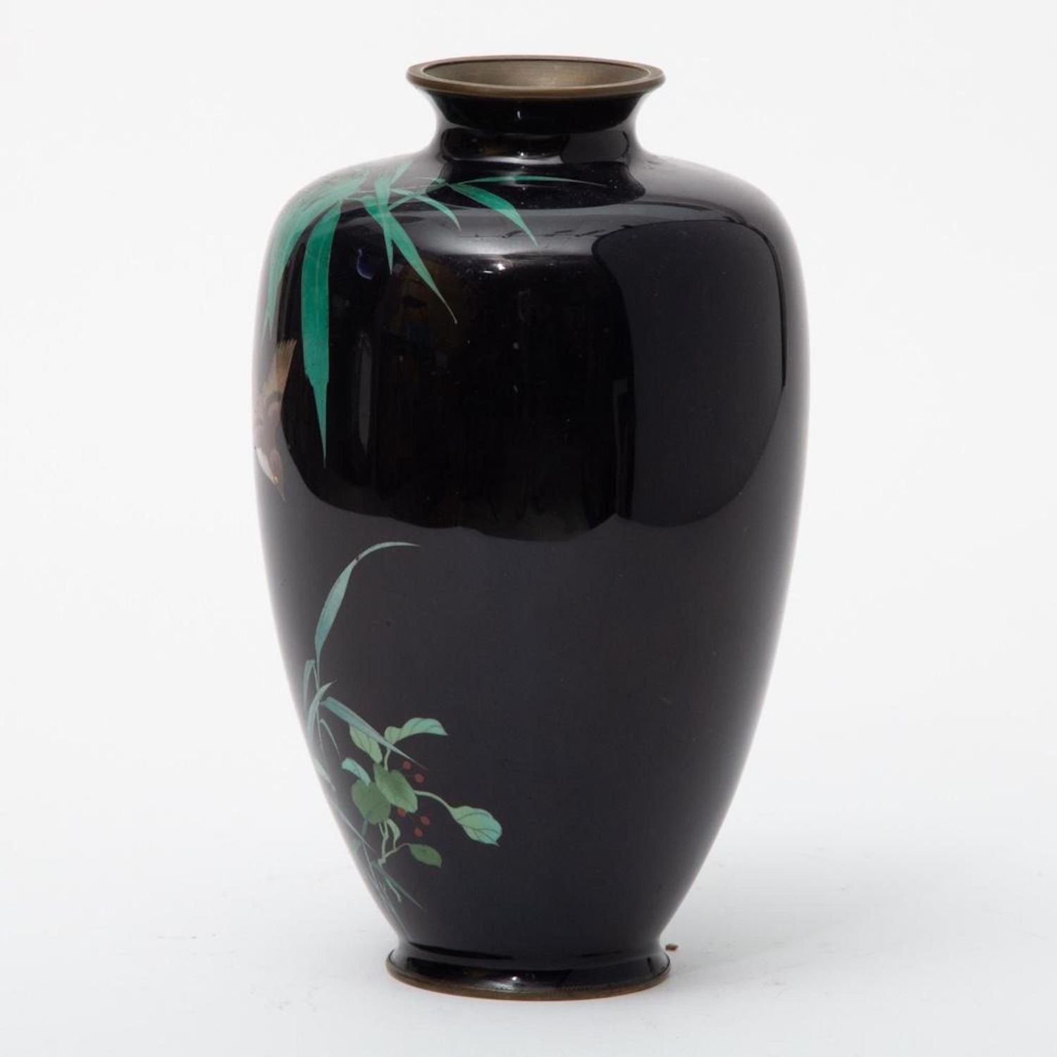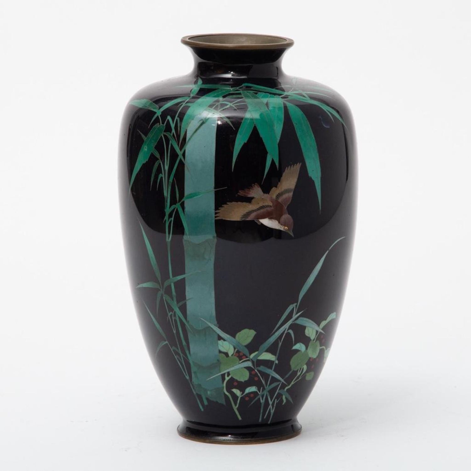 Meiji Signed Japanese Cloisonne with bird and bamboo motif. Measures 10"H
