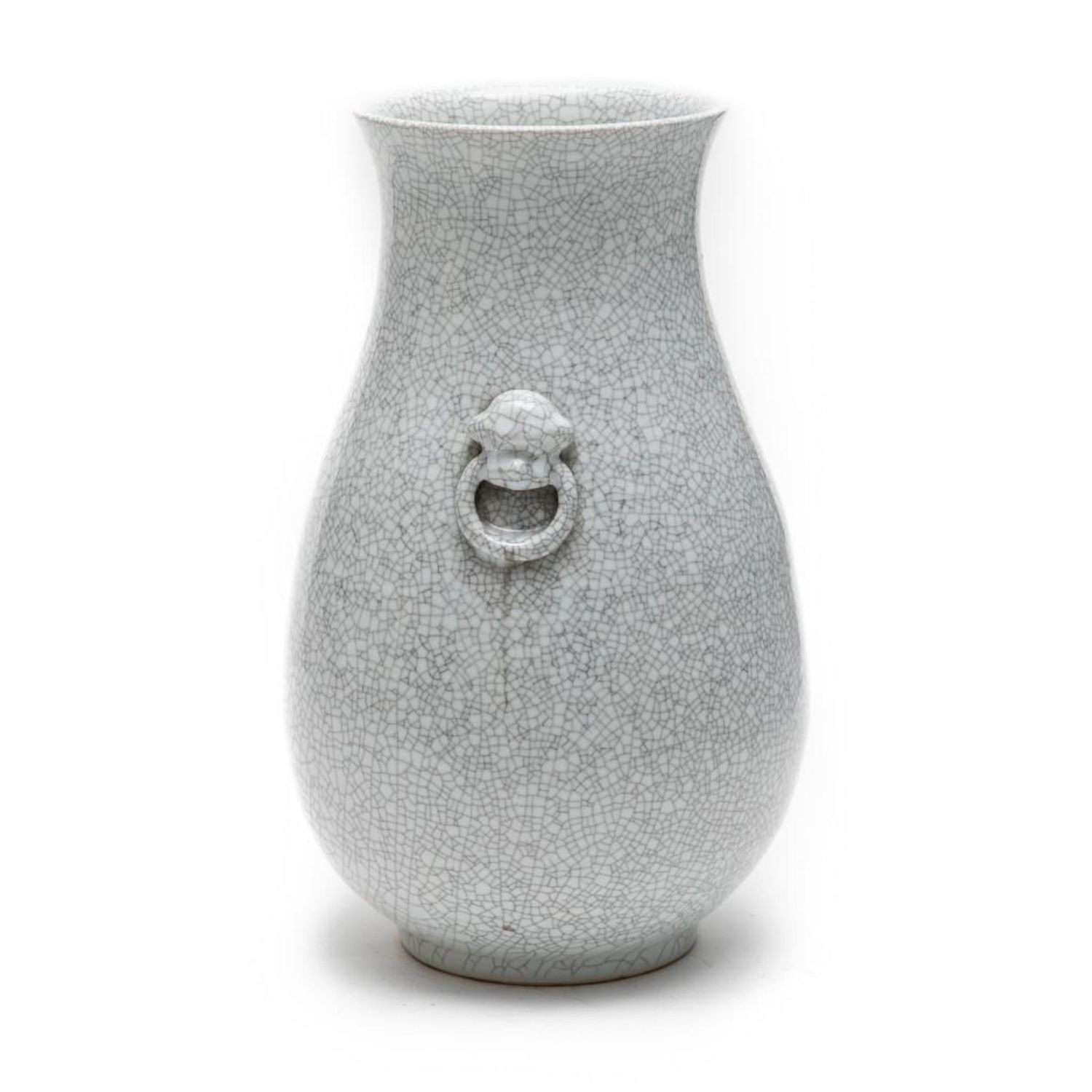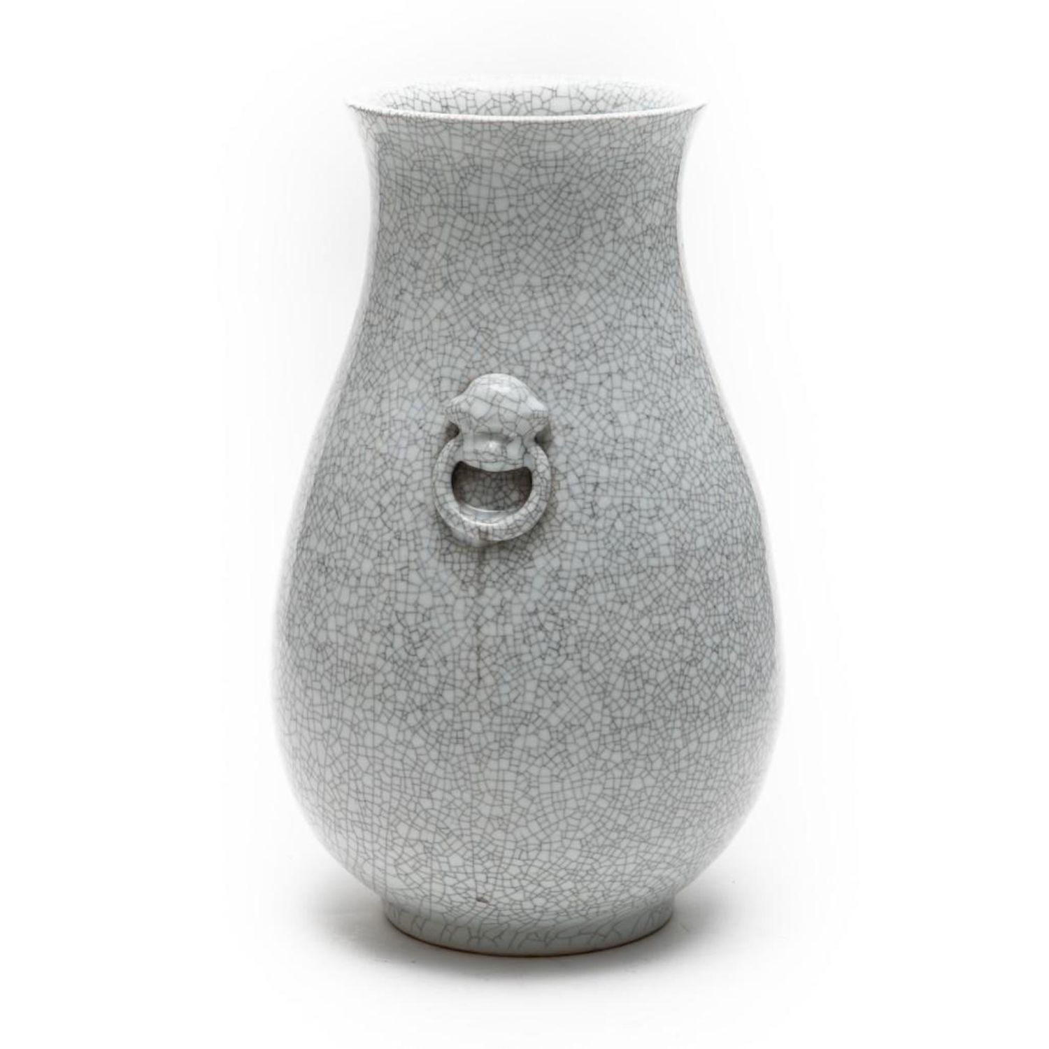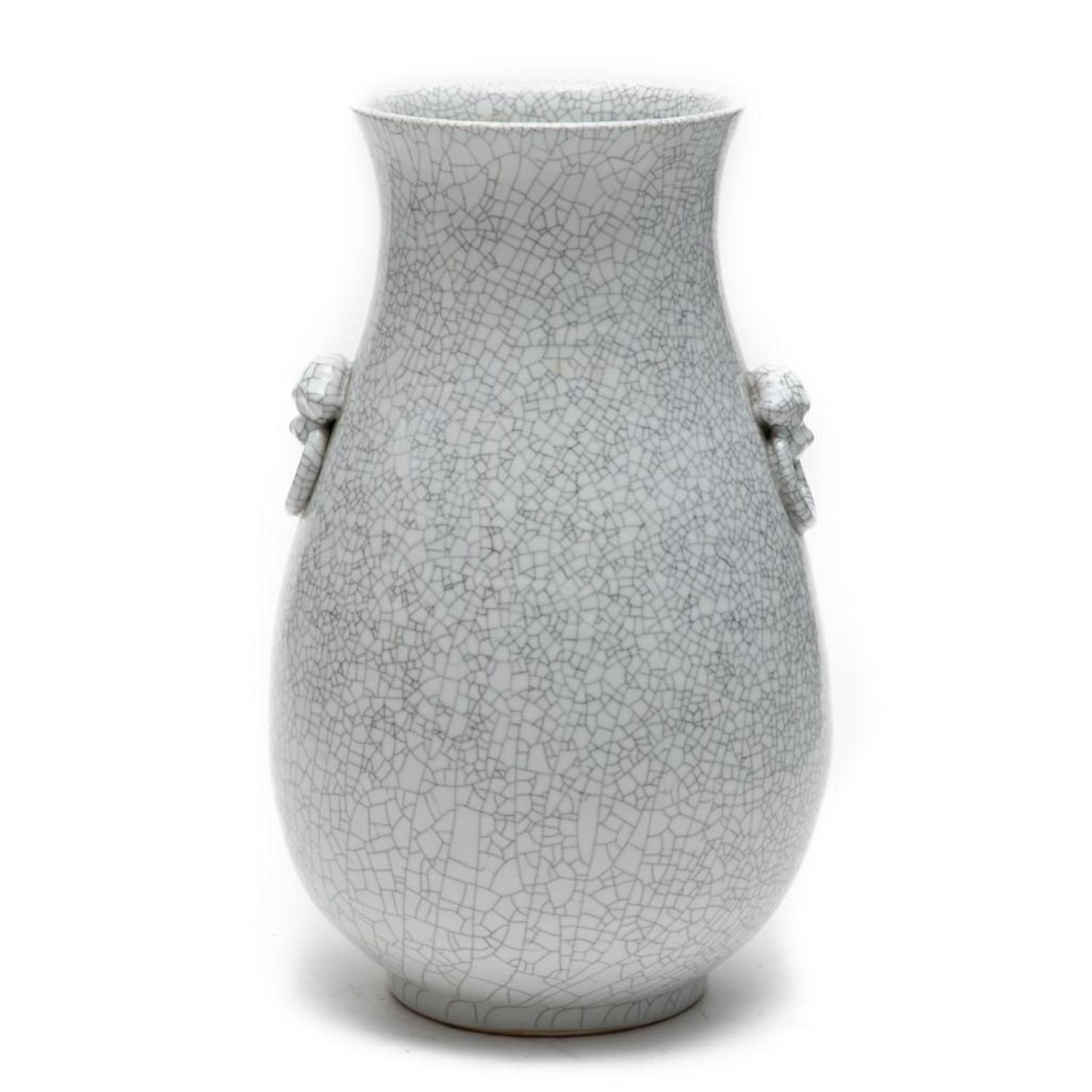 Vintage old tall Chinese crackle glazed hu form vase; 18 1/2" x 12" (approx.) Dating Chinese porcelain is beyond our skill set. overall good condition