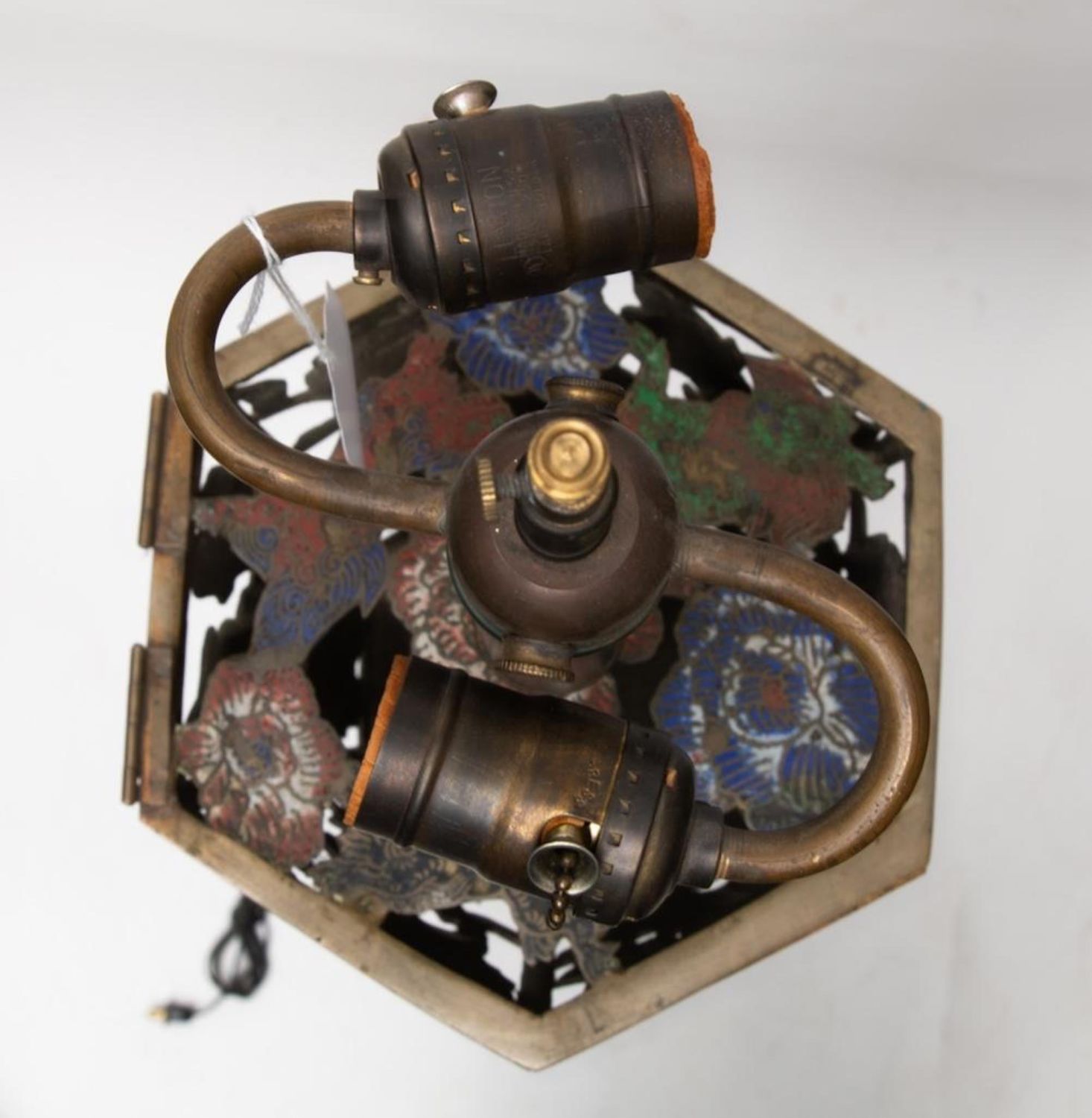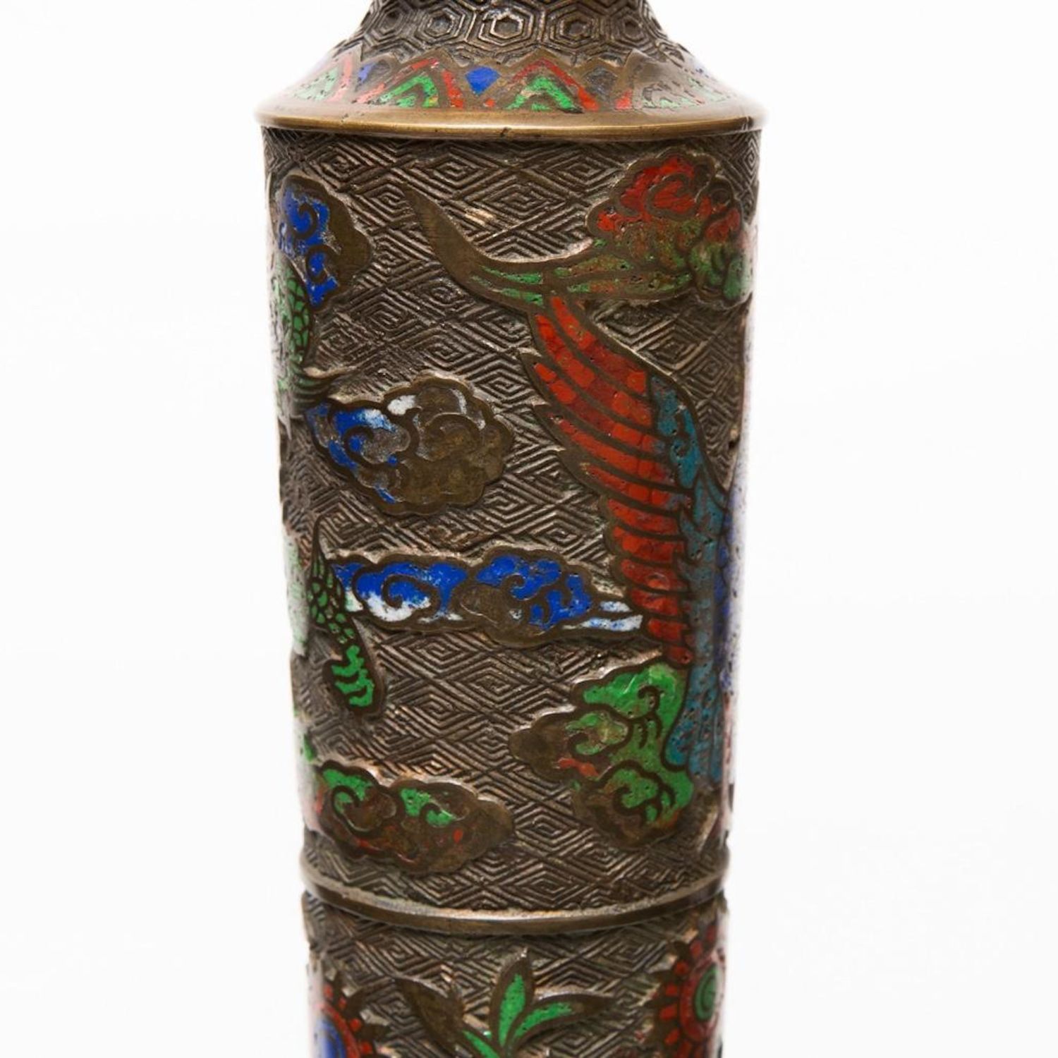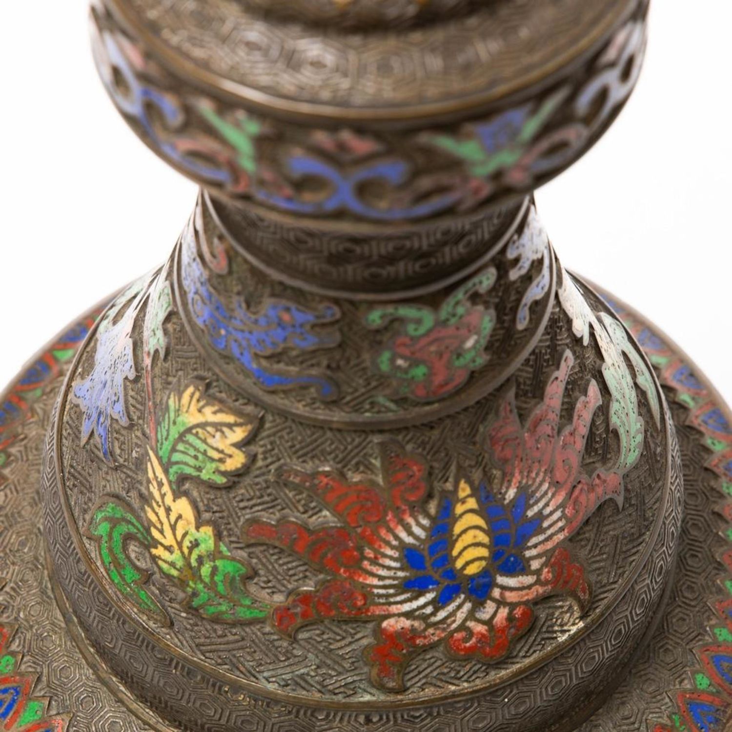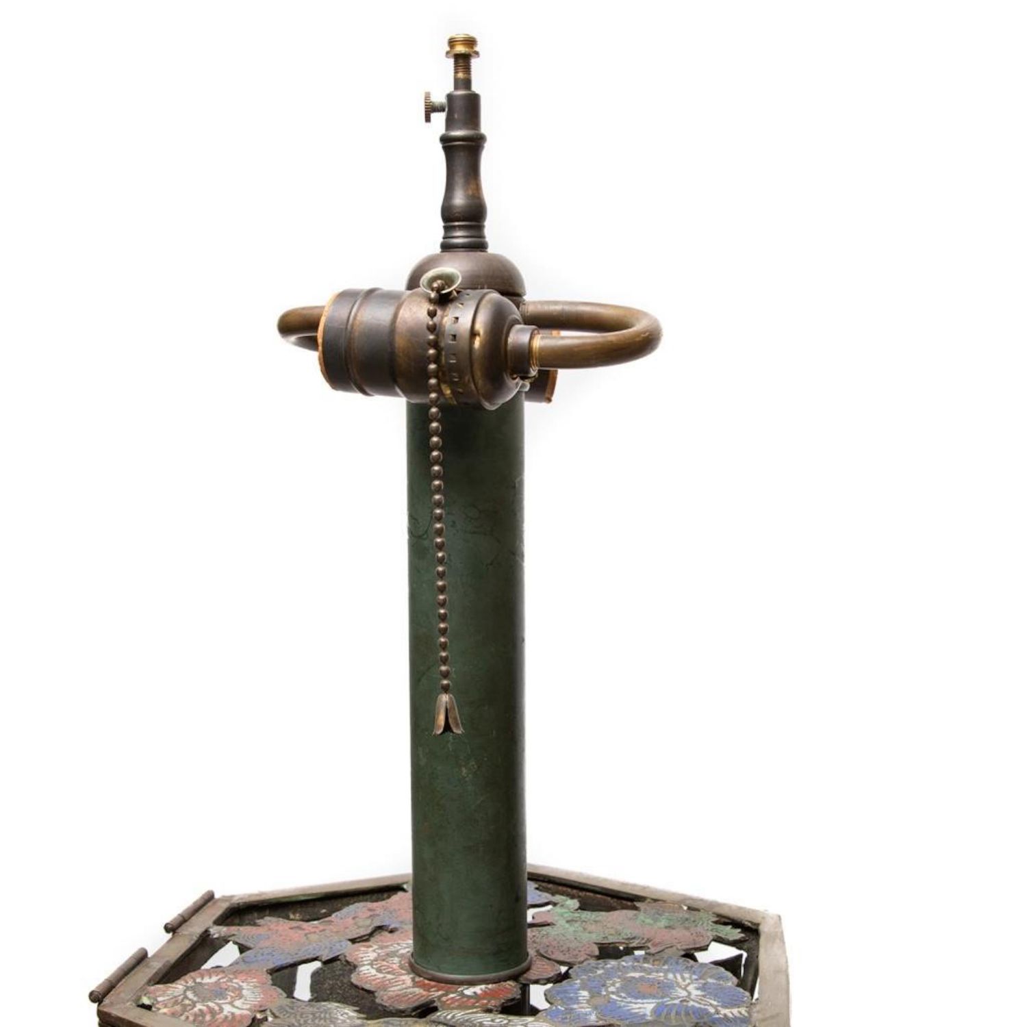 Asian Chinese Cloisonne floor lamp. Circa 1940. 60 3/4" h x 10 3/4" diameter. Good condition overall but there is a crack in the metal. Please refer to photos. It does not move and it is not loose.