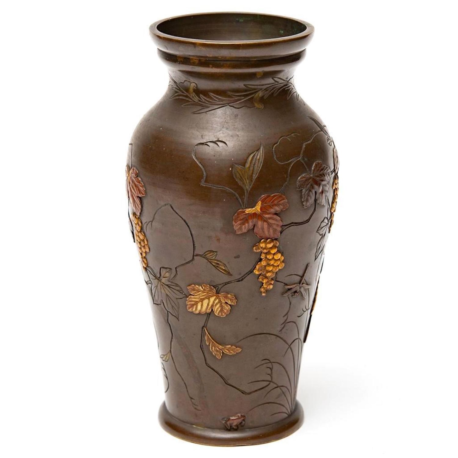 Meiji Asian Japanese multi metal vase. Late 19th century good quality. Measures 4.0" W x 8.5" H x 4.0" D approx. overall good condition