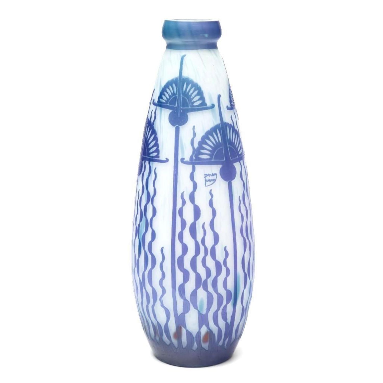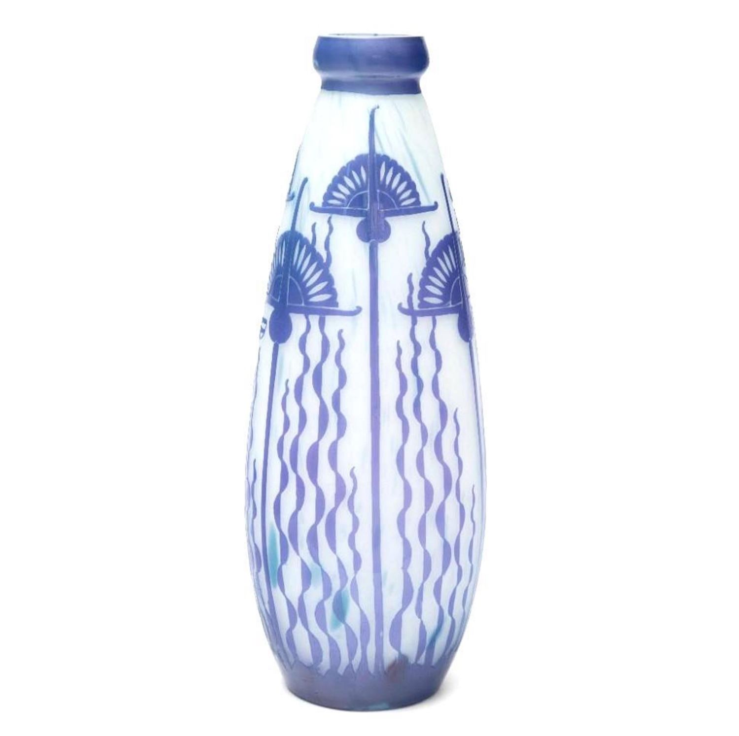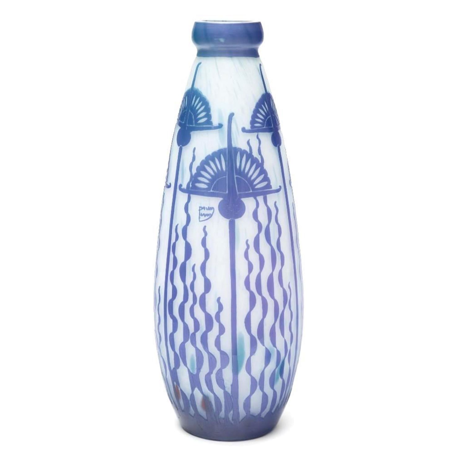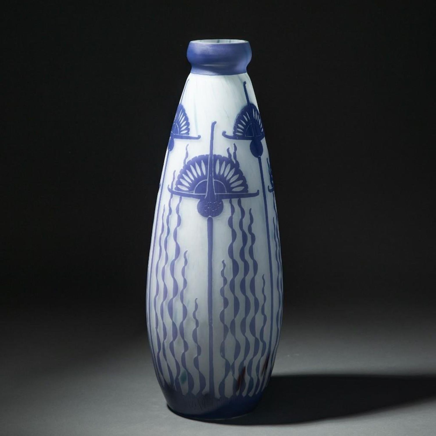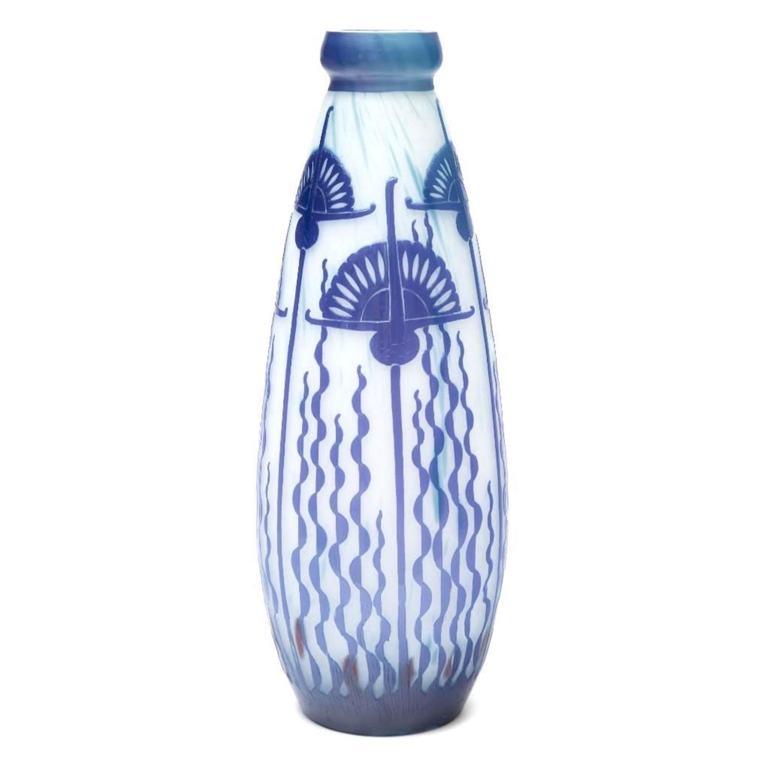 Daum Nancy Impressive tall egyptian revival Art Deco cameo glass vase, signed Daum Nancy depicting Egyptian Papyrus flowers. 22.5"H good condition