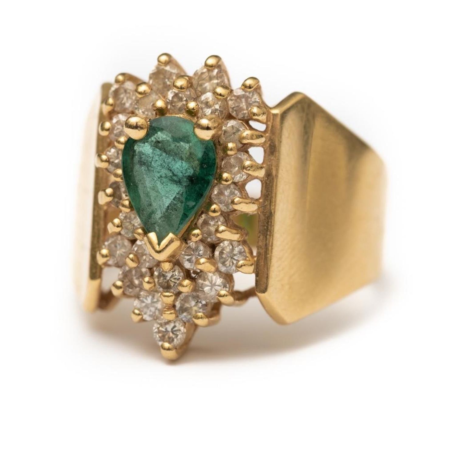 14K Gold and emerald ring with diamonds 7 " 4.4 dwt. This lot is accompanied by a GIA appraiser letter from an independent and well respected firm established over 75 years ago. overall good condition