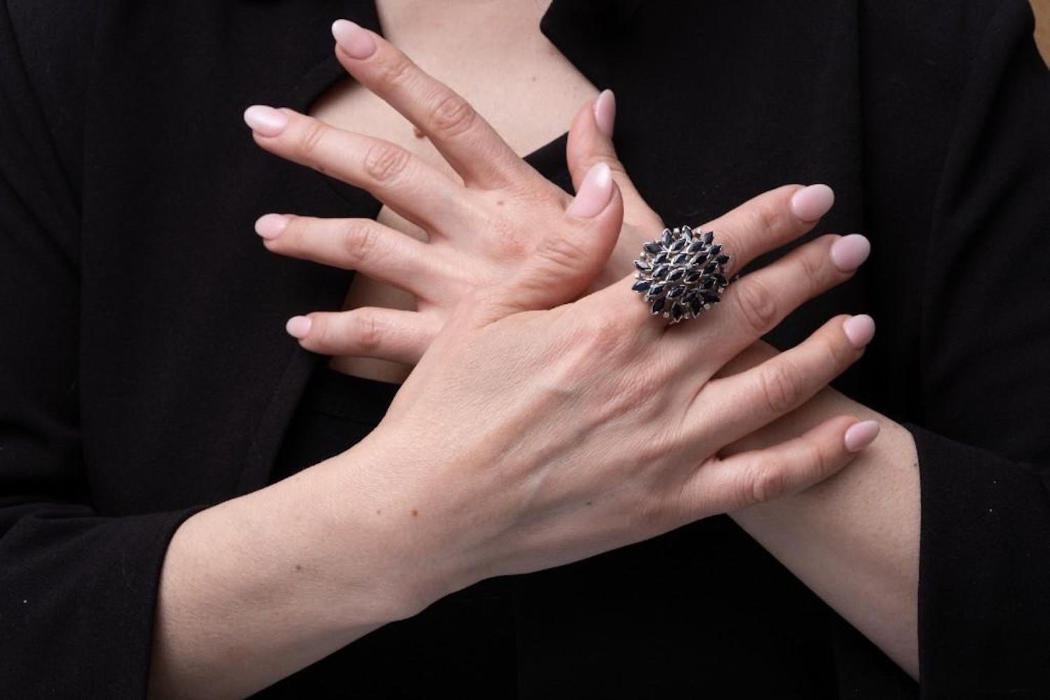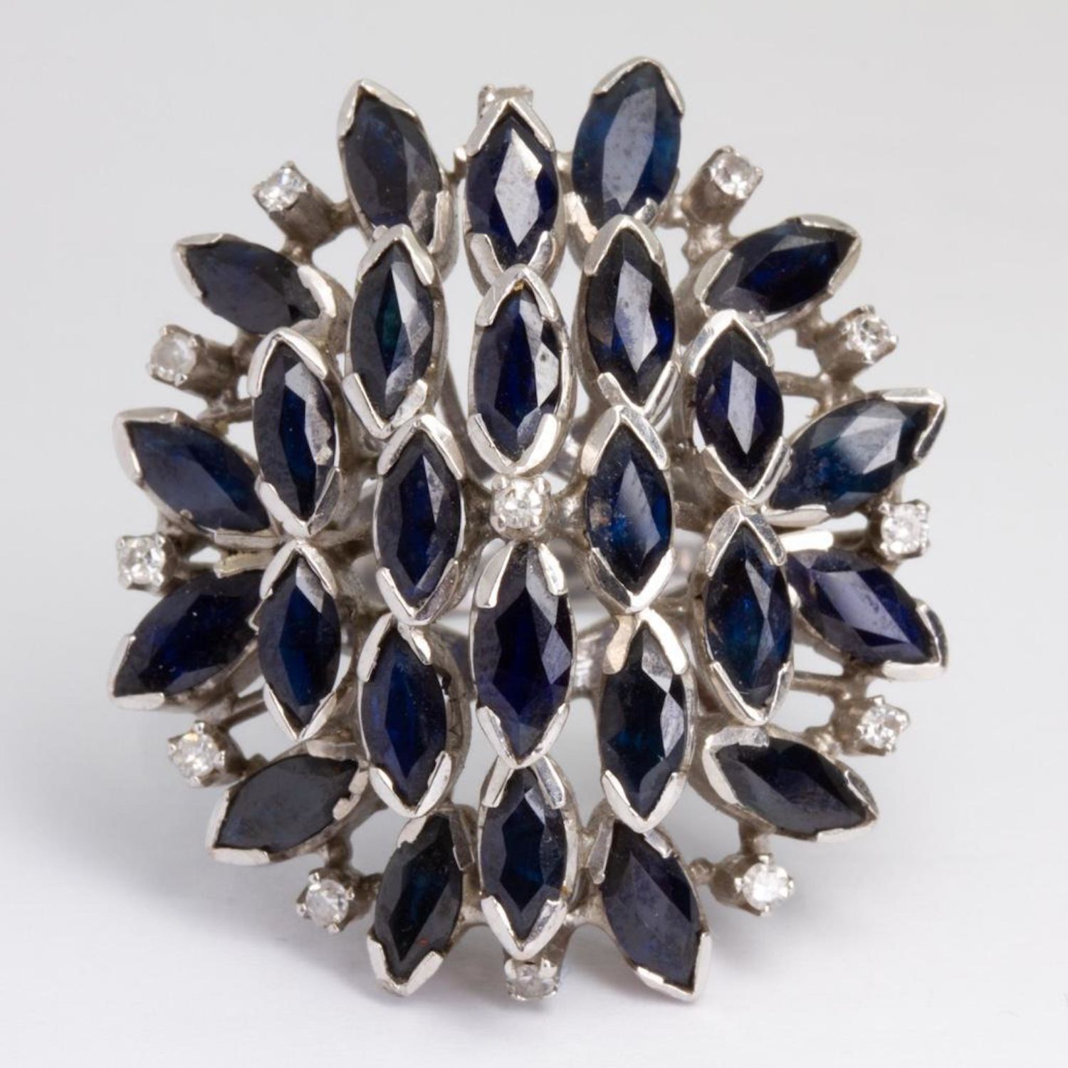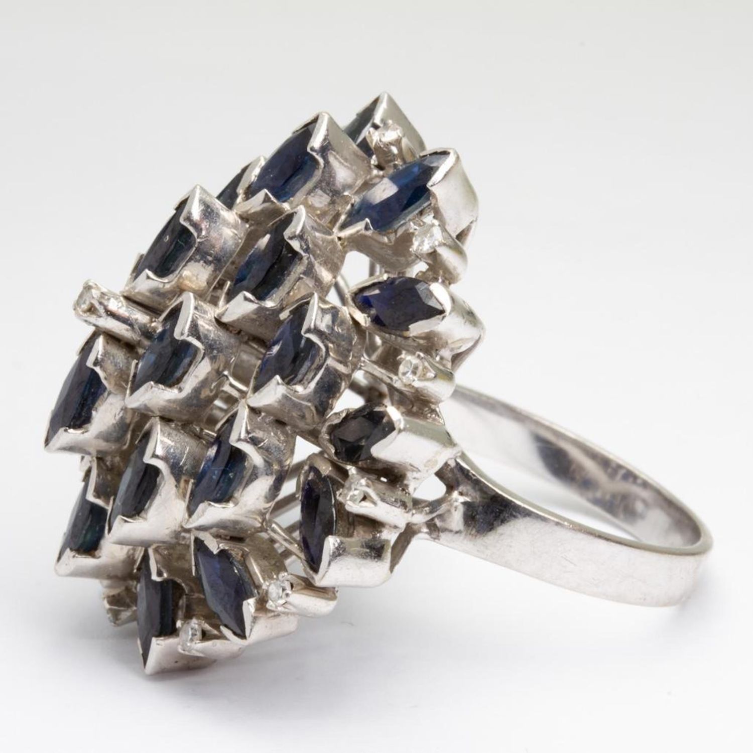 18k white gold and sapphire and diamond (13) cluster ring s8. Weighs 8.2dwt This lot is accompanied by a GIA appraiser letter from an independent and well respected firm established over 75 years ago. overall good condition