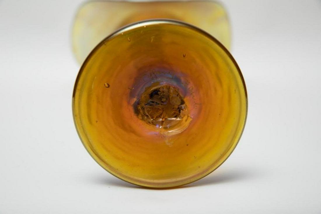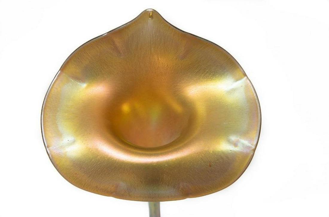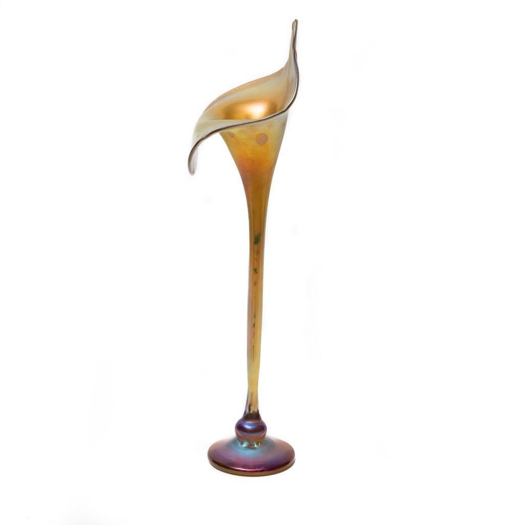 Large Iridescent Jack-in-the-Pulpit Art Nouveau blown glass Vase, 20th century, incised mark "LC Tiffany-Favrile, " ht. 19 1/2 in. . good condition