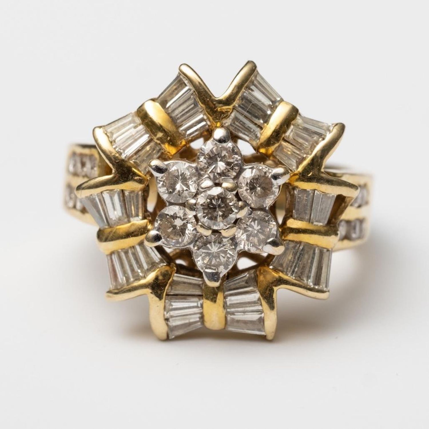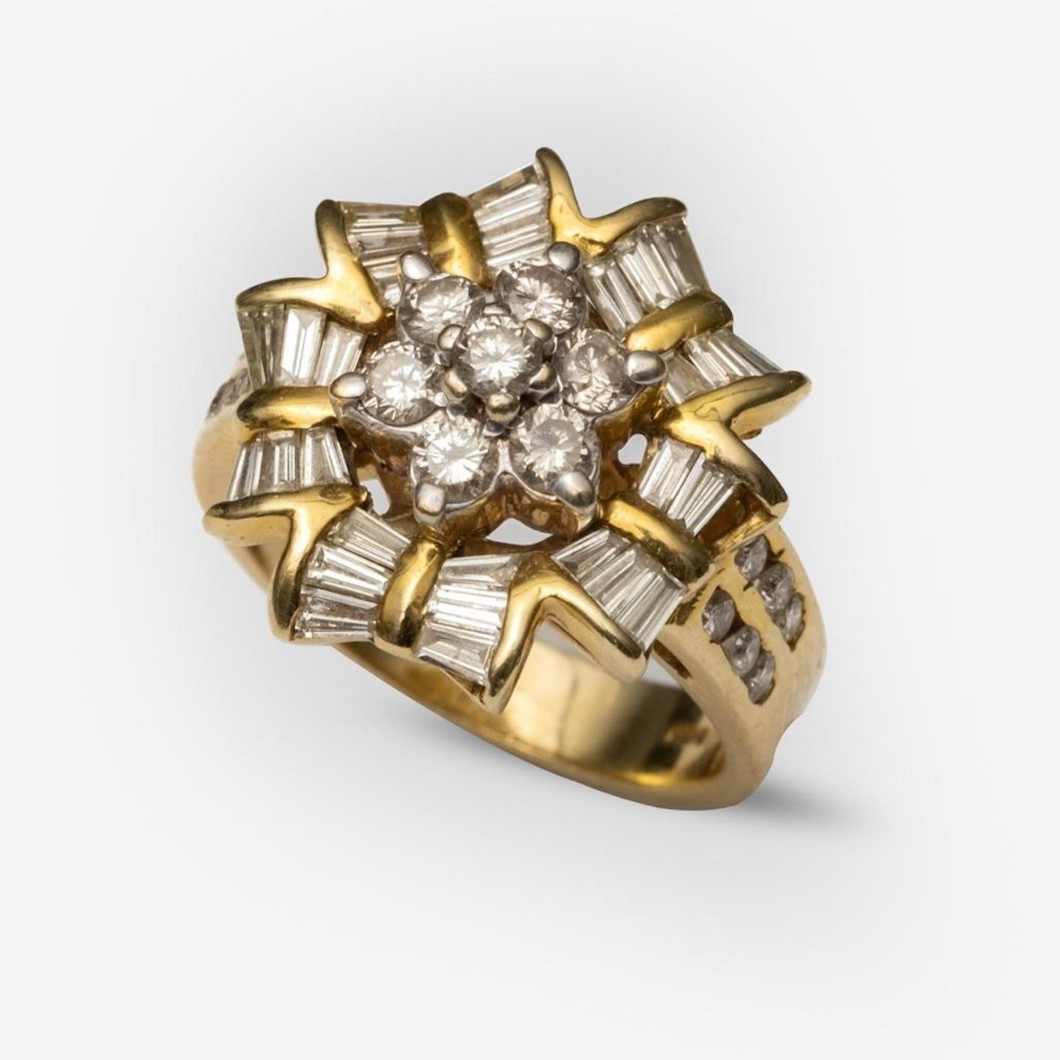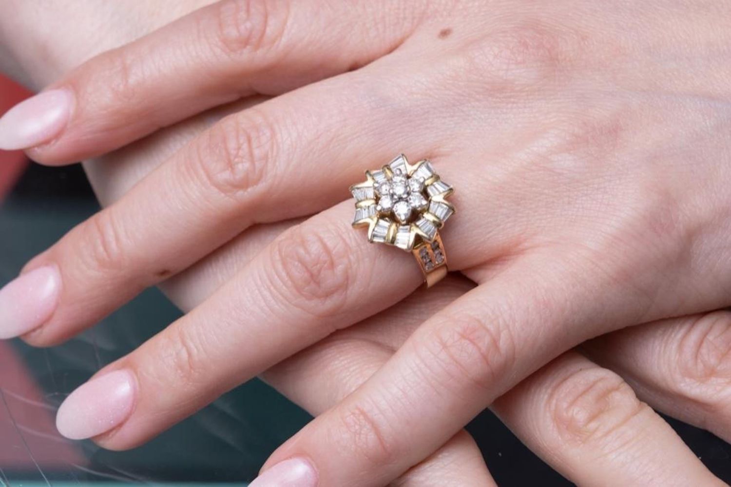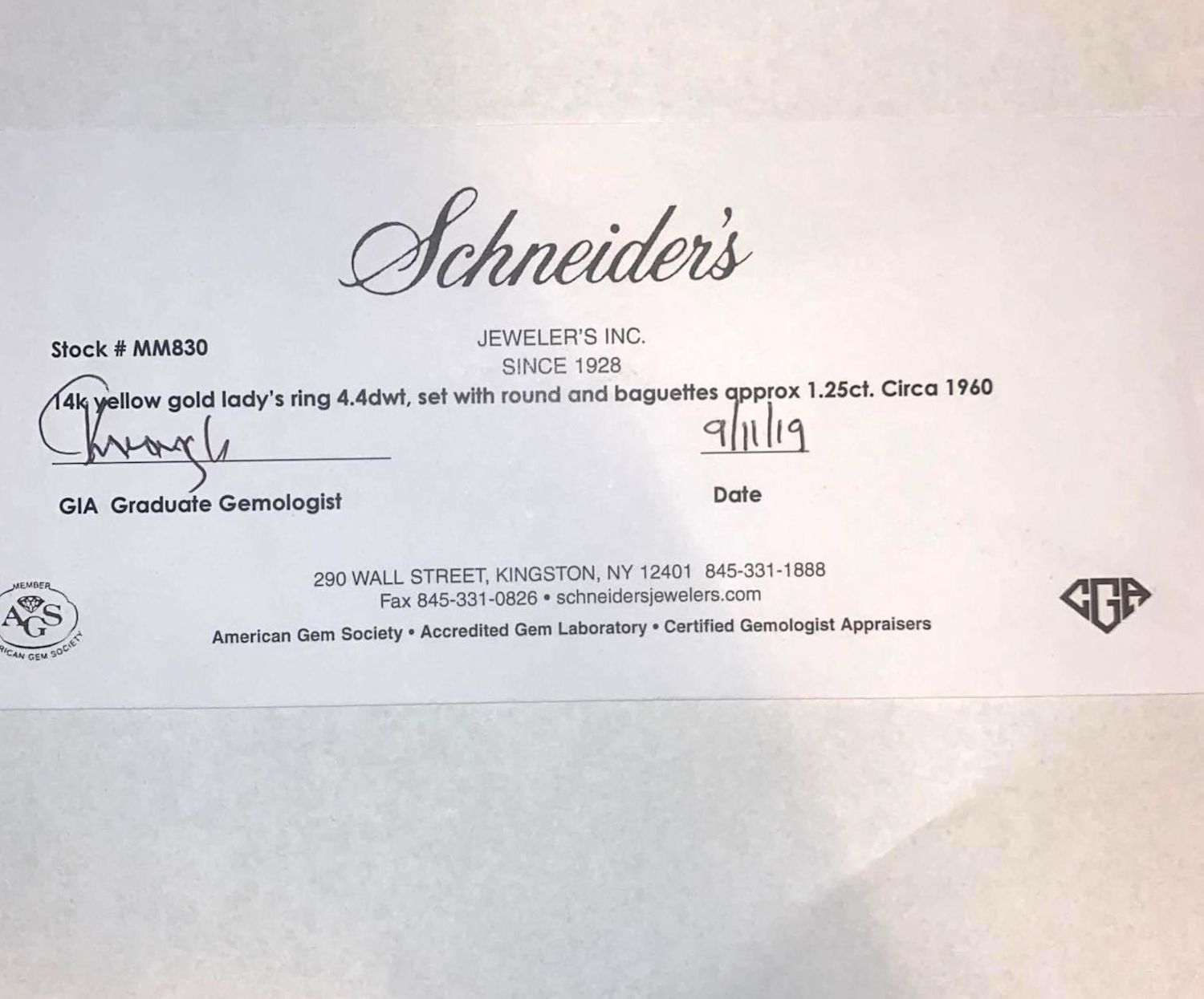 Vintage 1950’s gold and diamond cluster ring size 6, dwt 4.4. This lot is accompanied by a GIA appraiser letter from an independent and well respected firm established over 75 years ago. overall good condition