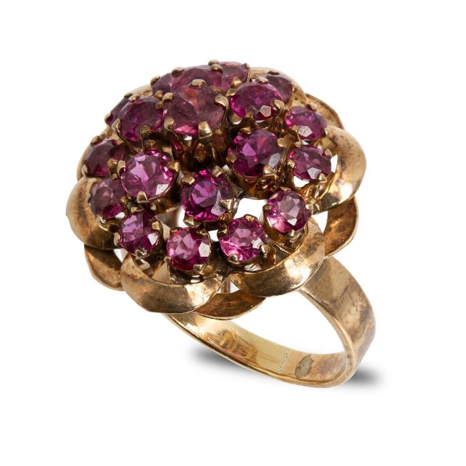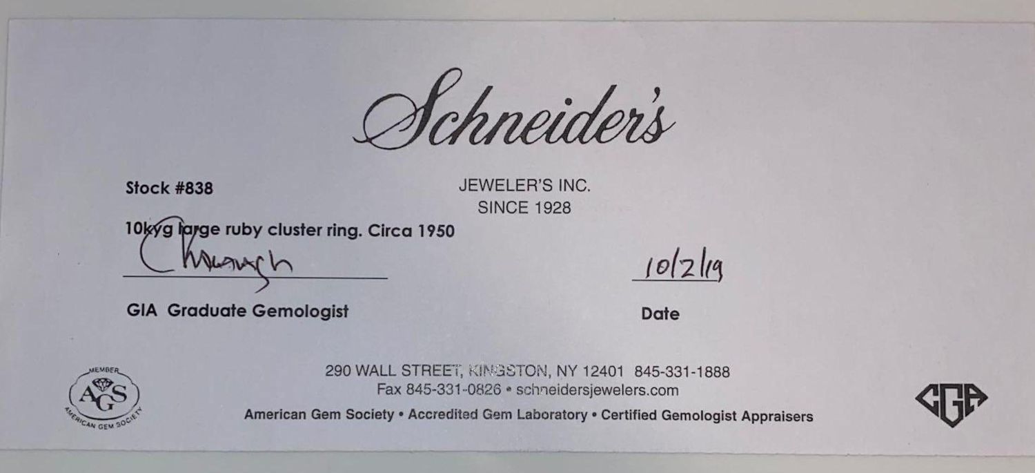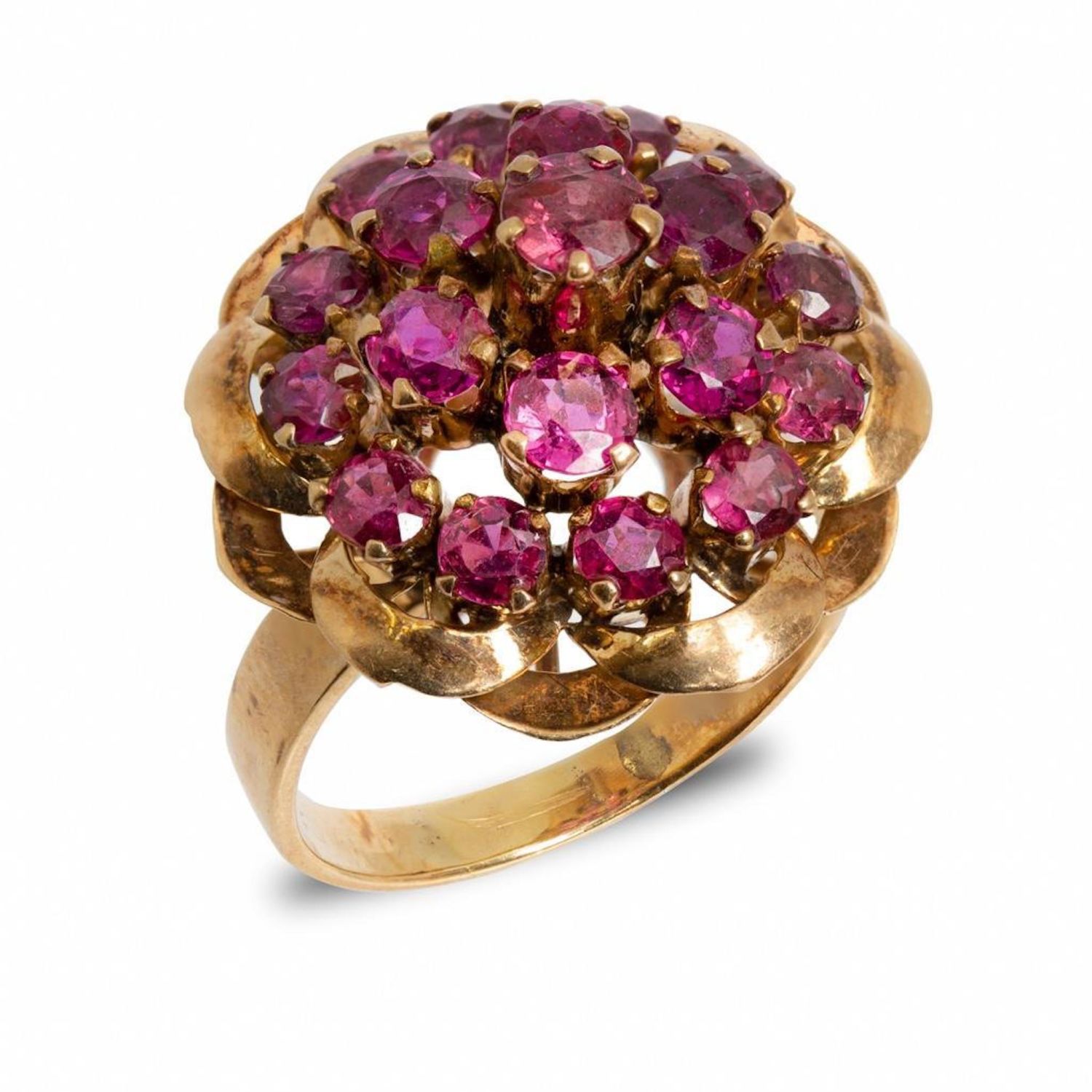 10k gold and ruby harem ring size 7.5, 19 stones 3.2 dwt. This item is accompanied by a GIA appraisers letter from a well respected independent firm that has been in business for over 75 years. overall good condition