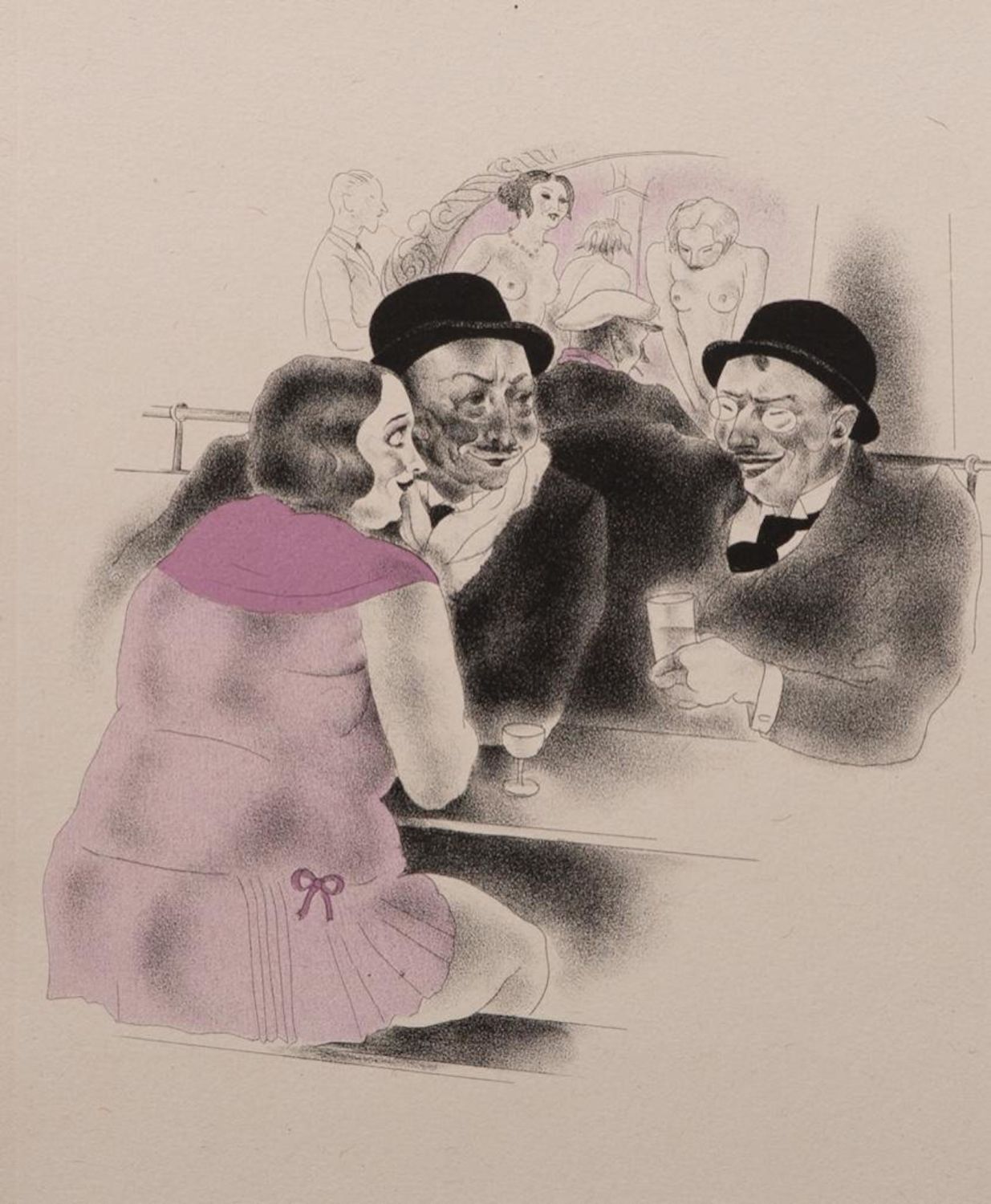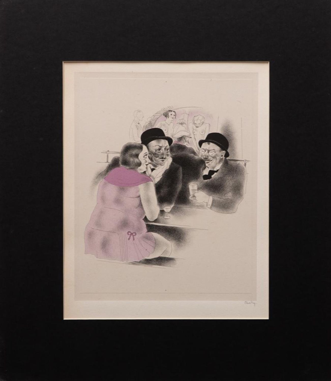 Clark Fay (American 1894-1956) Pencil Signed Erotic Color Lithograph Circa 1930’s. Clark Fay was an American Illustrator who studied with N.C. Wyeth and became a regular contributor to "The Saturday Evening Post". 9.5 x 11.5 art. 15.5 x 17.75 Mat