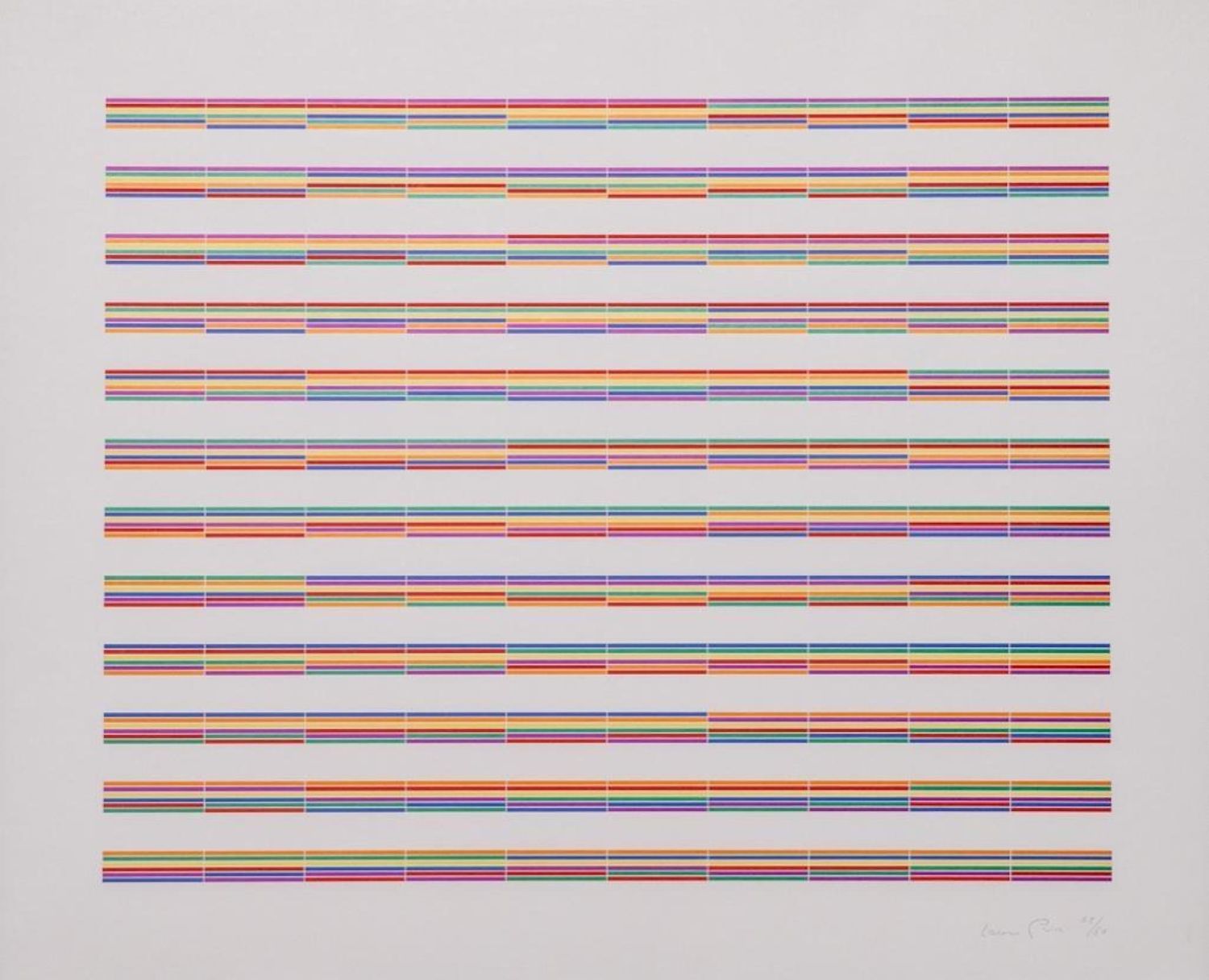 Laura Grisi lithograph pencil signed and numbered 48/60. Measures 19 1/2 x 24 Born in Rhodes, Greece, Grisi mostly spent her time in Rome and New York. She studied art in Rome and at the Ecole des Beaux Arts in Paris. Grisi had her first solo shows at the Galleria Il Segno in Rome in 1964 and the Galleria dell’Ariete in Milan in 1965. Since 1968, Grisi had solo shows at the Galerie M. E. Thelen in Essen, Leo Castelli Gallery in New York, Van Abbemuseum in Eindhoven, Galerie Konrad Fischer in Düsserdorf, and Ugo Ferranti in Rome, among others. She participated in the Rome Quadriennale in 1965, 1973, and 1986; the Venice Biennale in 1966 and 1986; and the group show “Young Italians” at the Institute of Contemporary Art, Boston, and the Jewish Museum in New York in 1968. Her works are included in the collections of a number of institutions, including the Museum of Modern Art in New York, the Brooklyn Museum, the Weisman Museum in Los Angeles, and the Galleria Civica d’Arte Moderna in Turin. Her work was exhibited at the Graham Foundation in Chicago in 2014 and the Accademia di Brera in Milan in 2015. In October 2017, she had started to collaborate with P420, Bologna, which presented her works in a solo show in Frieze Masters, London. In 2018, her works will be included in the show “Matrix for Actual Time, ” curated by Jacopo Crivelli Visconti, at the São Paulo Museum of Art. overall good condition