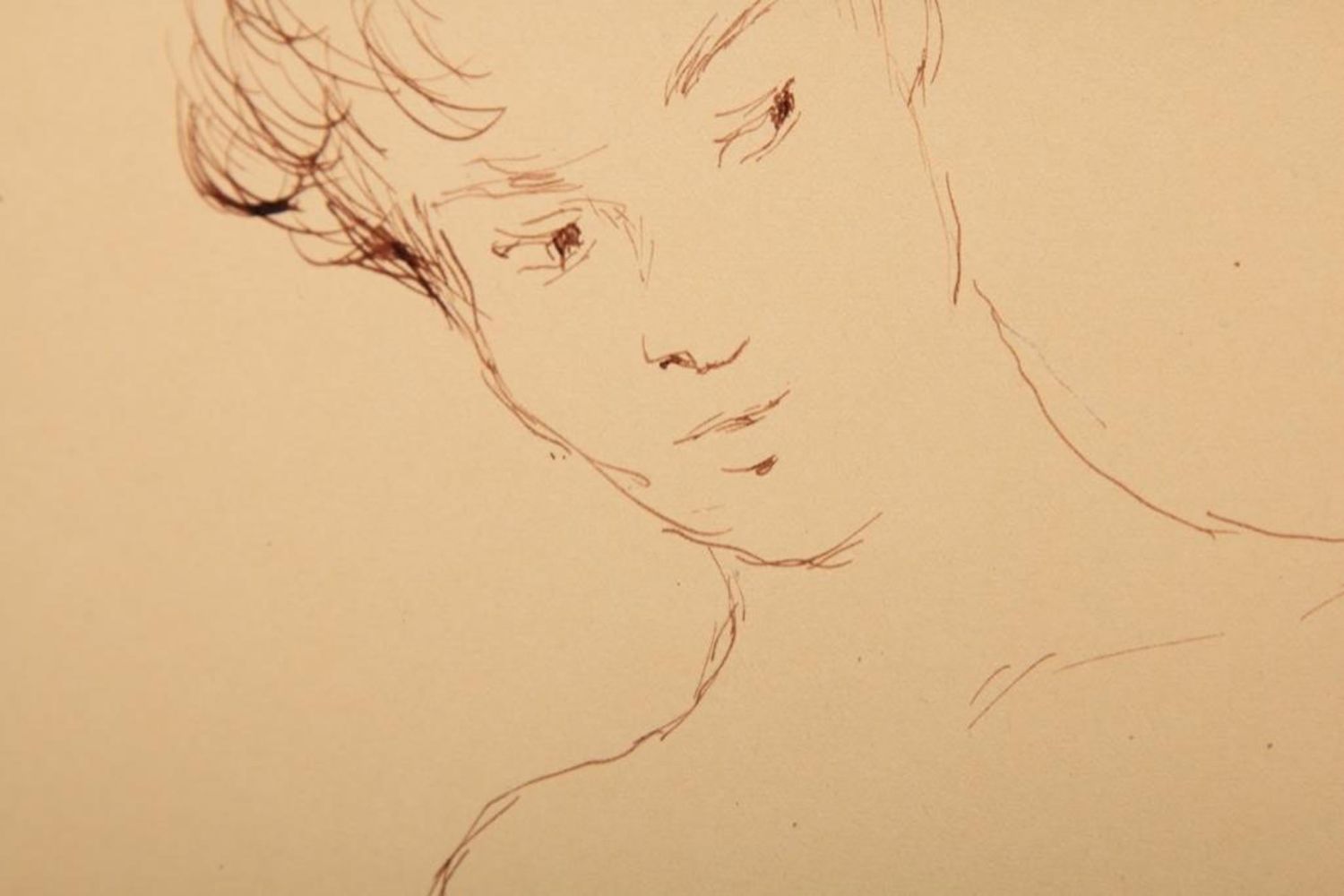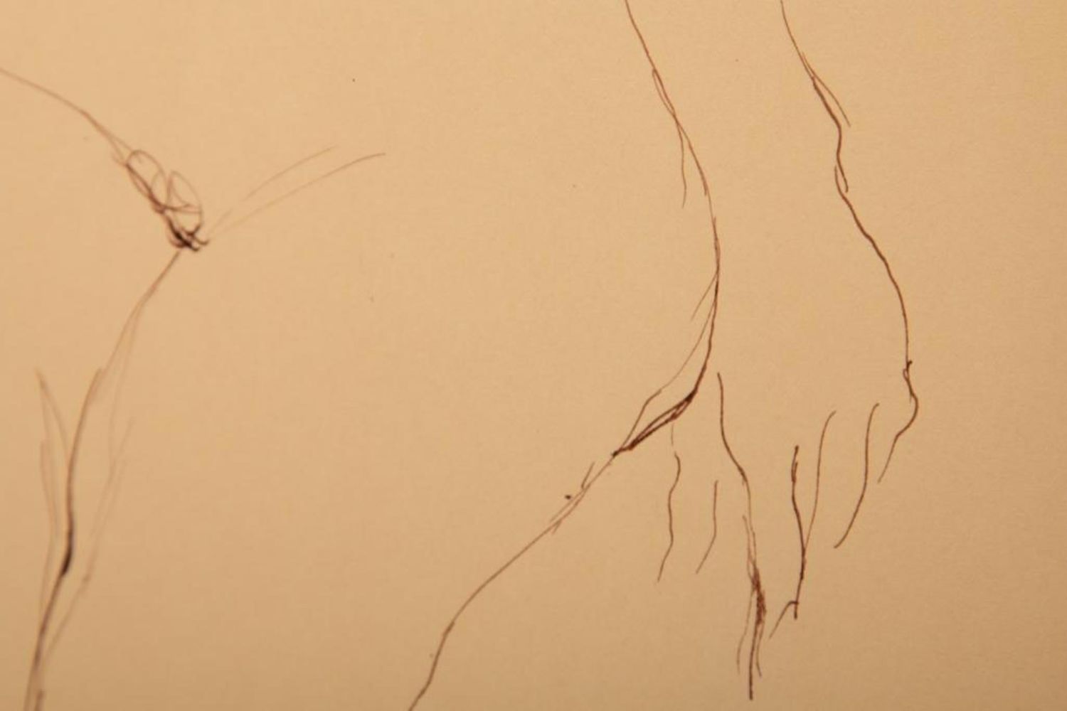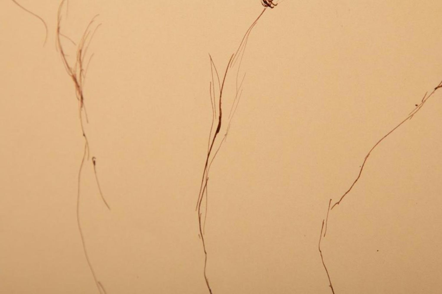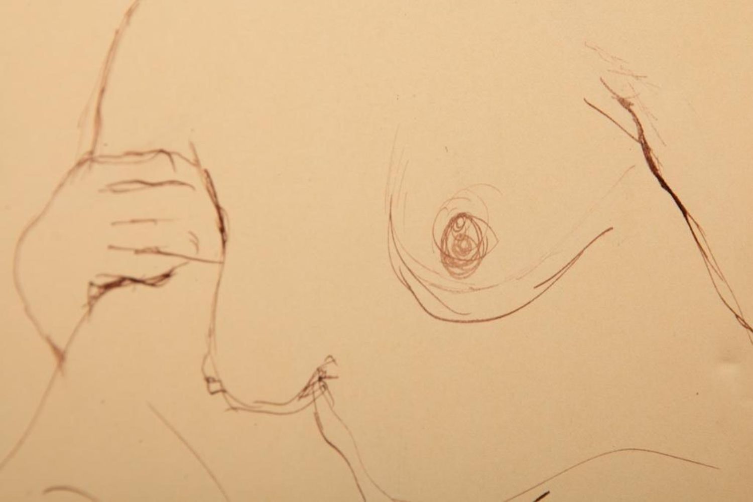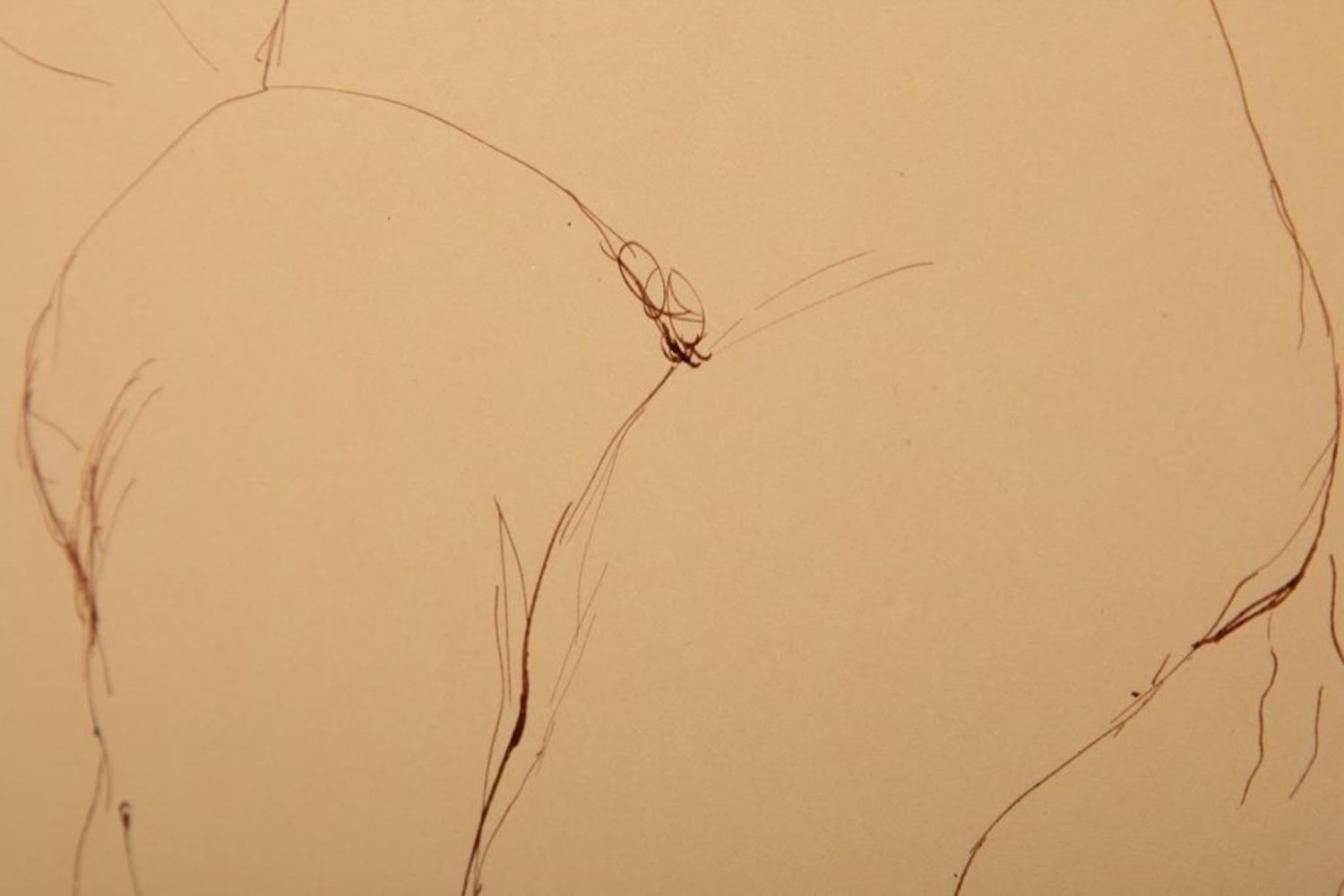 John Fenton known as the American Surrealist , signed Drawing on Paper of Nude Woman Sitting. 19 3/8" x 23 3/8" Framed: 10 3/8" x 13 3/8" Visible Approx. Painter, printmaker and teacher John Fenton was born in Mountaindale, New York. He moved with his family to Mount Vernon, New York, where he lived for some thirty years before settling permanently in Woodstock, New York. He attended The Art Student’s League of New York and Atelier 17, Paris. His work was the focus of a number of one-man shows during the 1950s and 1960s, and was exhibited in numerous museums and galleries including the Art Institute of Chicago, The Museum of Modern Art in New York, The Corcoran Gallery in Washington, D.C. And the Pennsylvania Academy.Fenton taught at New York University and Goddard College. His distinctly surrealist work won awards from the American Academy of Arts and Letters, the National Academy of Design, and numerous other institutions, and is included in the collections of the Smithsonian American Art Museum, the Corcoran Gallery among others. He died at Woodstock, New York. good condition overall