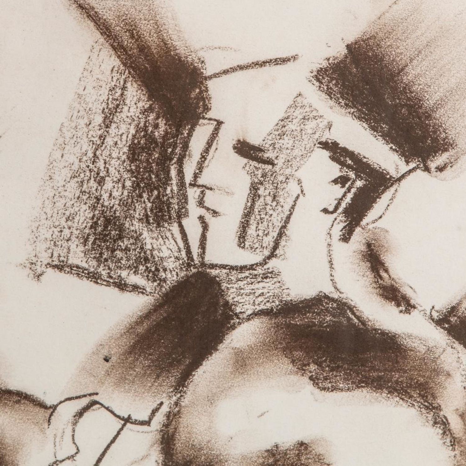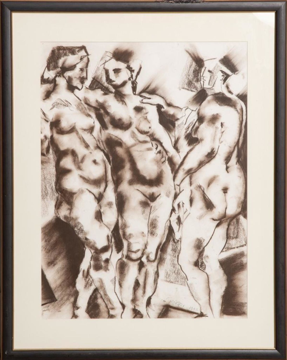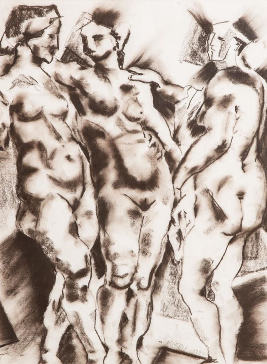 The Three Graces Signed "Morrix?" and dated " 1992" in pencil l.r. Conté crayon on paper, sight size 23 1/2 x 17 1/2 in., framed. Condition: Gentle rippling, not examined out of frame. good condition overall