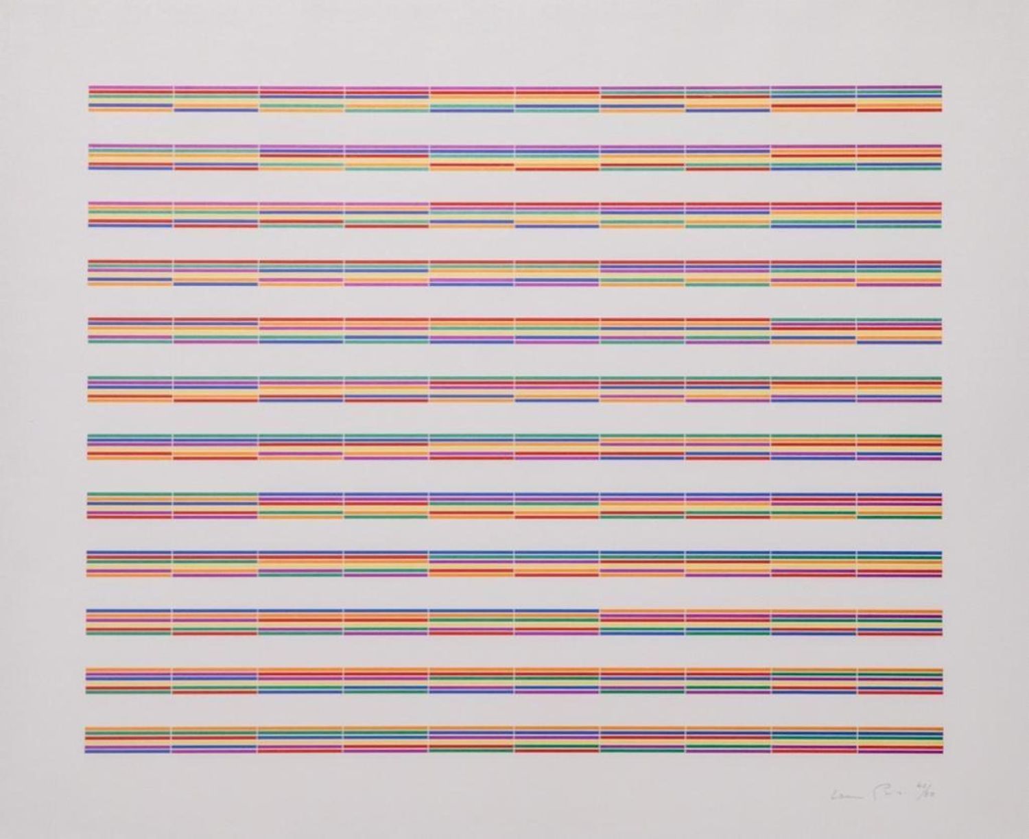 Laura Grisi lithograph pencil signed and numbered 48/60. Measures 19 1/2 x 24 Born in Rhodes, Greece, Grisi mostly spent her time in Rome and New York. She studied art in Rome and at the Ecole des Beaux Arts in Paris. Grisi had her first solo shows at the Galleria Il Segno in Rome in 1964 and the Galleria dell’Ariete in Milan in 1965. Since 1968, Grisi had solo shows at the Galerie M. E. Thelen in Essen, Leo Castelli Gallery in New York, Van Abbemuseum in Eindhoven, Galerie Konrad Fischer in Düsserdorf, and Ugo Ferranti in Rome, among others. She participated in the Rome Quadriennale in 1965, 1973, and 1986; the Venice Biennale in 1966 and 1986; and the group show “Young Italians” at the Institute of Contemporary Art, Boston, and the Jewish Museum in New York in 1968. Her works are included in the collections of a number of institutions, including the Museum of Modern Art in New York, the Brooklyn Museum, the Weisman Museum in Los Angeles, and the Galleria Civica d’Arte Moderna in Turin. Her work was exhibited at the Graham Foundation in Chicago in 2014 and the Accademia di Brera in Milan in 2015. In October 2017, she had started to collaborate with P420, Bologna, which presented her works in a solo show in Frieze Masters, London. In 2018, her works will be included in the show “Matrix for Actual Time, ” curated by Jacopo Crivelli Visconti, at the São Paulo Museum of Art. overall good condition