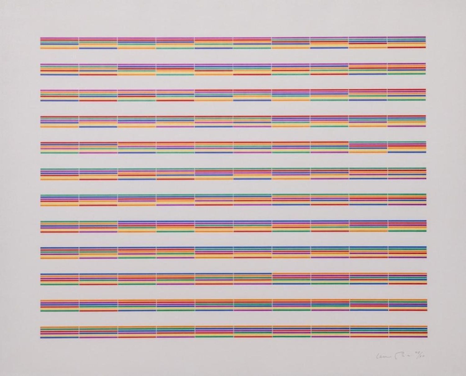 Laura Grisi lithograph pencil signed and numbered 48/60. Measures 19 1/2 x 24 Born in Rhodes, Greece, Grisi mostly spent her time in Rome and New York. She studied art in Rome and at the Ecole des Beaux Arts in Paris. Grisi had her first solo shows at the Galleria Il Segno in Rome in 1964 and the Galleria dell’Ariete in Milan in 1965. Since 1968, Grisi had solo shows at the Galerie M. E. Thelen in Essen, Leo Castelli Gallery in New York, Van Abbemuseum in Eindhoven, Galerie Konrad Fischer in Düsserdorf, and Ugo Ferranti in Rome, among others. She participated in the Rome Quadriennale in 1965, 1973, and 1986; the Venice Biennale in 1966 and 1986; and the group show “Young Italians” at the Institute of Contemporary Art, Boston, and the Jewish Museum in New York in 1968. Her works are included in the collections of a number of institutions, including the Museum of Modern Art in New York, the Brooklyn Museum, the Weisman Museum in Los Angeles, and the Galleria Civica d’Arte Moderna in Turin. Her work was exhibited at the Graham Foundation in Chicago in 2014 and the Accademia di Brera in Milan in 2015. In October 2017, she had started to collaborate with P420, Bologna, which presented her works in a solo show in Frieze Masters, London. In 2018, her works will be included in the show “Matrix for Actual Time, ” curated by Jacopo Crivelli Visconti, at the São Paulo Museum of Art. overall good condition