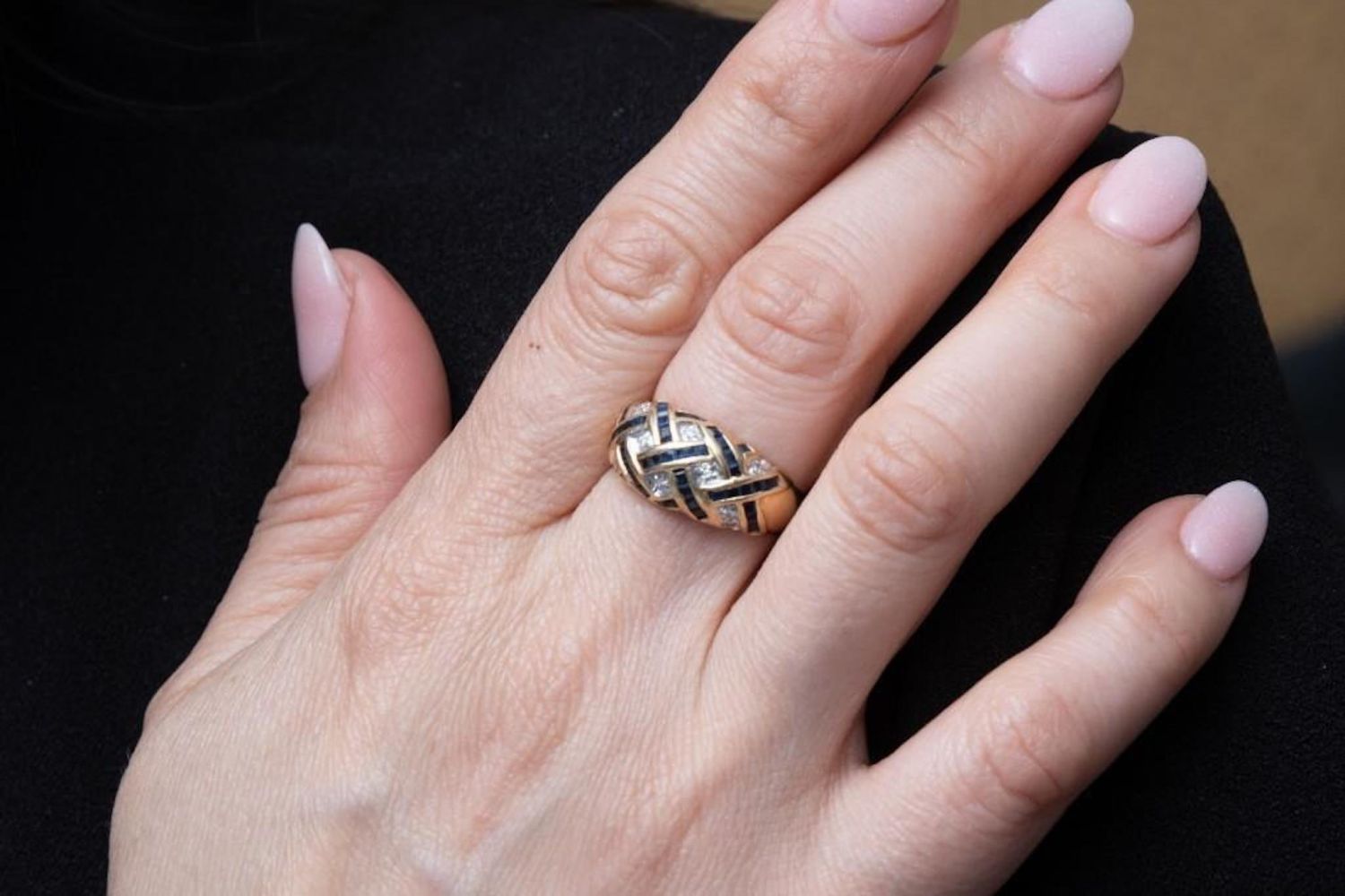 Vintage 14K Yellow Gold Sapphire and Diamond Ring size 8 and weight 3.6 dwt. This lot is accompanied by a GIA appraiser letter from an independent and well respected firm established over 75 years ago. .in good condition overall