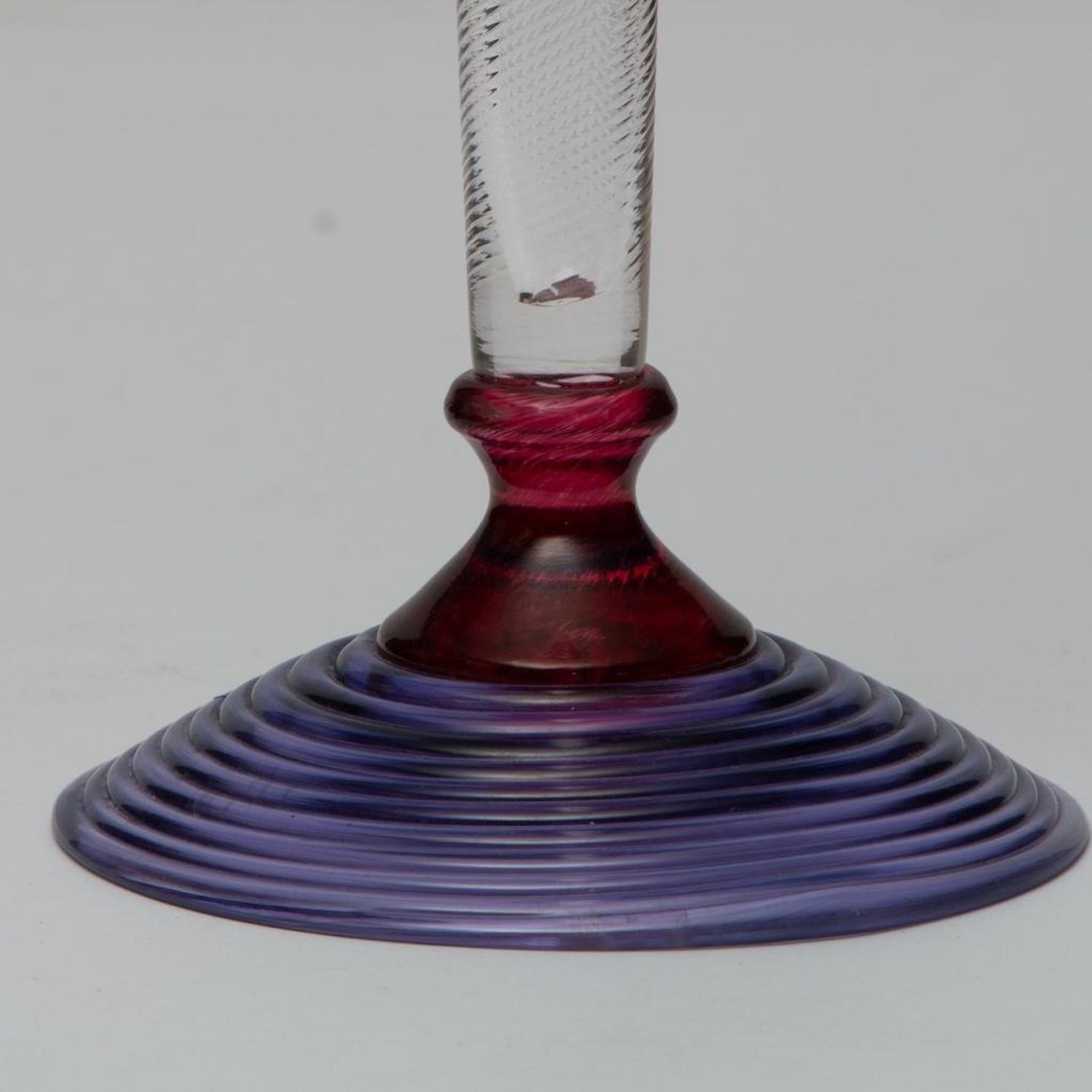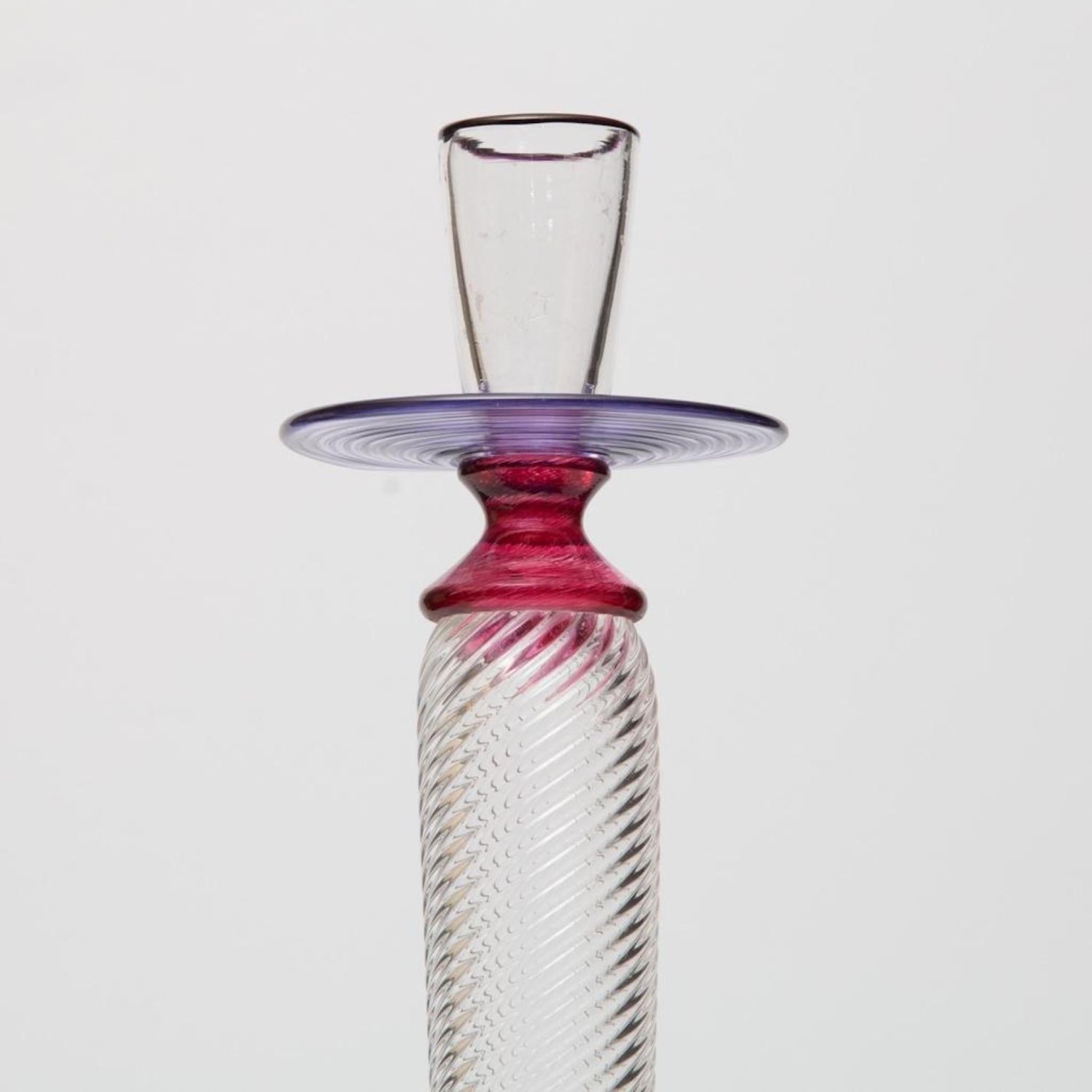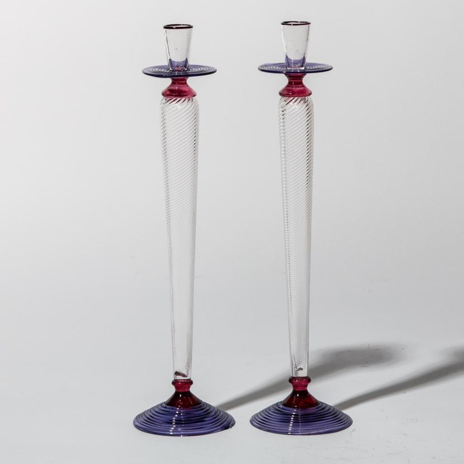 Murano or Venetian glass vintage mid century Hand Blown Glass Tall Candle Sticks. Signed Illeg. 16.25"H nice work good condition